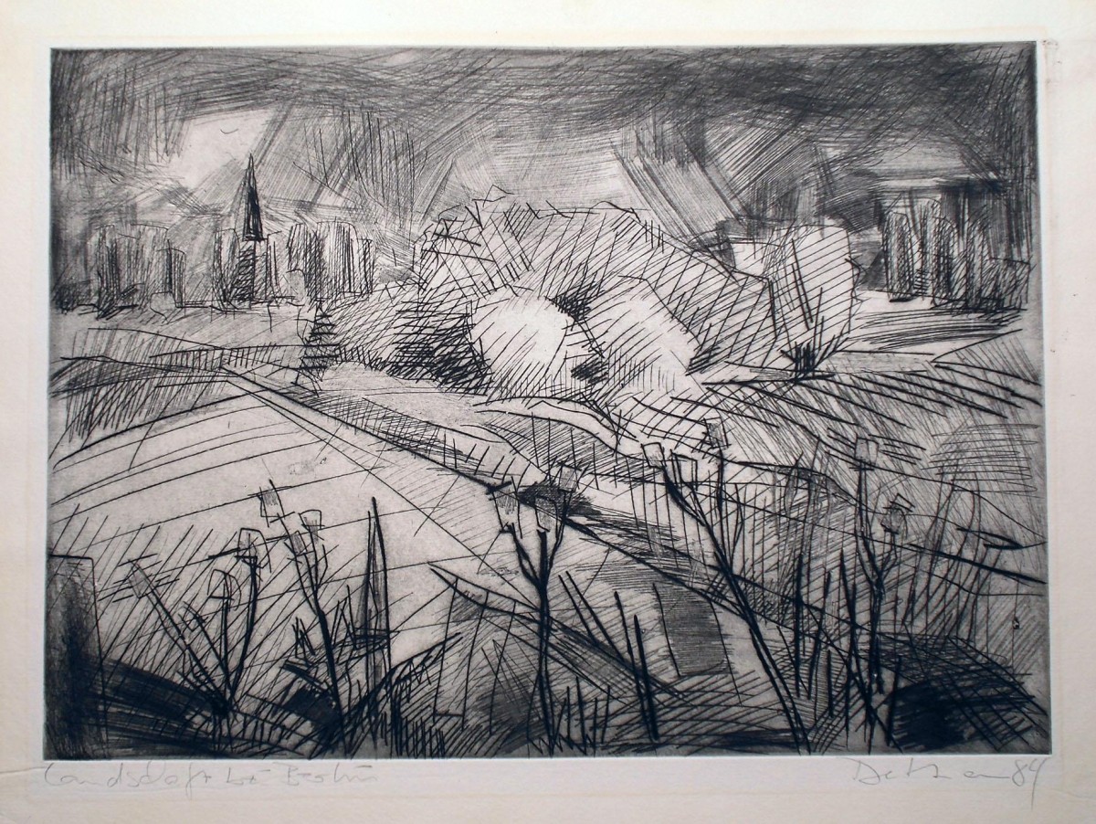 Beschriftung: u.l. „Landschft bei Berlin“, u.r. „Dettmann 84“