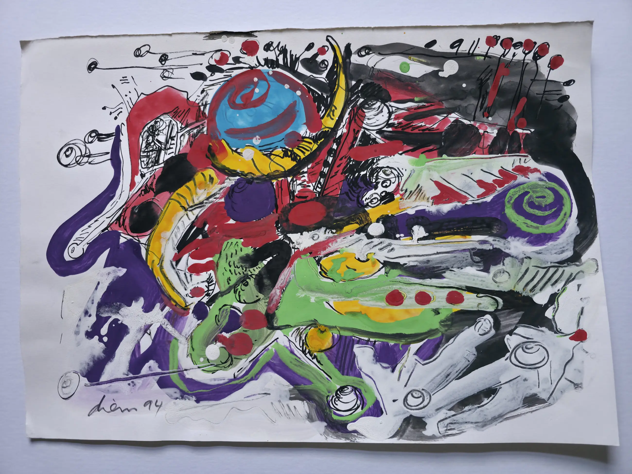 Origineel hand gesigneerd schilderij op papier van Peter Diem
