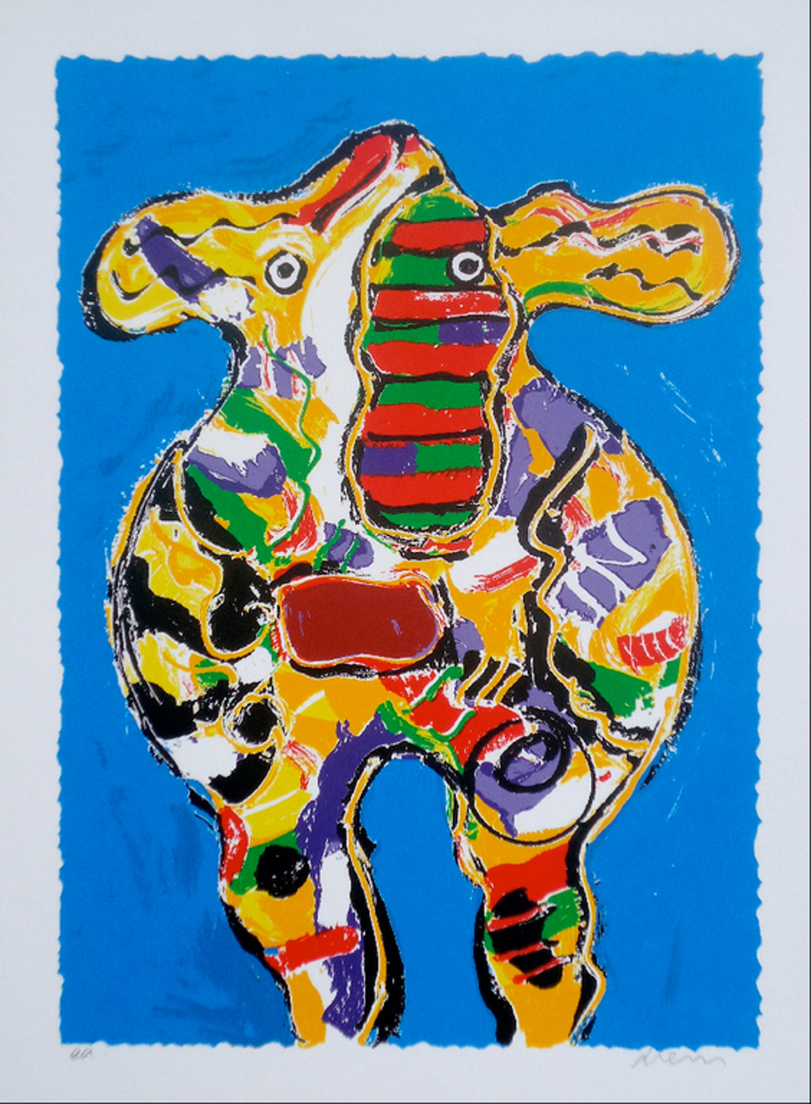 Titel: Cow Bleu (vormt set met Cow Red, zie andere veiling)