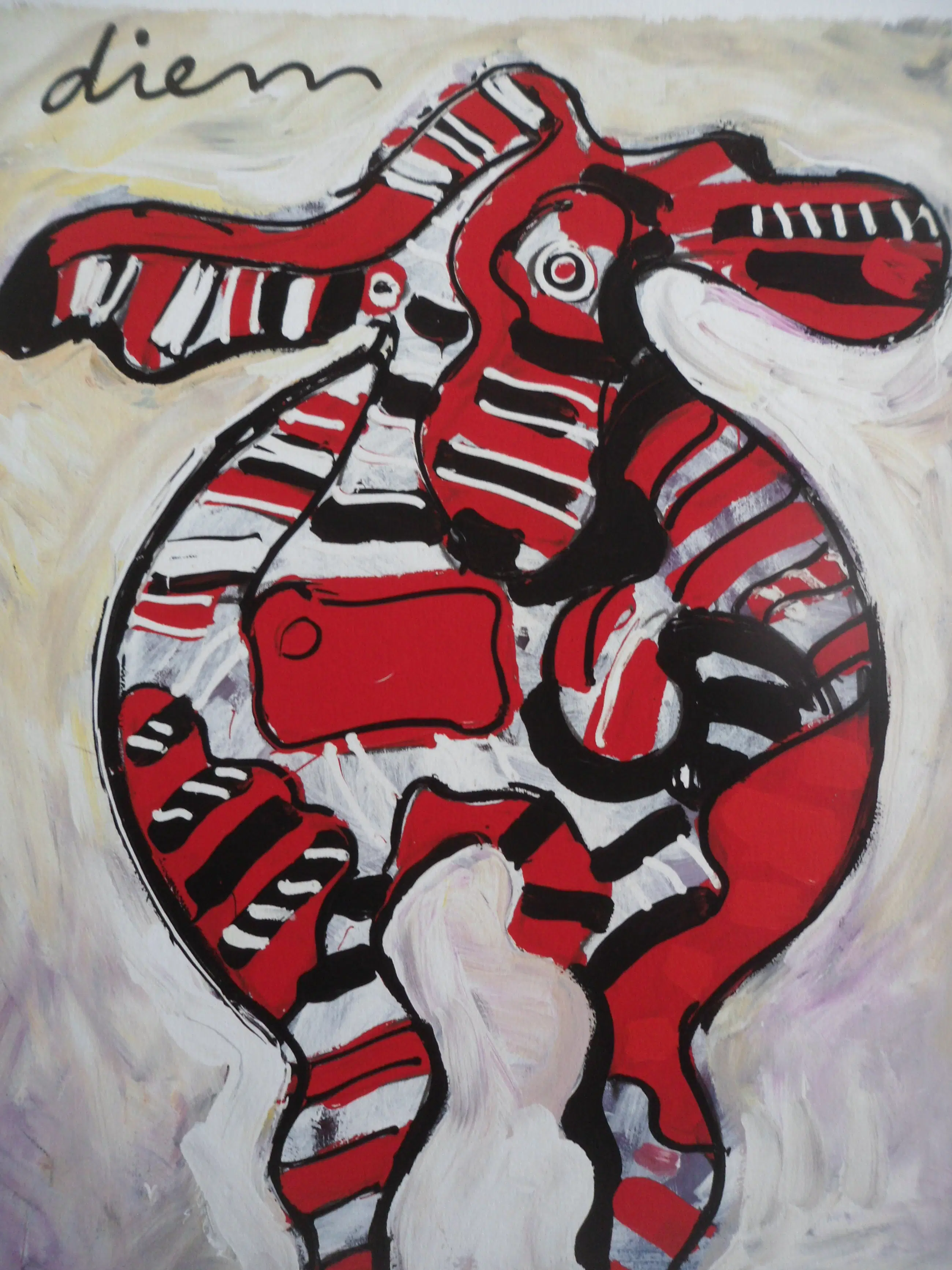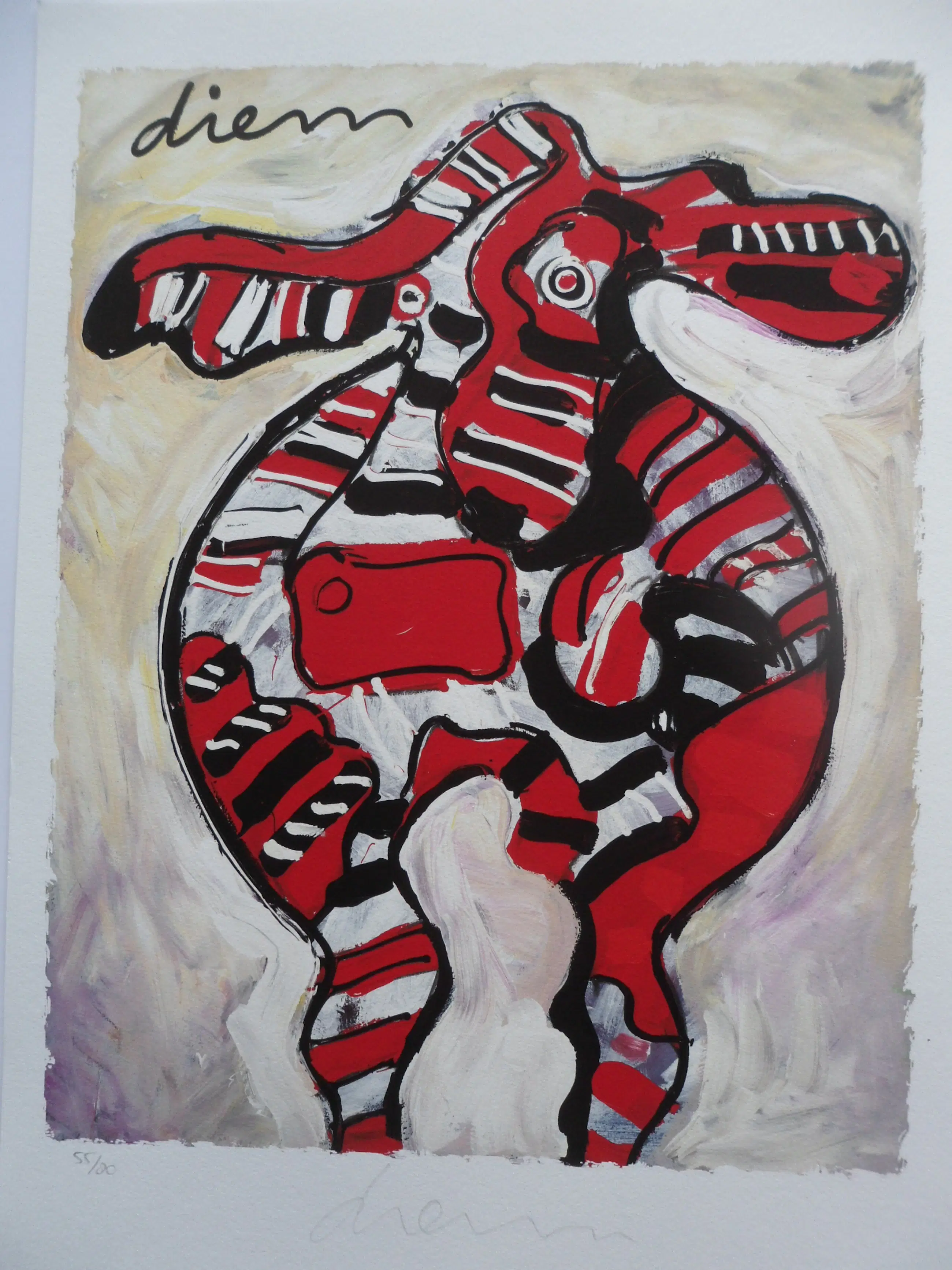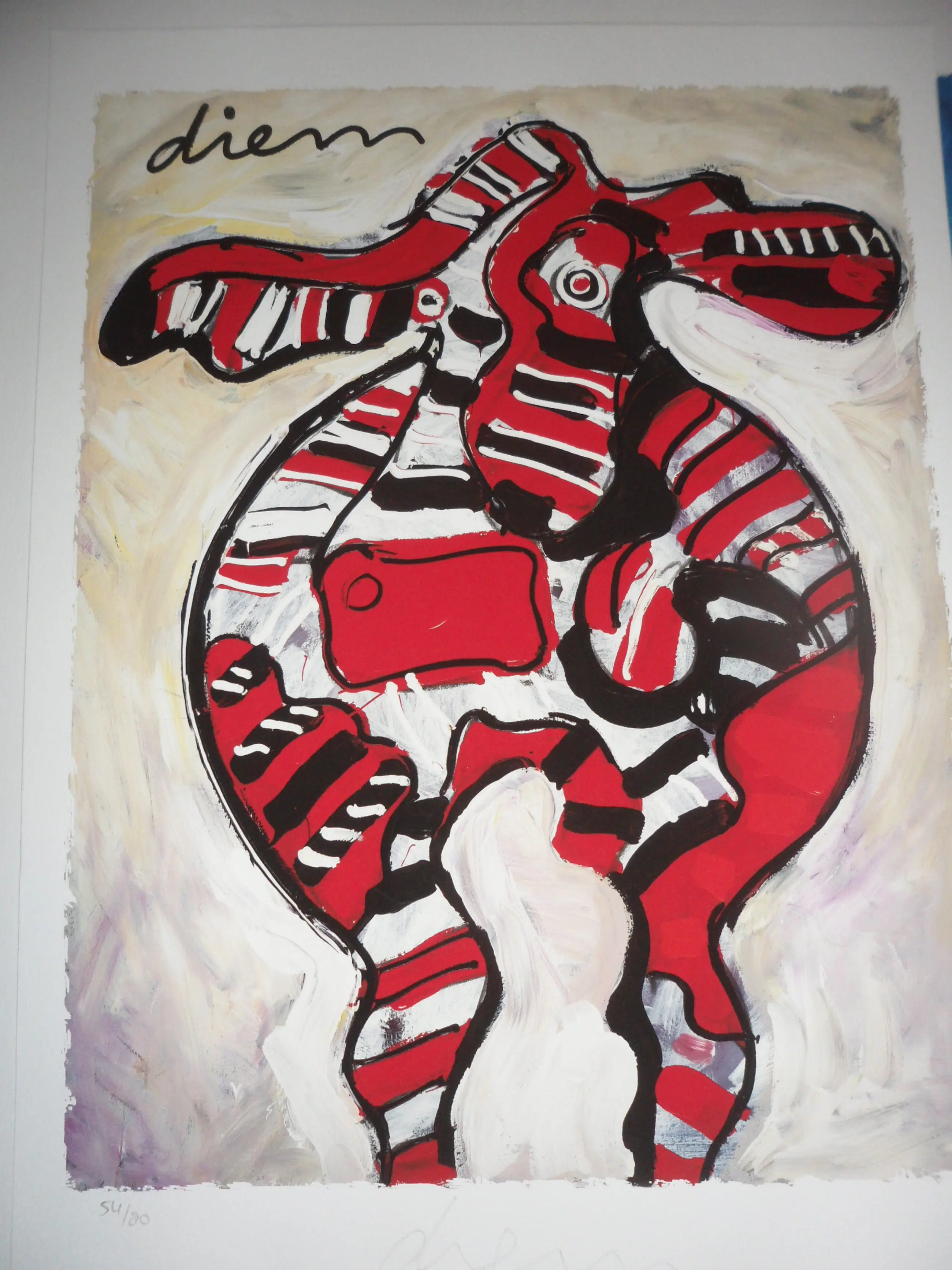 Peter Diem - Kleurenzeefdruk COW RED Hand gesigneerd. kopen? Bied vanaf 30!