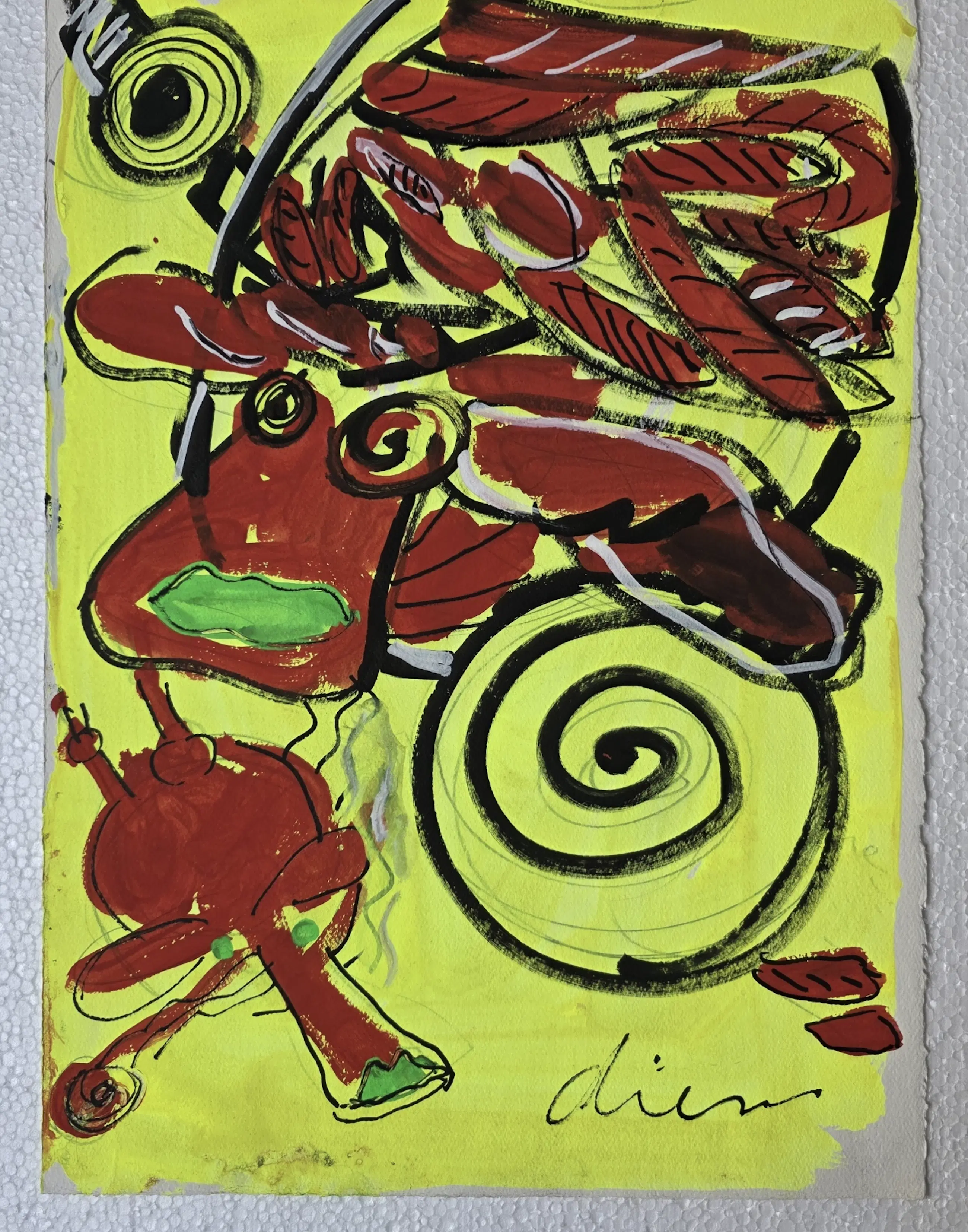 Origineel en expressief werk van de internationaal bekende kunstenaar Peter Diem. Diem staat bekend om zijn kleurrijke en energieke stijl, vaak met speelse en iconische motieven zoals de beroemde 'Diem-koeien'.
