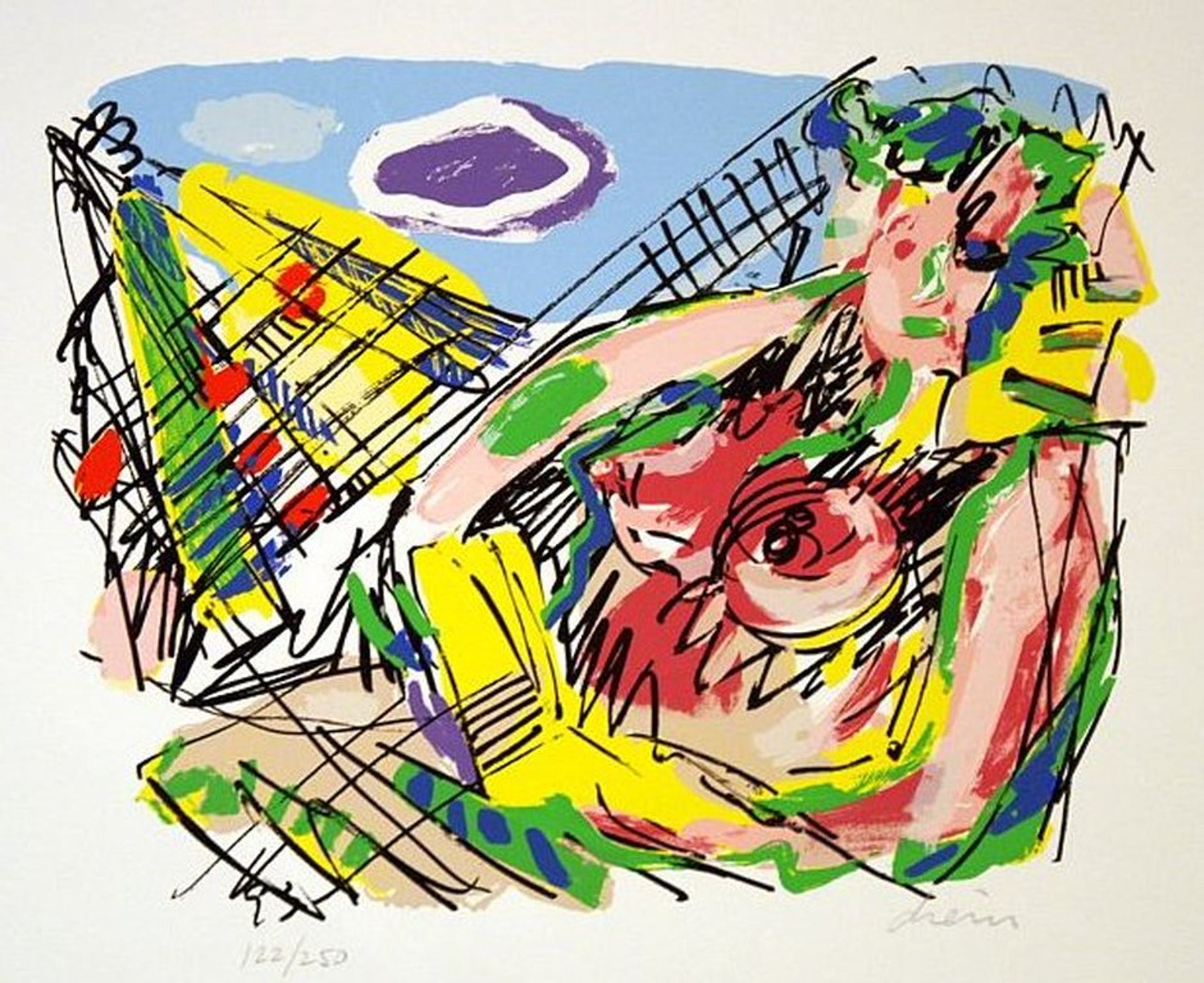 RED SAILS IN THE SUN is een wat aparte zeefdruk van Peter Diem. Uiteraard met de hand gesigneerd. De oplage bedraagt 250 zeefdrukken en het formaat van de zeefdruk is ongeveer 40 x 50 cm.