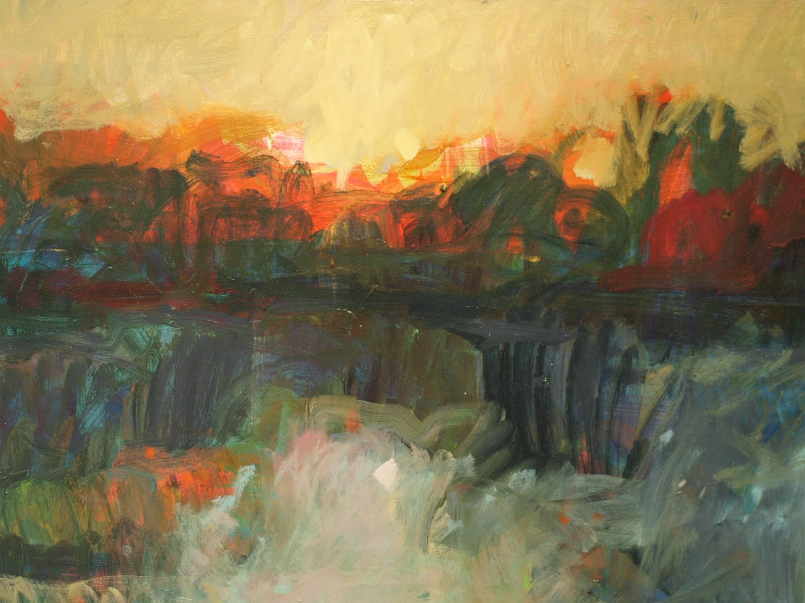 -Acrylverf op doek, opgespannen op een houten spieraam.