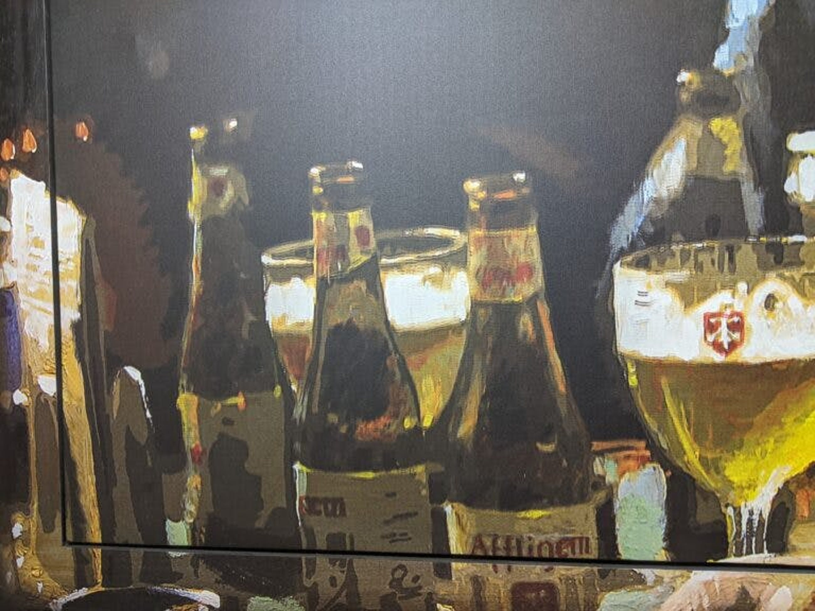 Een grote blikvanger voor een mancave, bierliefhebber of voor een horecabedrijf. De lijst heeft kleine schaafvlekjes, maar is niet storend. Het doek is in uitstekende staat.