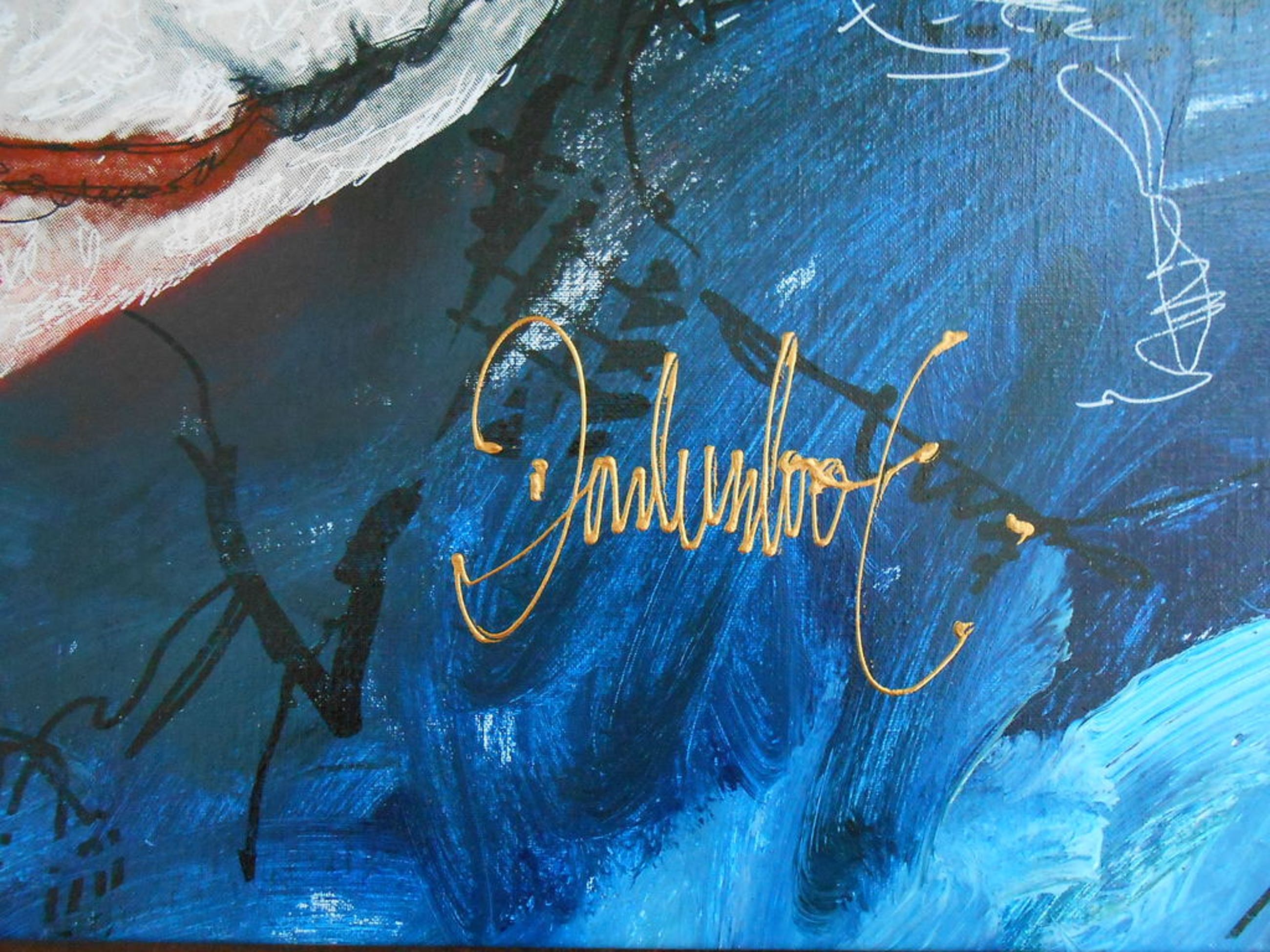 Hand bewerkte zeefdruk op linnen van de Joker (Heath Ledger) uit de Batmanfilm. Van deze serie (48 stuks) is er niet 1 het zelfde en we kunnen dus spreken van een unica. Dit is nummer 28/48. Kleuren zijn allemaal verschillend en Peter heeft ieder werk handmatig bewerkt en met z'n vingers en kwasten lagen verf aangebracht. Opgespannen op een 4 cm dik spieraam (kan zo aan de muur) en gesigneerd door Peter rechtstreeks uit de tube met goudkleurige verf. De maat is 120 x 90 cm en de normale galerieprijs is 1450 Euro. Foto is niet zo mooi door het flitslicht,in werkelijkheid is hij perfect. Gezien de grote van het werk verdiend afhalen de voorkeur maar bezoprging via bezorgdienst mogelijk tegen kostprijs. Vraag ons hier naar voordat u bied.