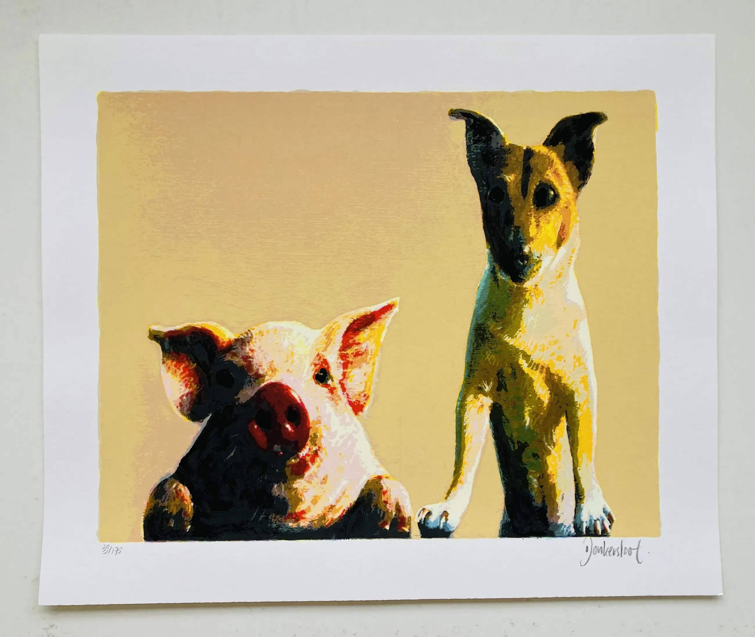 Een leuke zeefdruk van de Nederlandse kunstenaar Peter Donkersloot (1959). Het werk verkeert in uitstekende conditie en is handgesigneerd door de kunstenaar.