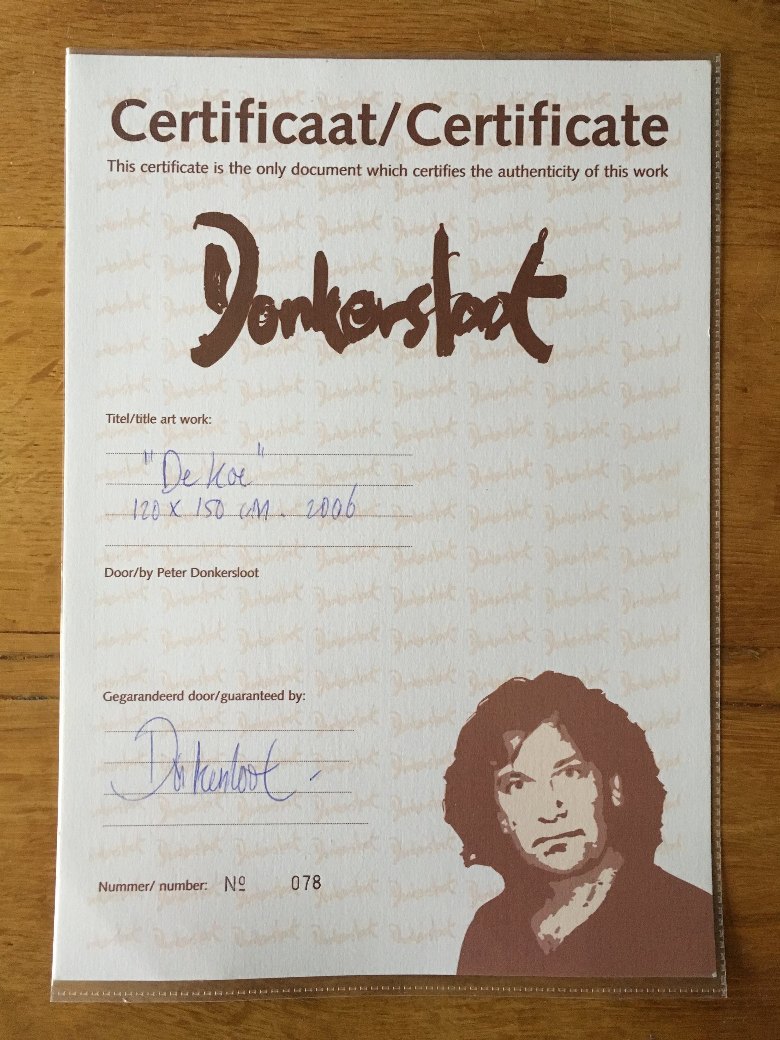 Het werk is af te halen op locatie. Als koper dient u zelf verpakkingsmateriaal mee te nemen. De locatie is: Volendam, Nederland