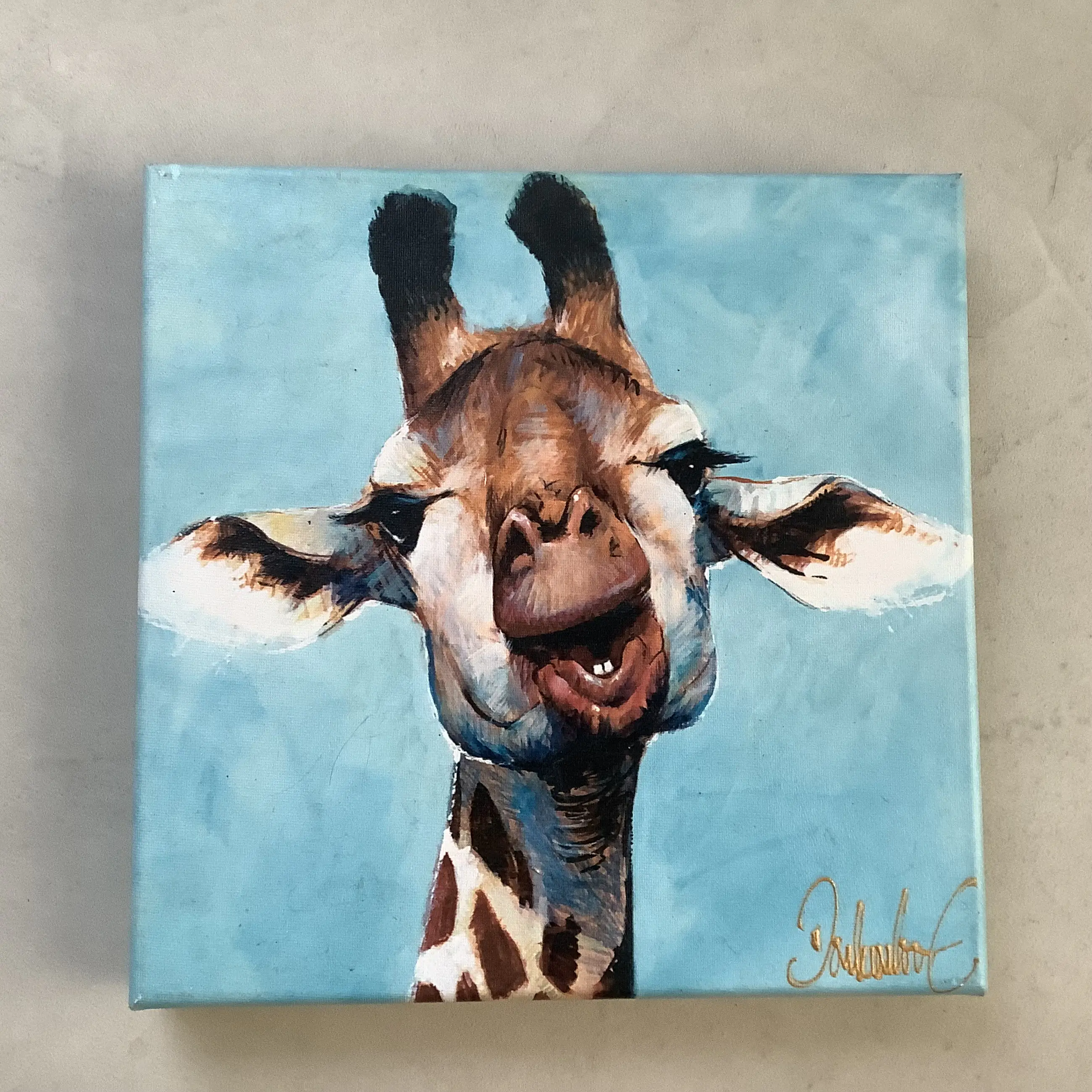 grappige giraffe ingeschilderd gicllée op 3 D canvas