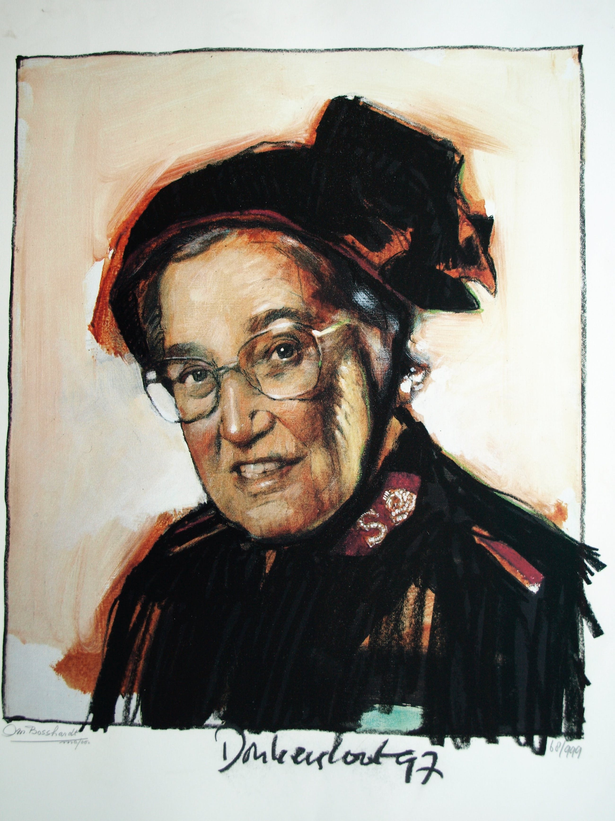 Een litho uit 1997 van de Nederlandse kunstenaar Peter Donkersloot (1959) met een portret van Majoor Bosshardt (1913-2007), officier van Het Leger des Heils.