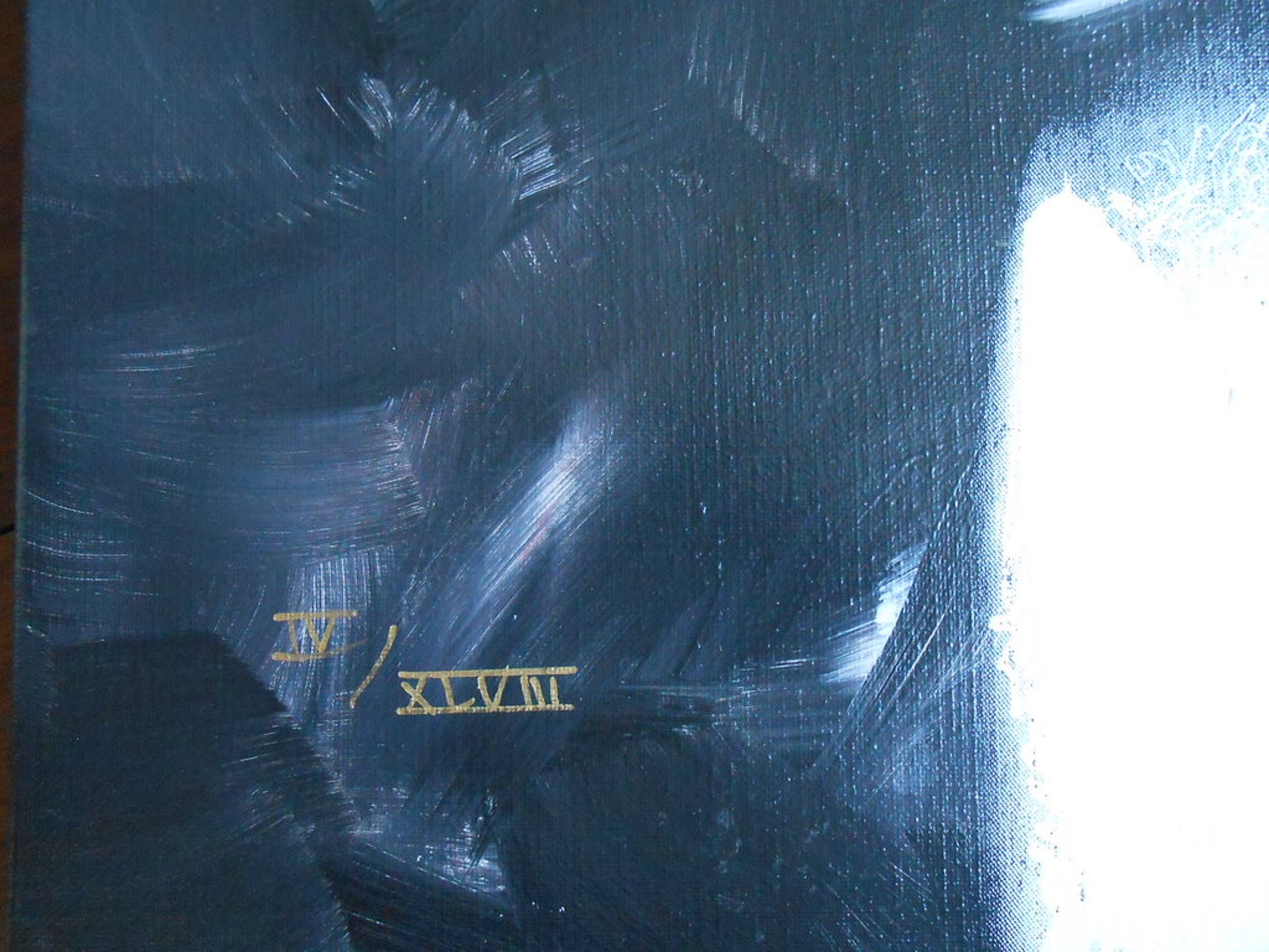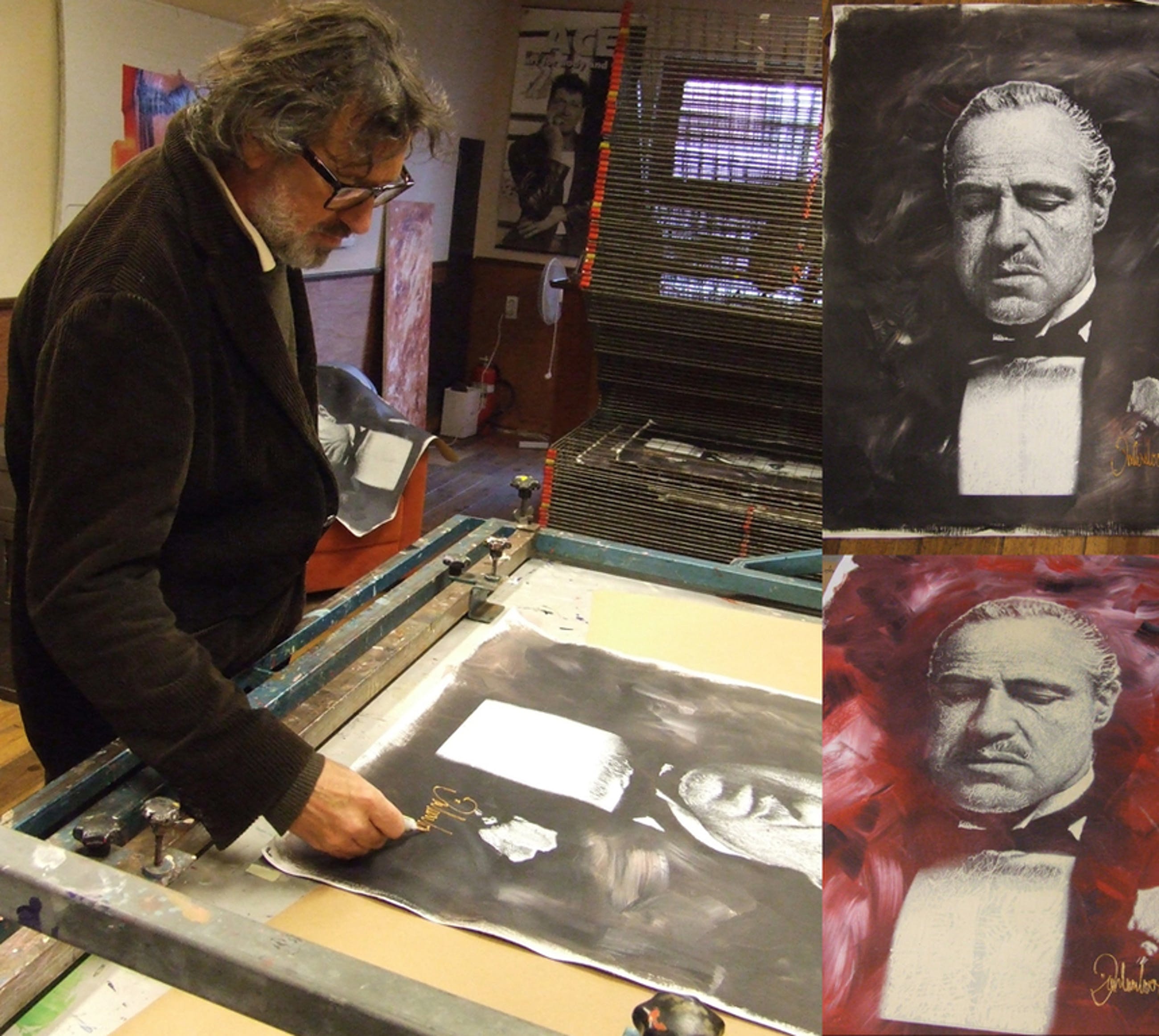 Grote handbewerkte zeefdruk van Peter Donkersloot. Oplage was 48 stuks waarvan er niet 1 hetzelfde is. Alle 48 stuks zijn door Peter handbewerkt met een kwast of met z'n handen en ook een andere kleur. Titel is Don Corleone uit The Gothfather. De maat is 92 x 73 cm en met goudkleurige verf rechtstreeks uit de tube gesigneerd. Natuurlijk genummerd. Werk is opgespannen op een 4 cm dik spieraam. Laag openingsbod.