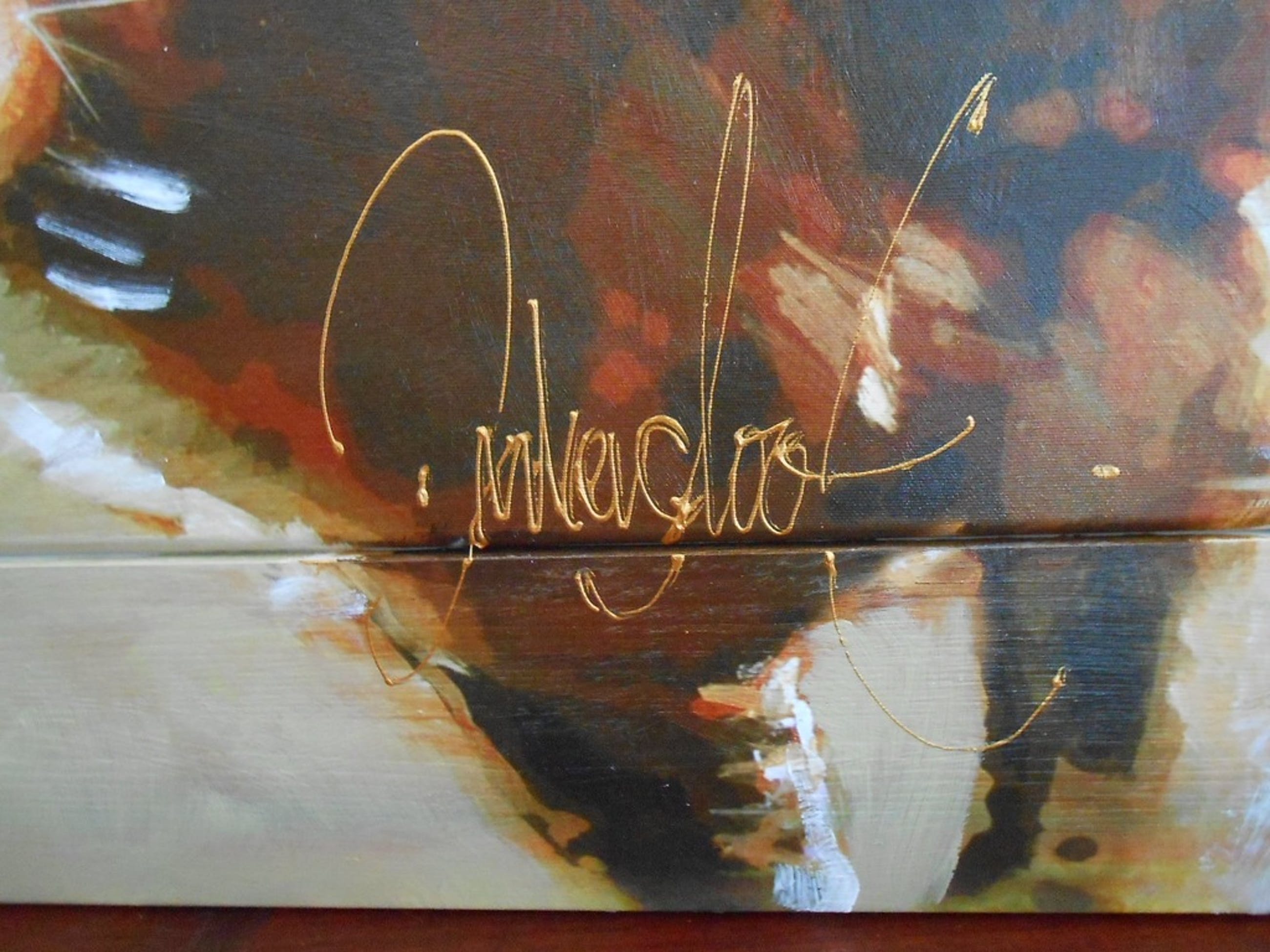 Natuurlijk door Donkersloot gesigneerd, rechtstreeks uit de tube met goudkleurige verf.