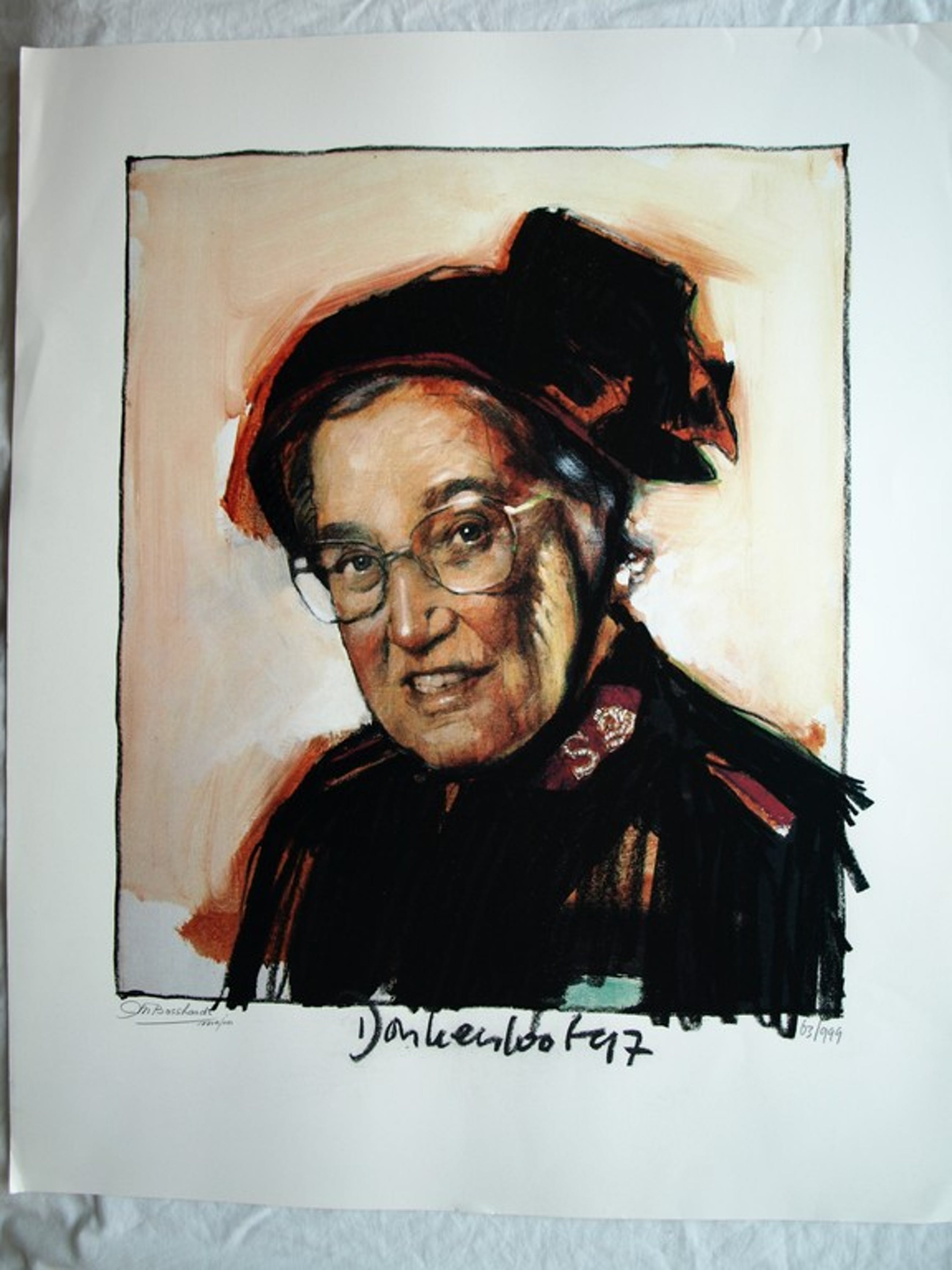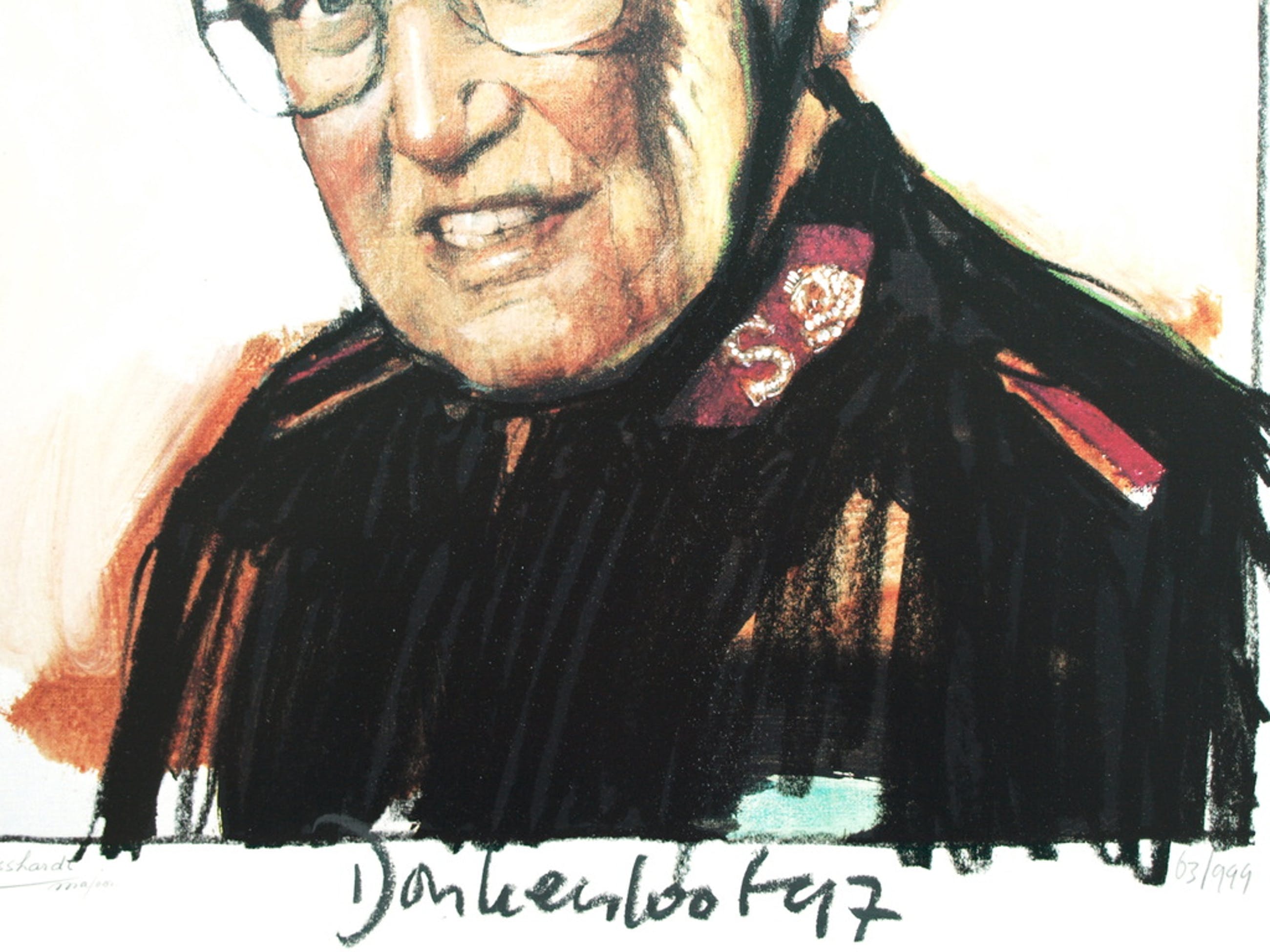Een litho uit 1997 van de Nederlandse kunstenaar Peter Donkersloot (1959) met een portret van Majoor Bosshardt (1913-2007), officier van Het Leger des Heils.