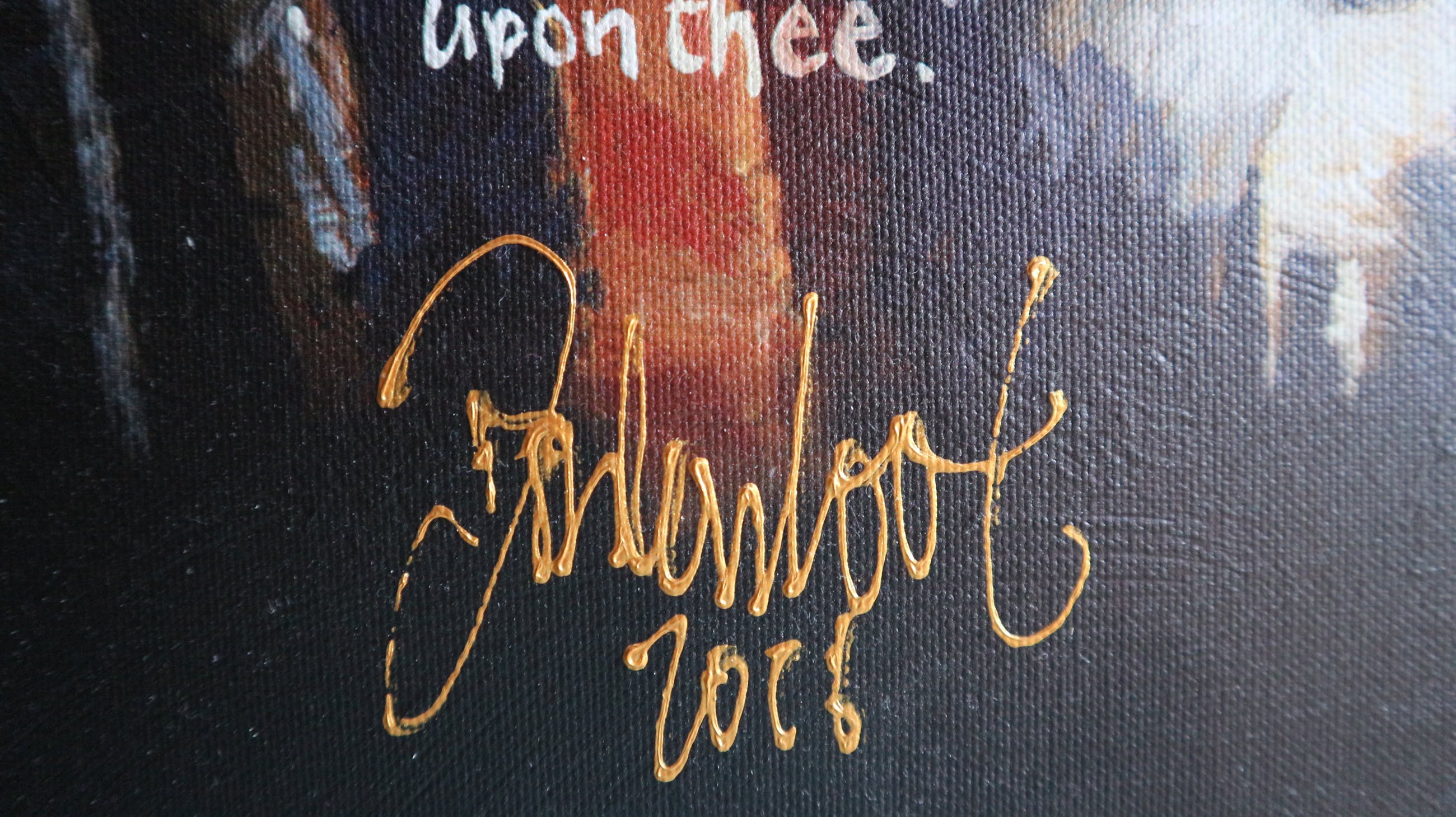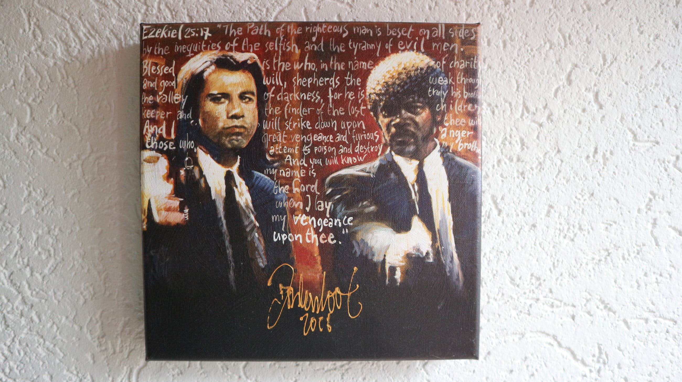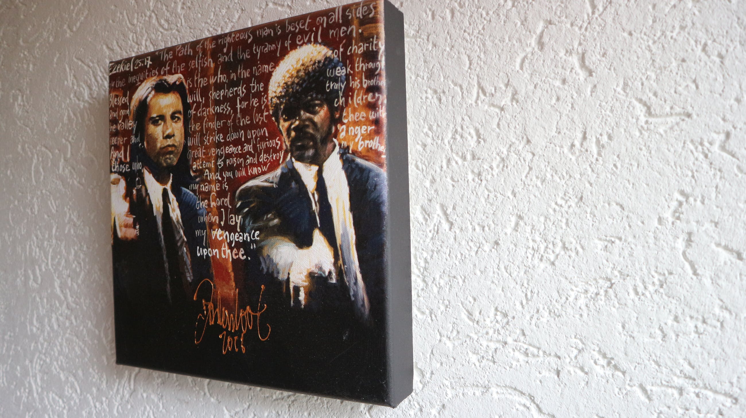 Nieuw werk van Peter Donkersloot! Pulp FictionDe Giclee op linnen is licht ingeschilderd. De ondergrond is met de hand bewerkt met een lichte structuur.Opgespannen op een frame van 4 cm. dik. Afmetingen 30 x 30 cm. Conditie: Nieuw staat. Met de hand gesigneerd.