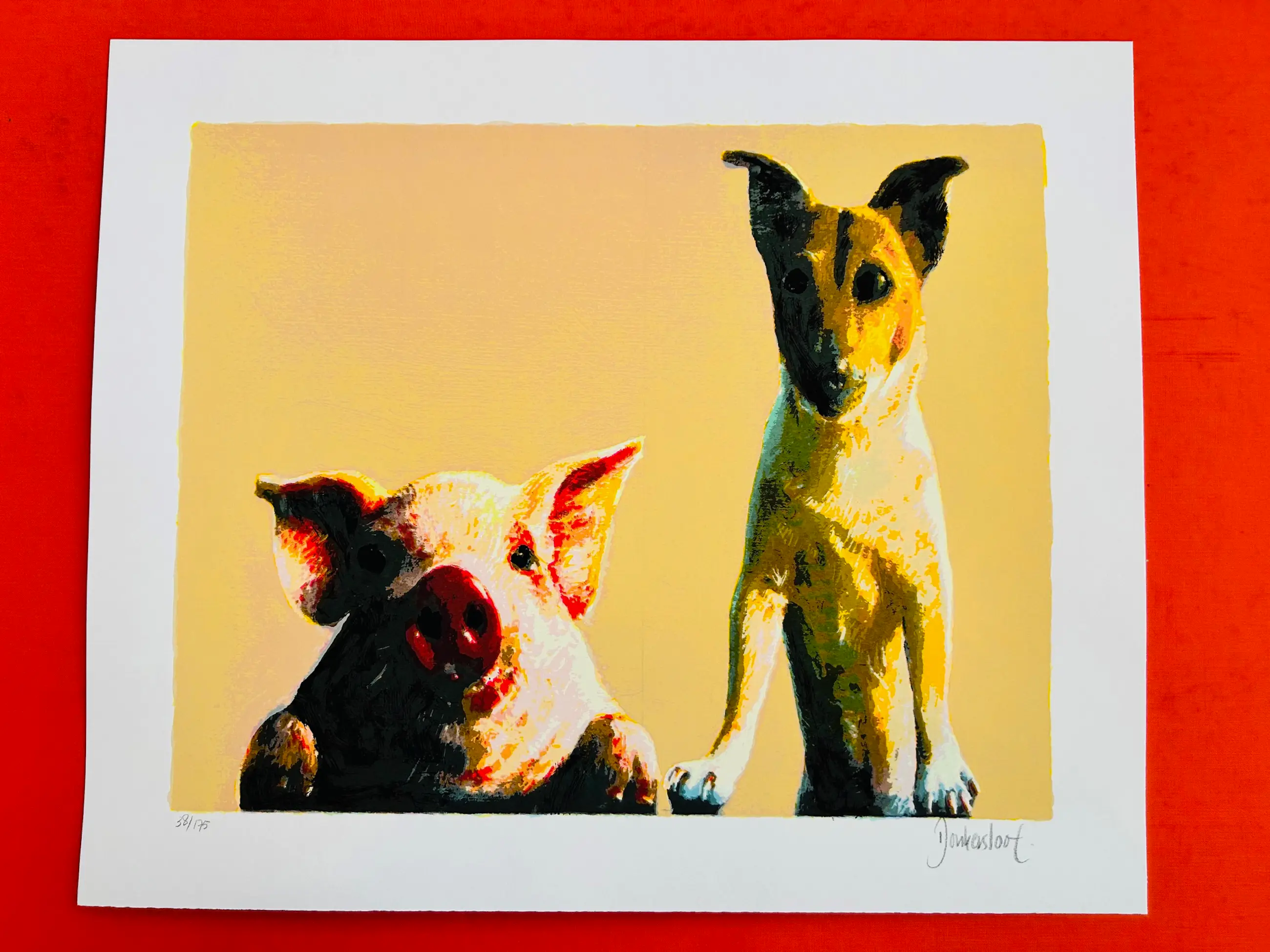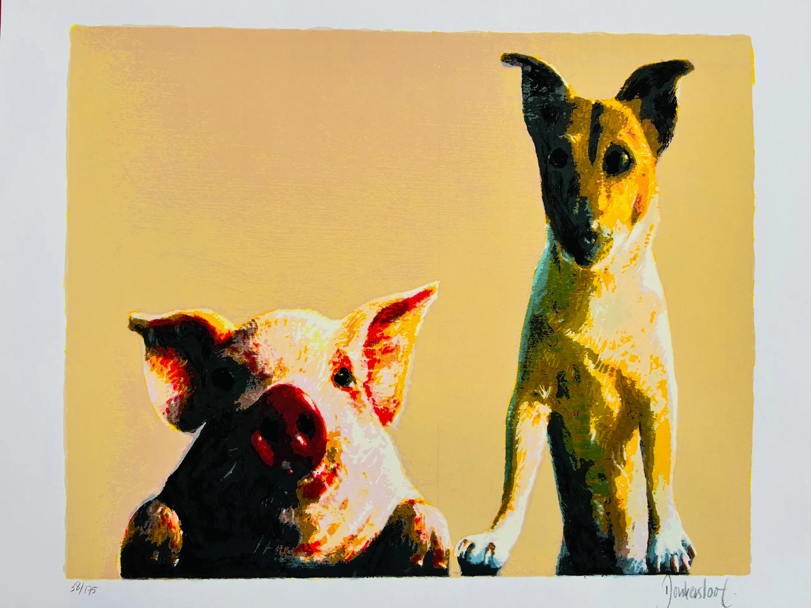 Een leuke zeefdruk van de Nederlandse kunstenaar Peter Donkersloot (1959). Het werk verkeert in uitstekende conditie en is handgesigneerd door de kunstenaar.