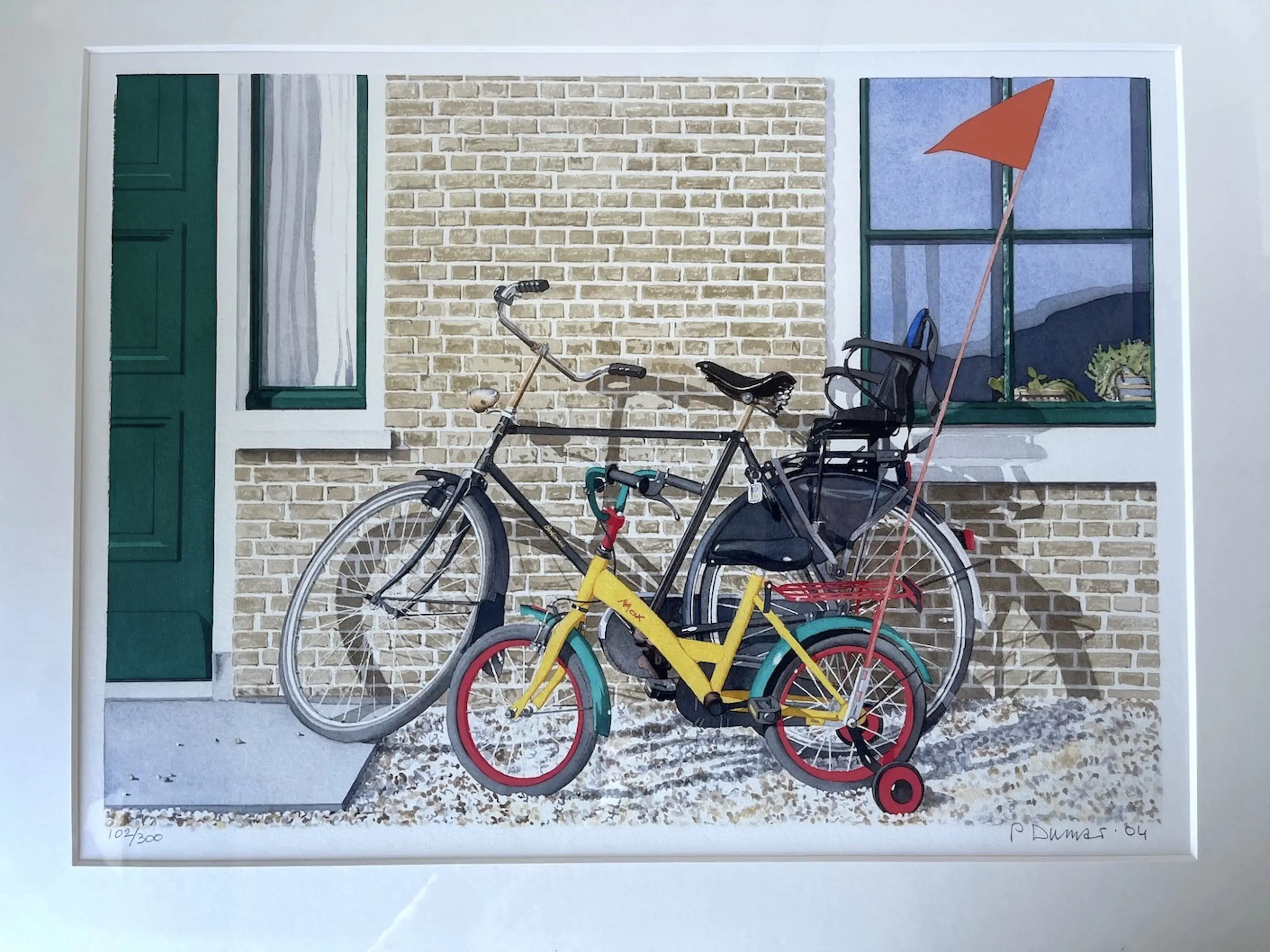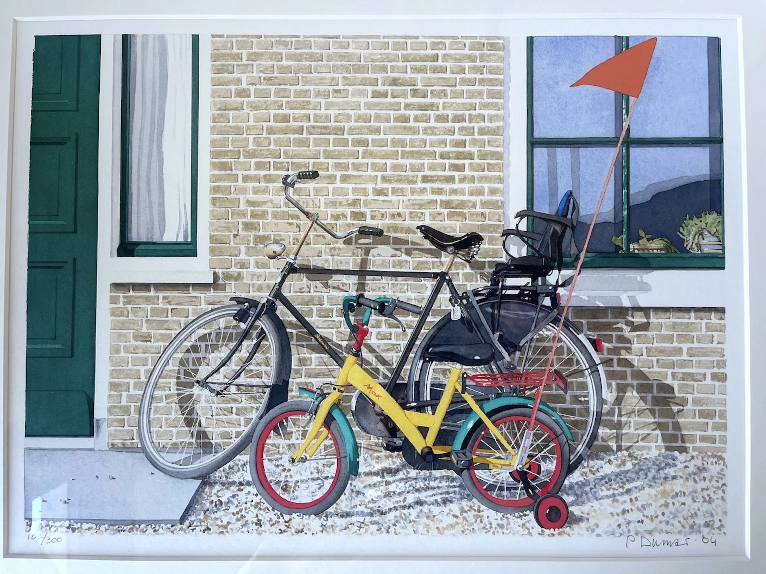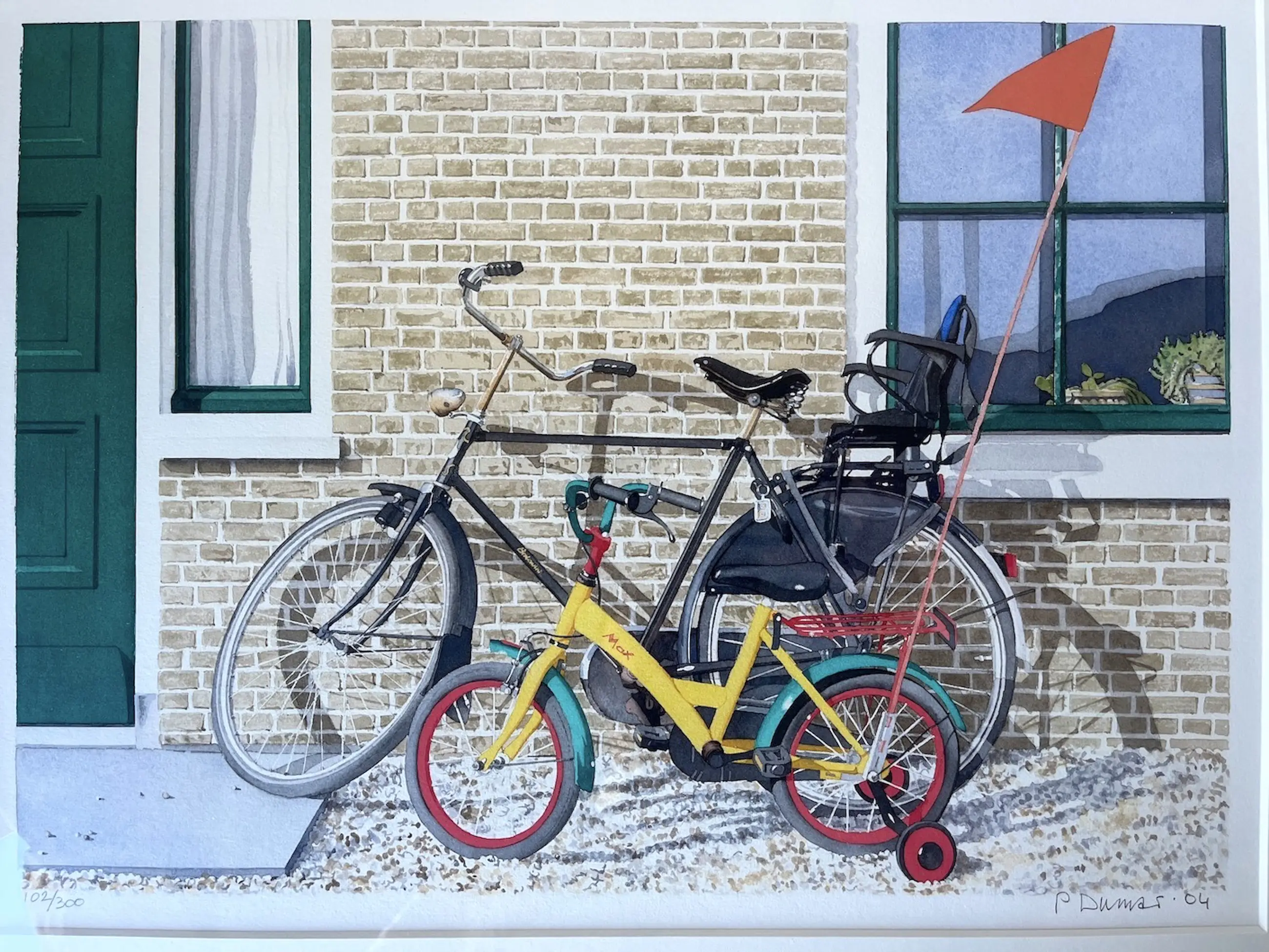 JC 699 K Peter Dumas Fietsen tegen de muur Zeefdruk 102/300 2004 32 x 44 cm 51 x 61 cm