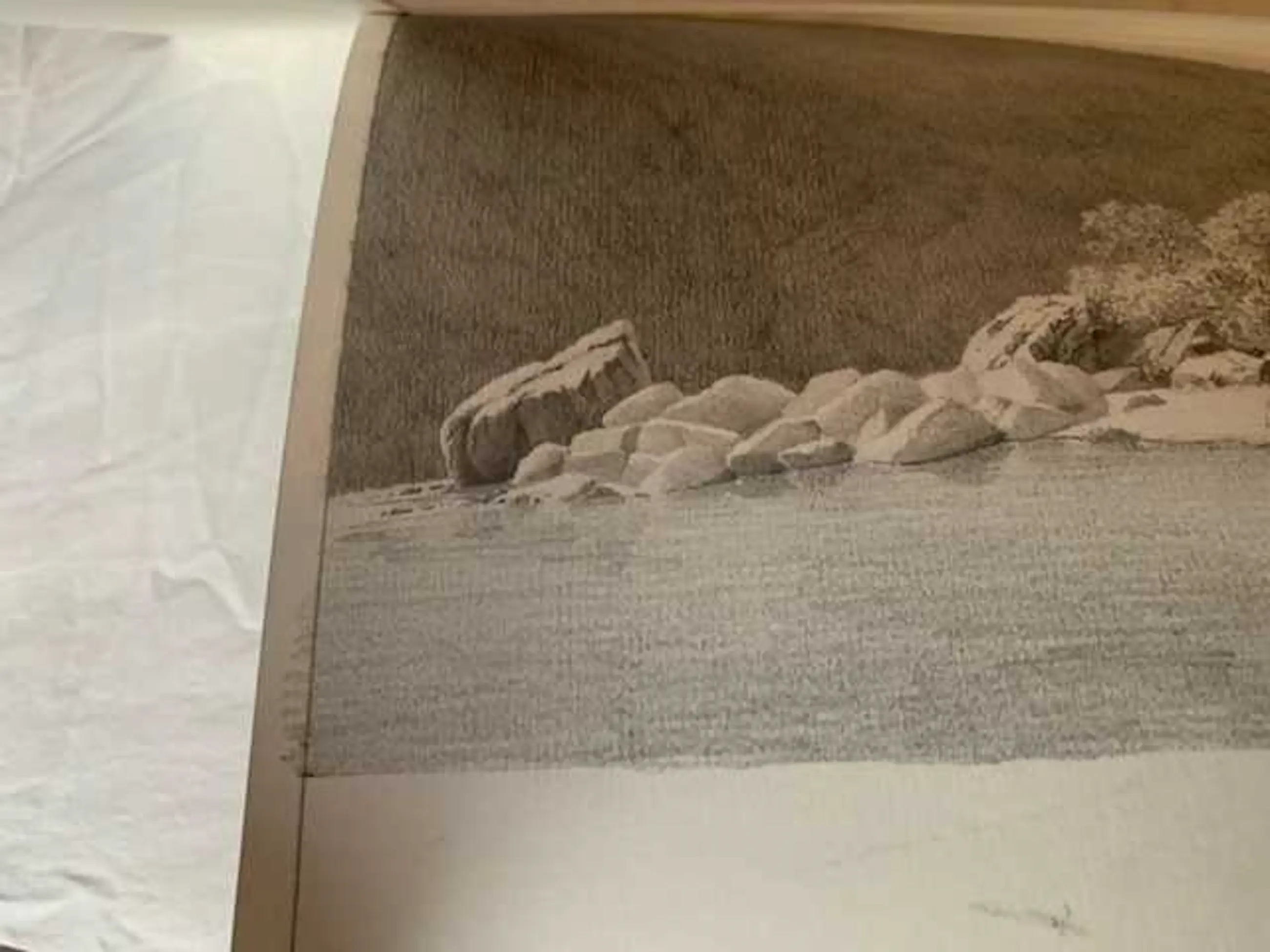 De tekeningen die hij buiten maakt, zet hij in een schilderij om in zijn atelier. Dat is geen letterlijke kopie, vrijelijk past hij de compositie en maatverhouding aan.