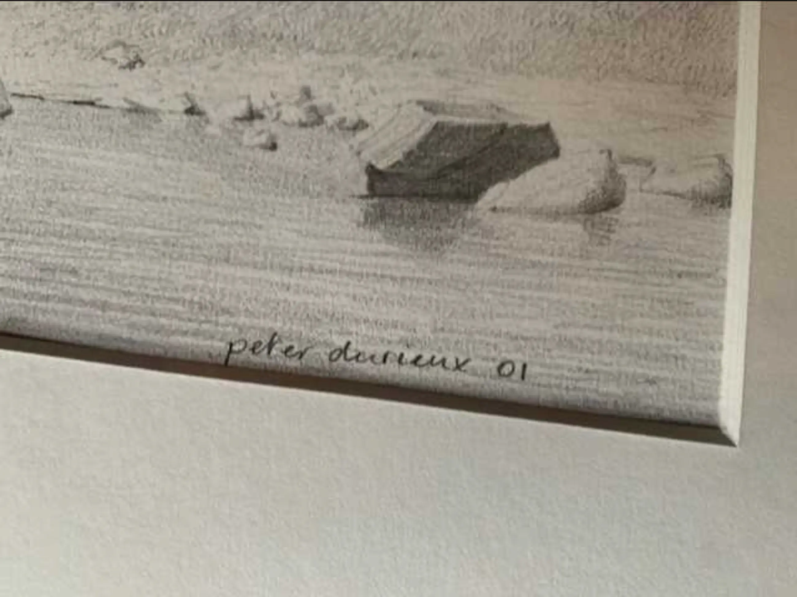 Lijst heeft wat beschadigingen! Tekeningen van Peter Durieux worden door ateliers in nederland doorgaans verkocht voor rond de € 1100 euro.