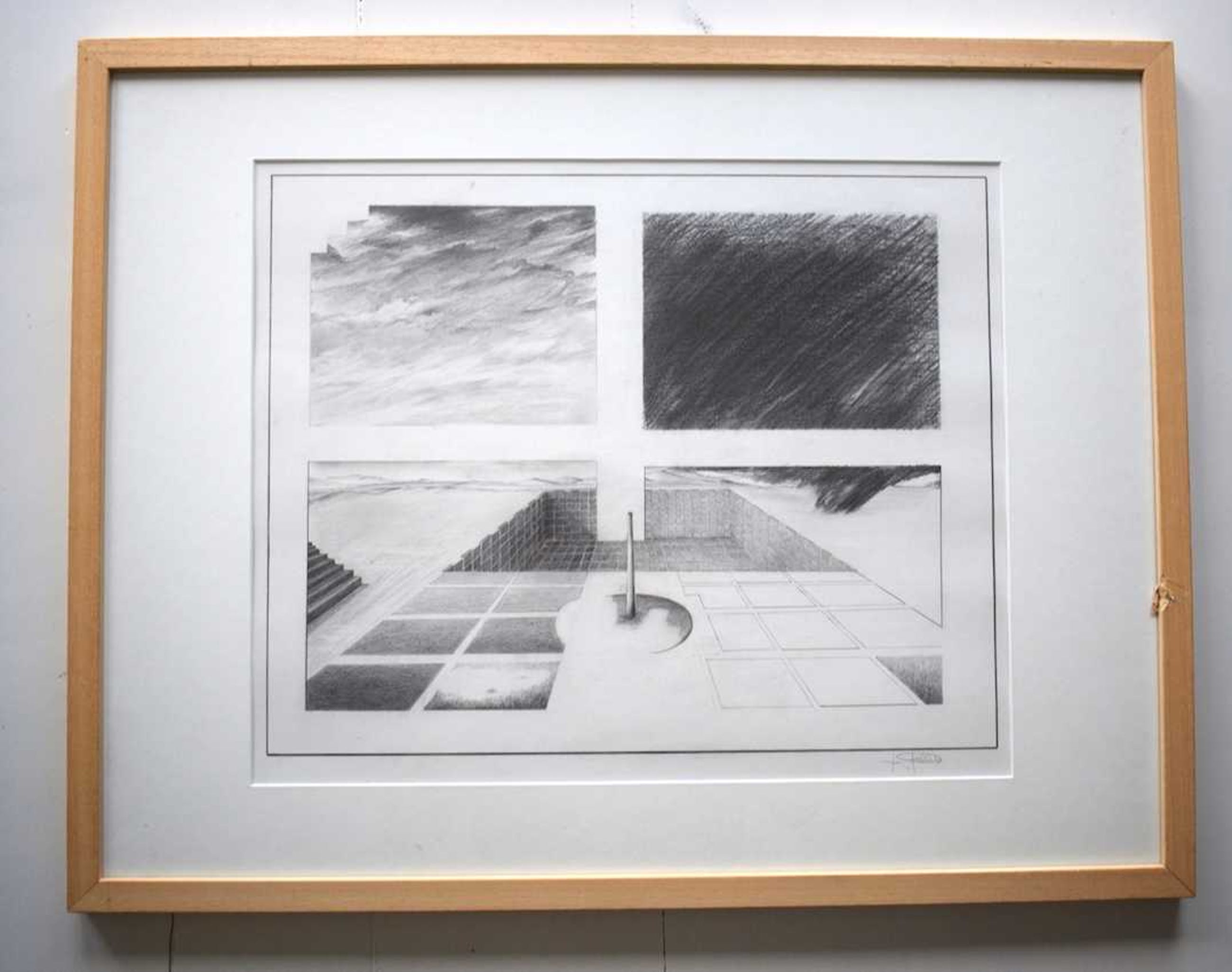 Peter Foeller - Pool - Surrealistische Tekening, Ingelijst