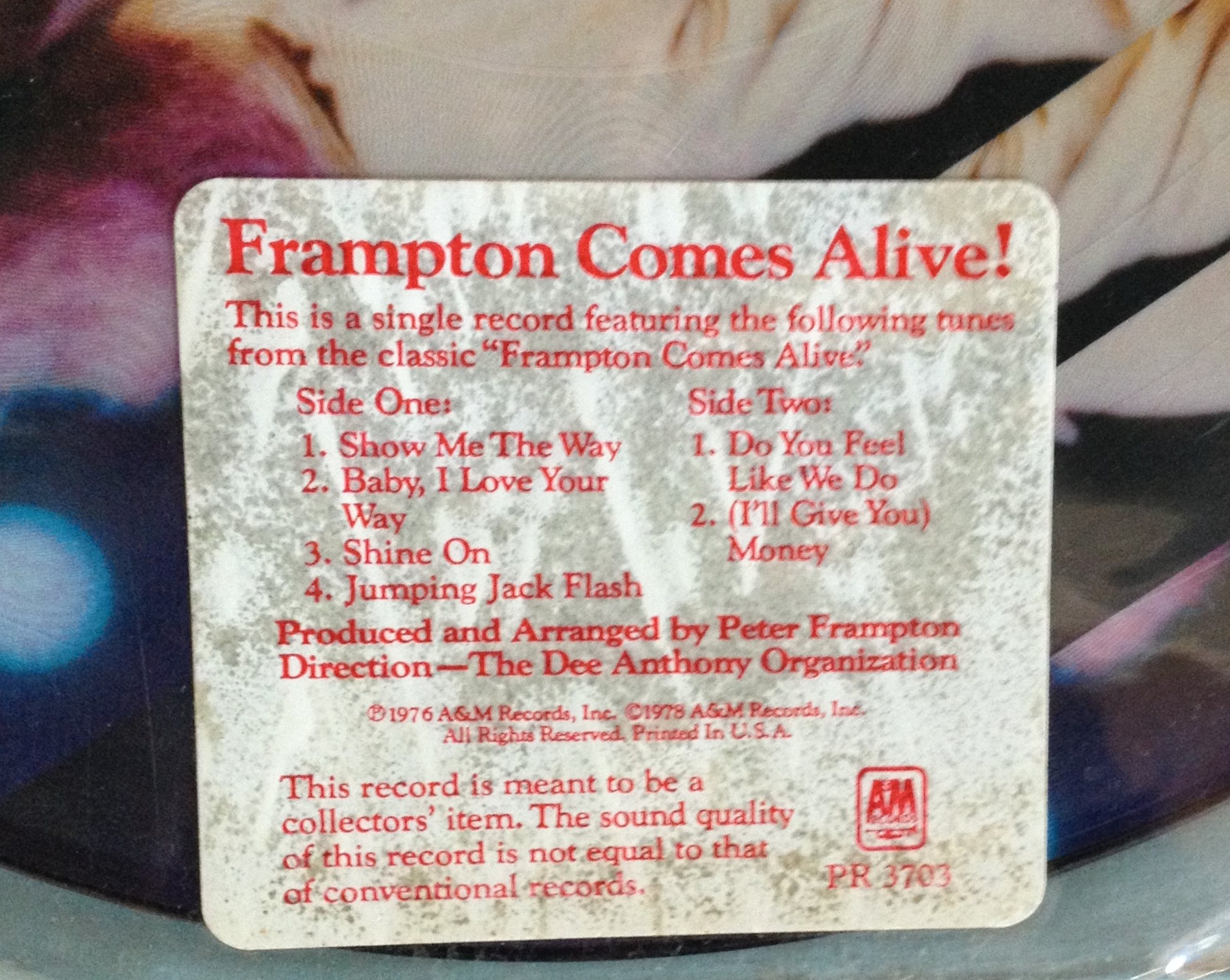 For sure one of the biggest albums of all time. This album was a staple in households and still resonates with nostalgia. Released in 1976 on A&M Records, Frampton Comes Alive! would become a breakthrough live record for Frampton. Beautiful limited edition 1978 pictures disc. This copy is number 02937. Features: Show Me the Way, Baby, I Love Your Way, Do You Feel Like We Do and more. A&M PR 3703