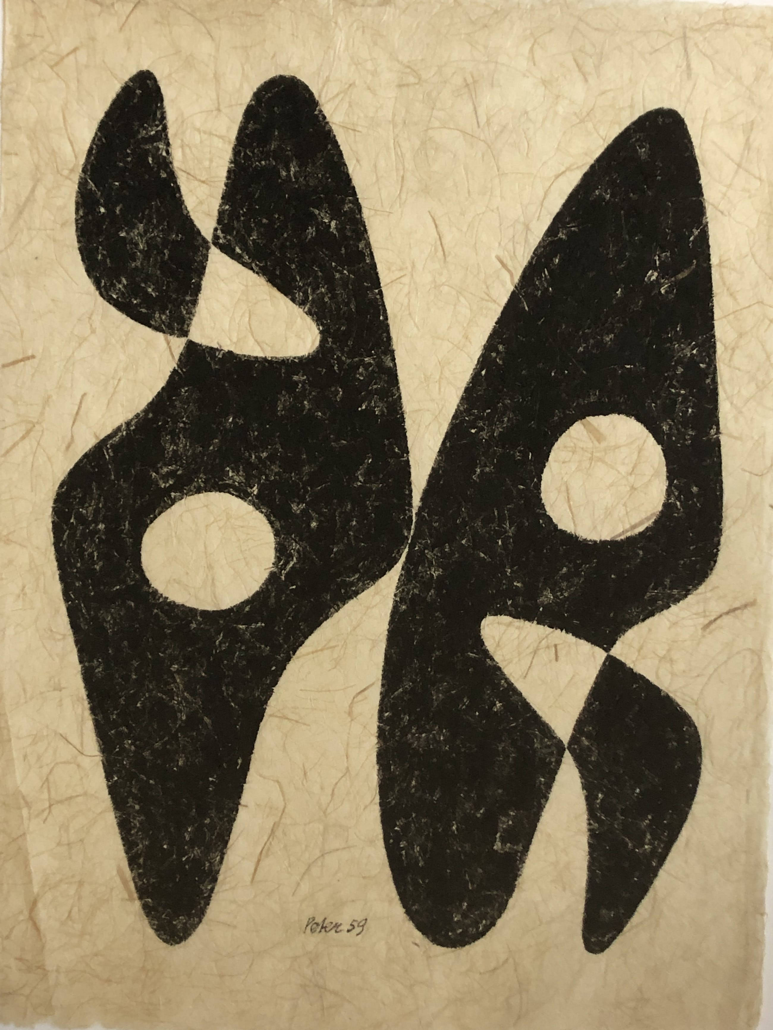 Mooi vroeg werk van de internationale kunstenaar Peter Geni op gebroken wit Japans papier. Het werk leent zich er uitermate goed voor om zwevend in te laten lijsten. In de linkerhoek een licht papier kneuzing maar niet storend voor het werk. U kunt het werk vooraf komen beoordelen in de schatkamer van galerie Rotor in Gorcum.