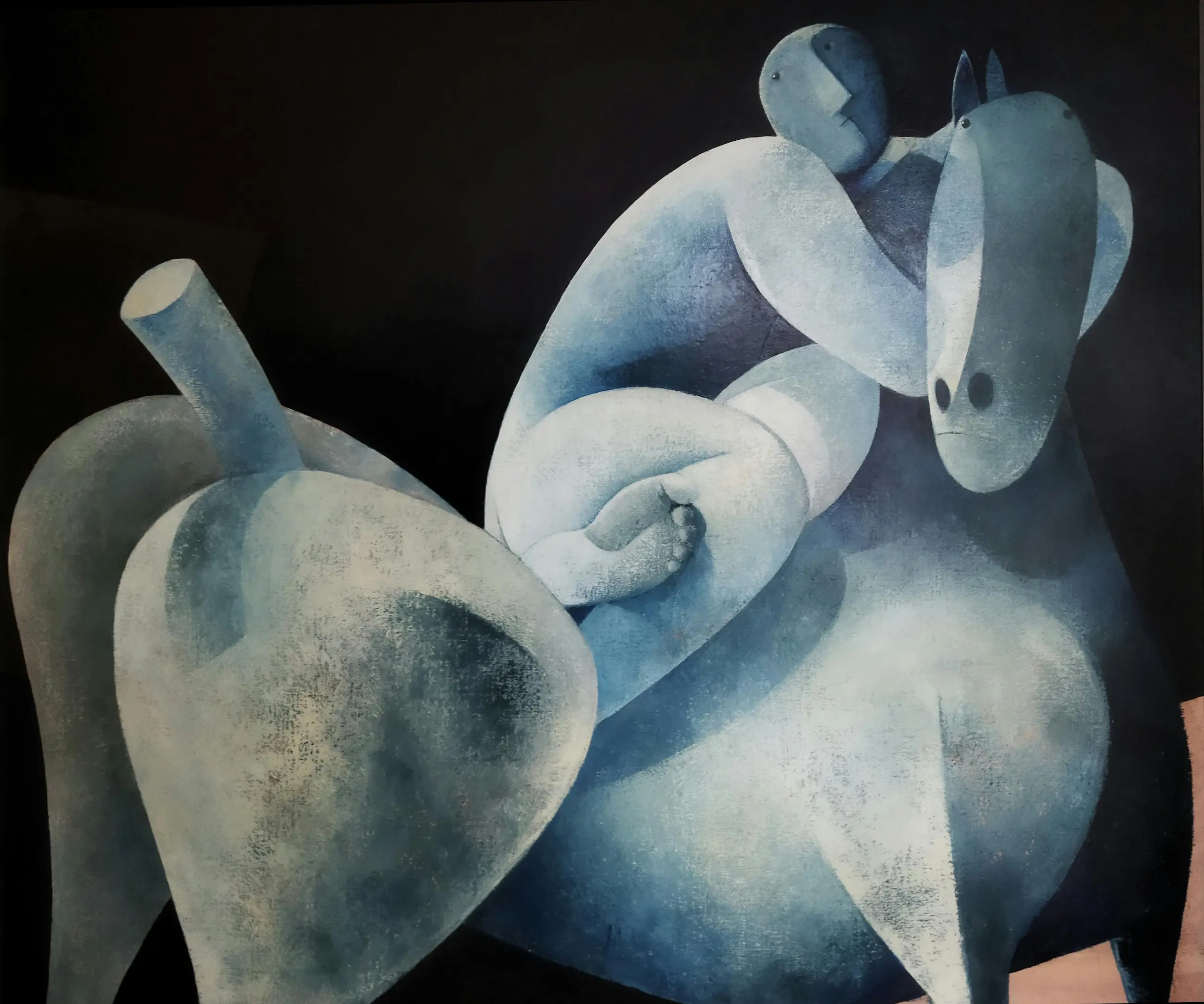 Peter Harskamp is een internationaal bekend kunstenaar die niet alleen geëxposeerd heeft in vele landen in Europa, maar ook in New York en Taiwan. Het schilderij "Ruiter" is in een uitstekende staat.