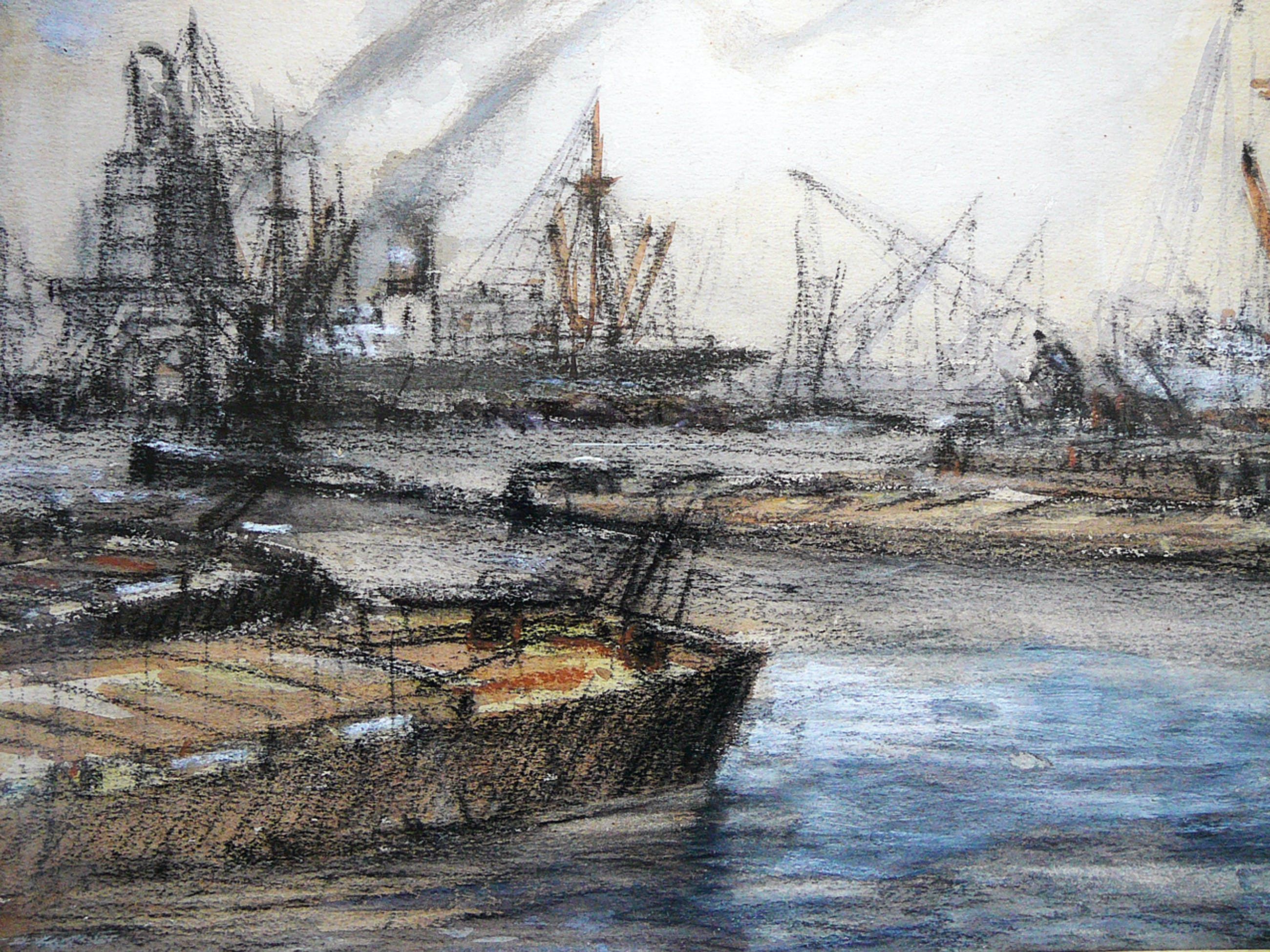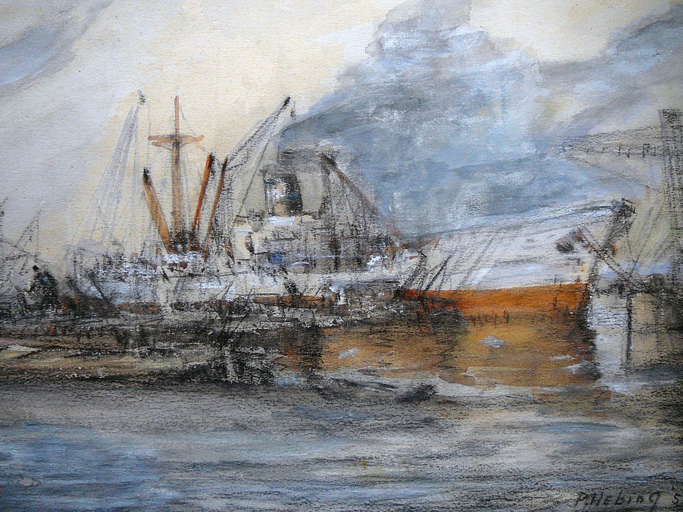 Fraai, en vrij zeldzaam werk in gemengde techniek (aquarel i.c.m. vetkrijt) van de hand van Peter Hebing (1934). Hebing volgde zijn opleiding aan de vrije Academie in Den Haag en École Nationale Supérieure des Beaux-Arts (Parijs). Gelijst achter glas en rechtsonder gesigneerd.