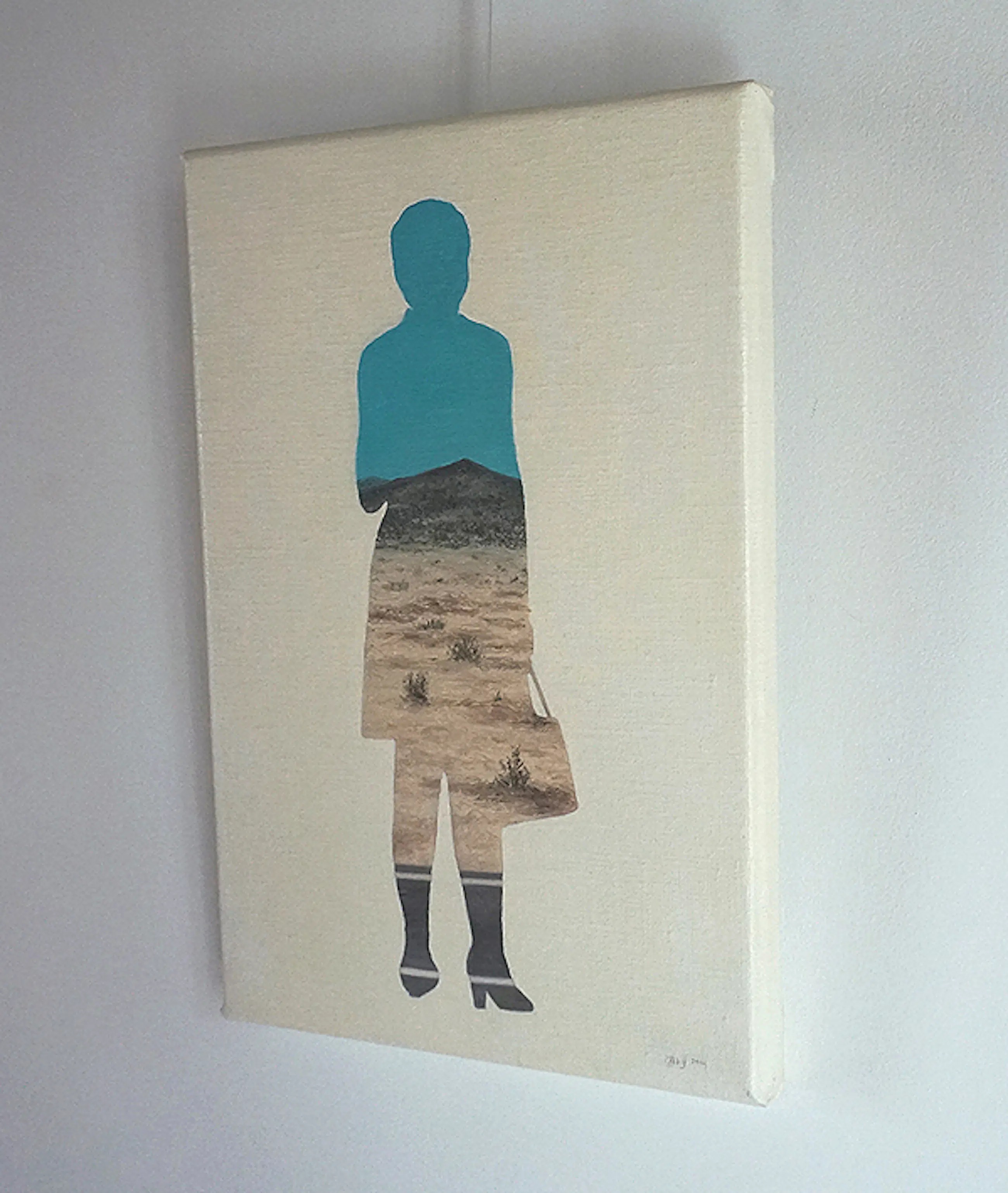 The Figures are 'portraits' with images depicted from outside which create and form the innerworld. By rendering man as a Figure 'filled in' with images depicted from their surroundings, 'portraits' appear in which the essential and personal characteristics are reduced to expression and outward characteristics like a silhouette or shadow. A more complete image from identity can be seen from the images with which they are 'filled'. These images come from the figure's surroundings, images such as landscapes, still-lifes, and cityscapes; the images from the outer world reflecting the innerworld, the identity.