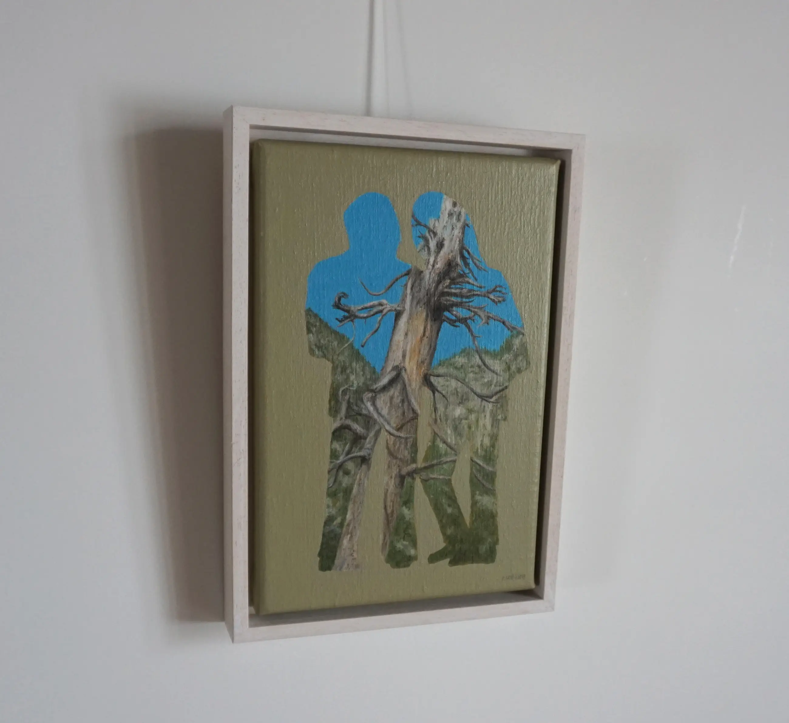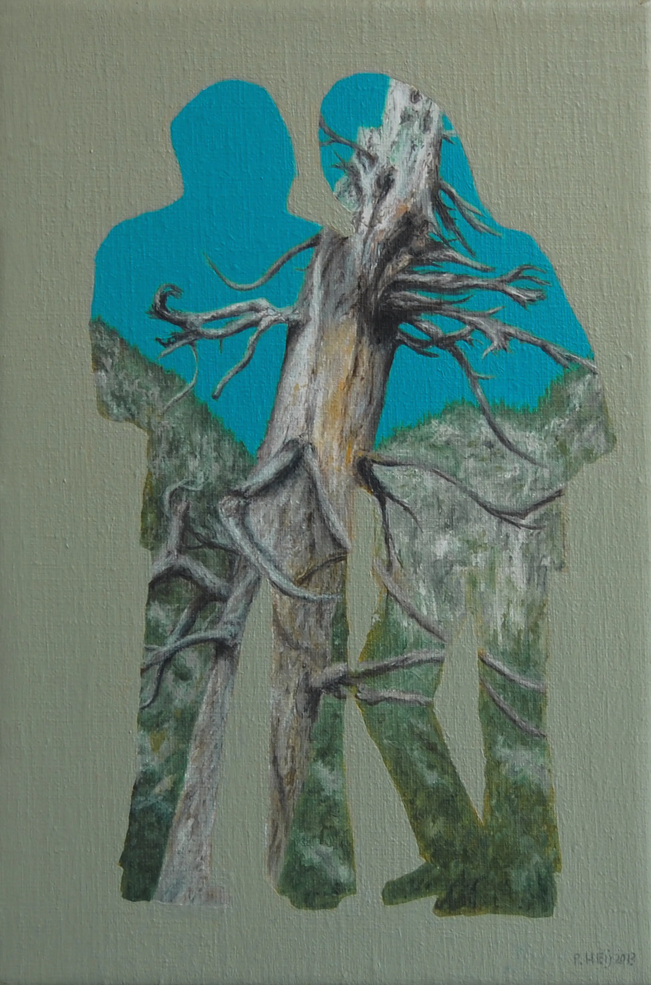 The Figures are 'portraits' with images depicted from outside which create and form the innerworld. By rendering man as a Figure 'filled in' with images depicted from their surroundings, 'portraits' appear in which the essential and personal characteristics are reduced to expression and outward characteristics like a silhouette or shadow. A more complete image from identity can be seen from the images with which they are 'filled'. These images come from the figure's surroundings, images such as landscapes, still-lifes, and cityscapes; the images from the outer world reflecting the innerworld, the identity.