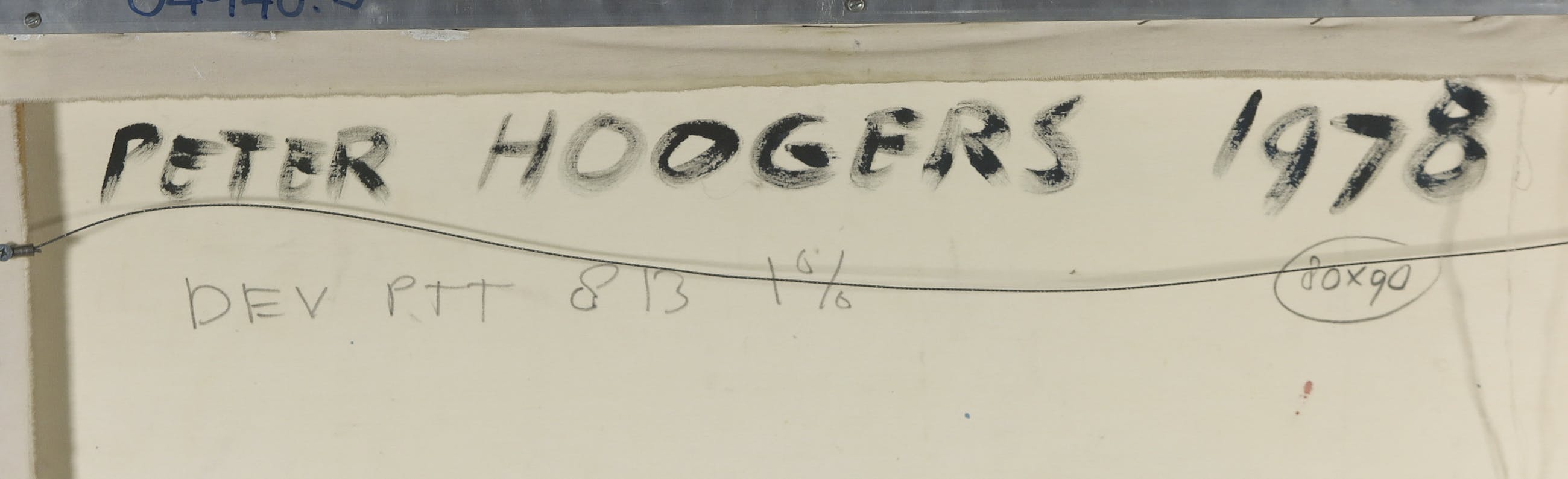 | In het midden van het doek zit een klein gaatje (zie detail-foto). Verder verkeert het werk in goede staat. | |