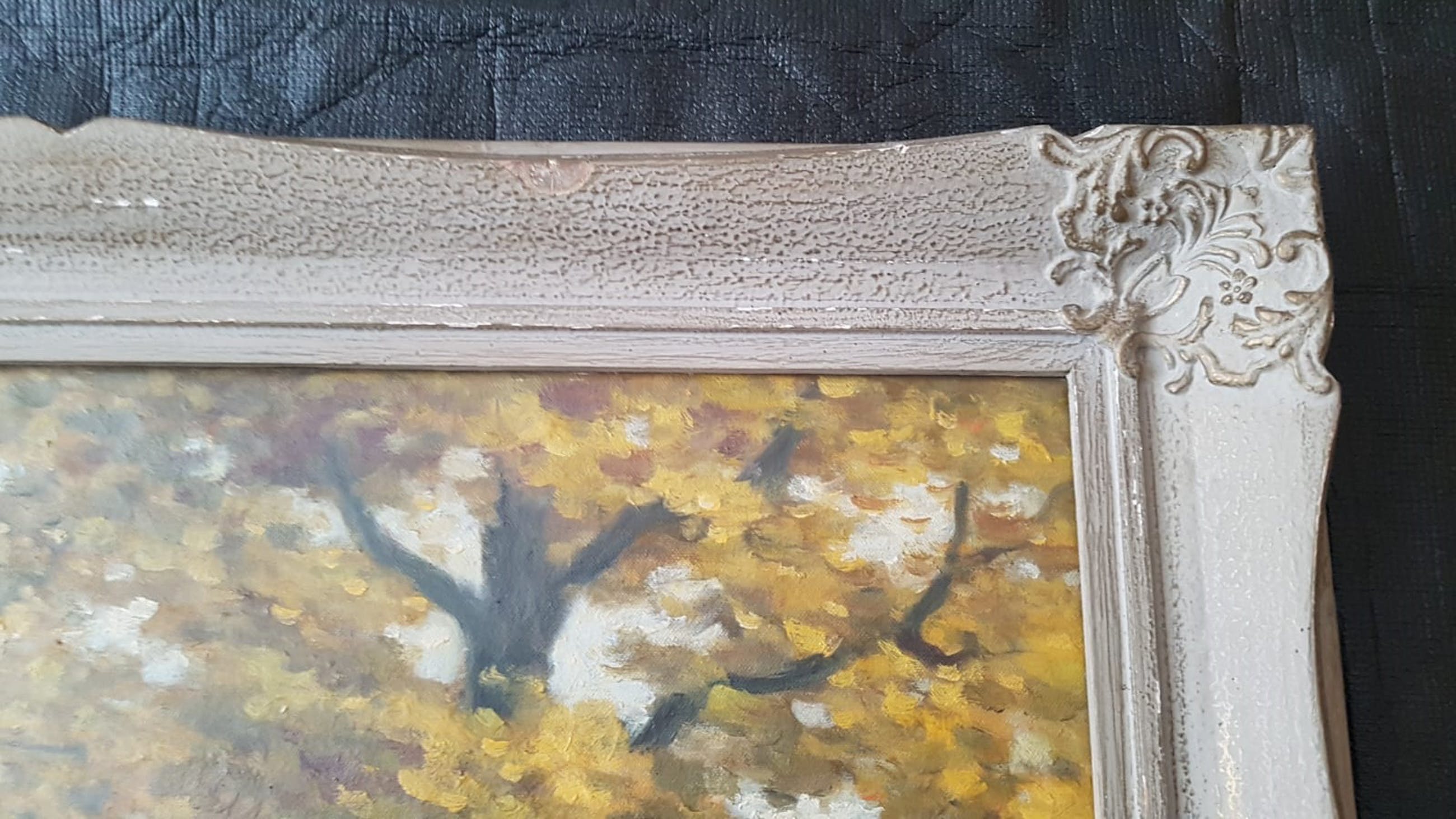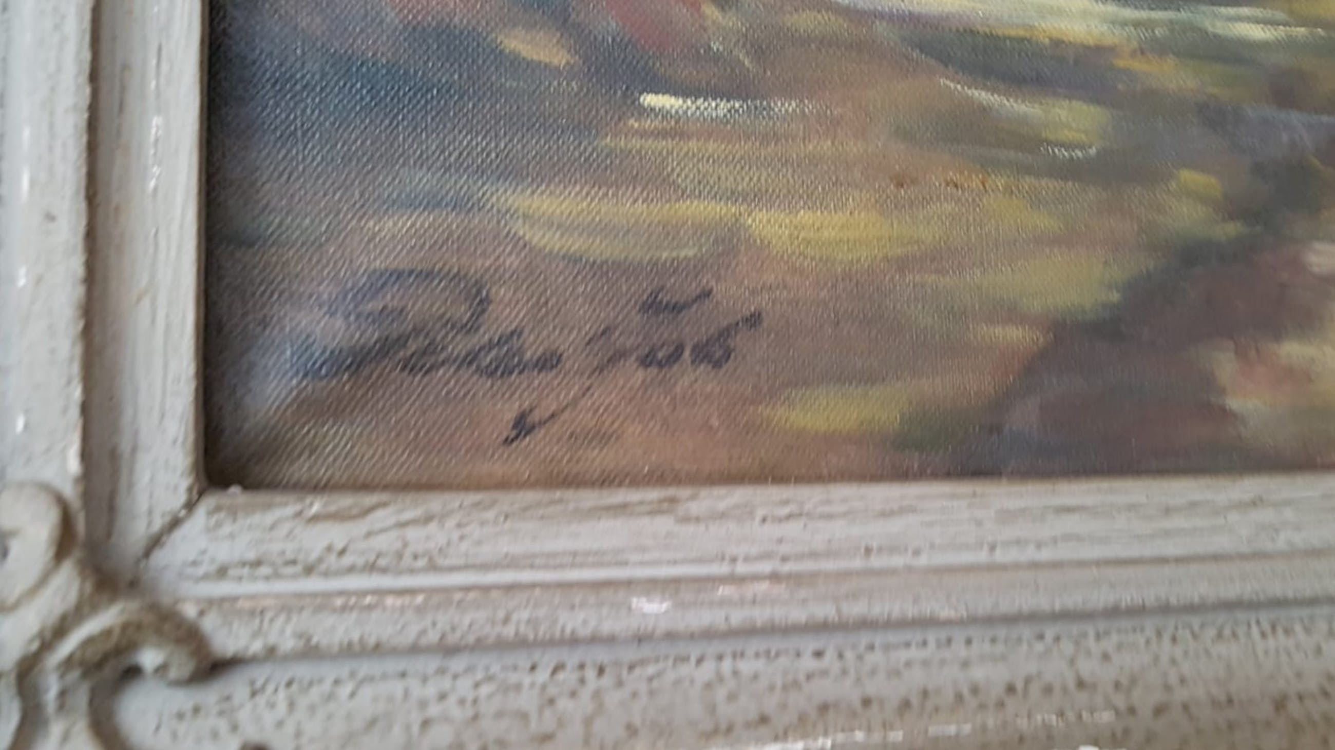 Doek is in een goede staat, lijst vertoont wat verkleuringen