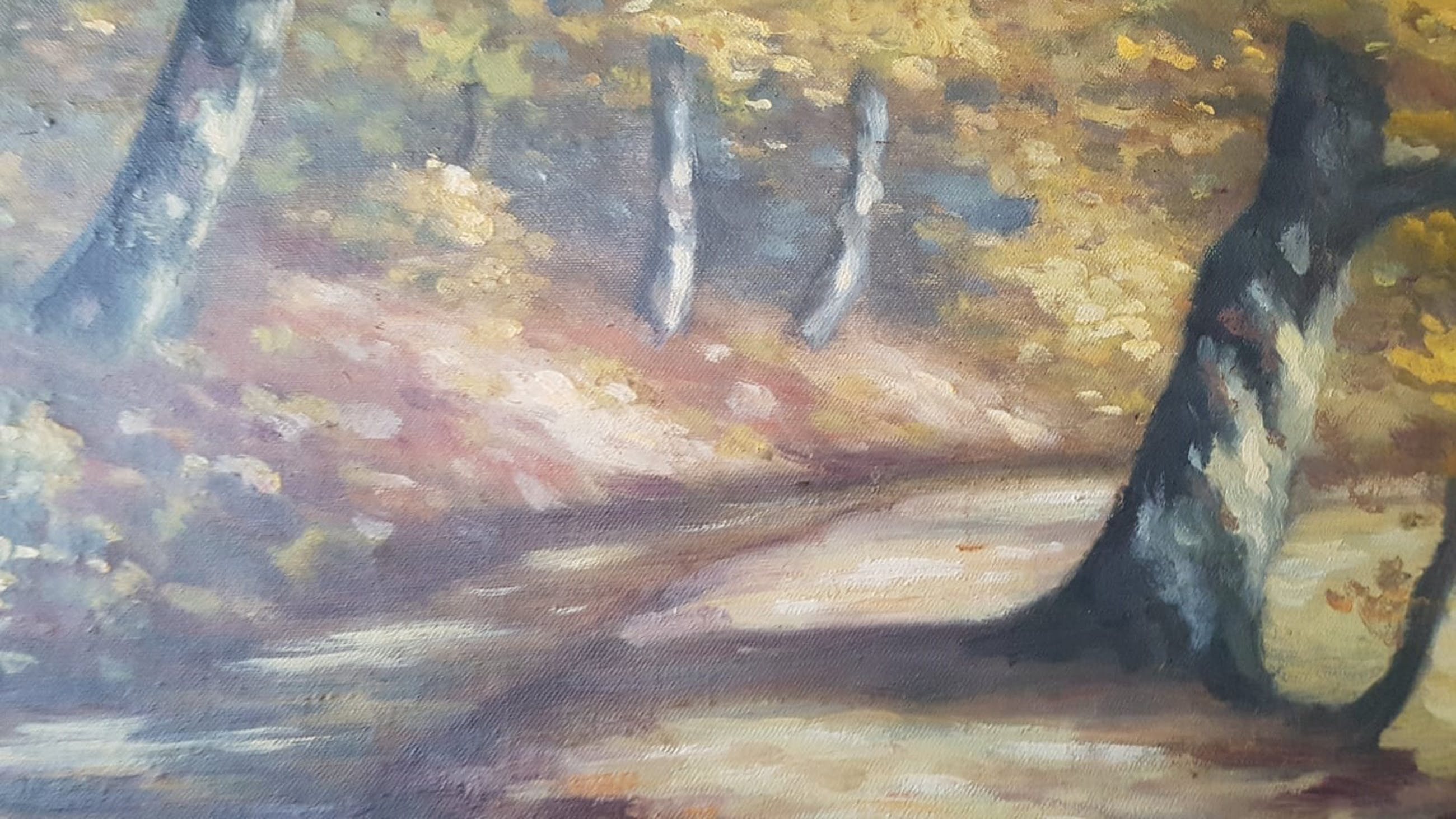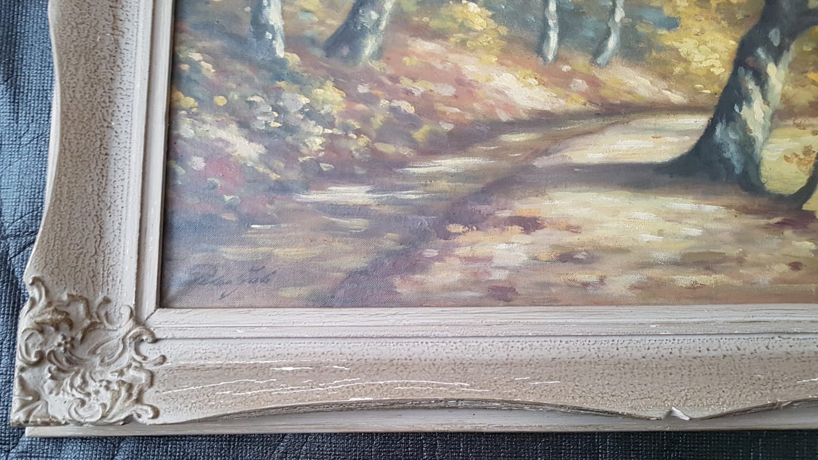 Olieverf schilderij door Peter Job van een bospad bij Plasmolen/ Molenhoek. Peter Job was lid van de zgn. Plasmolense Schilders die veel schilderden in de bossen van de Molenhoek, Plasmolen en Mook.