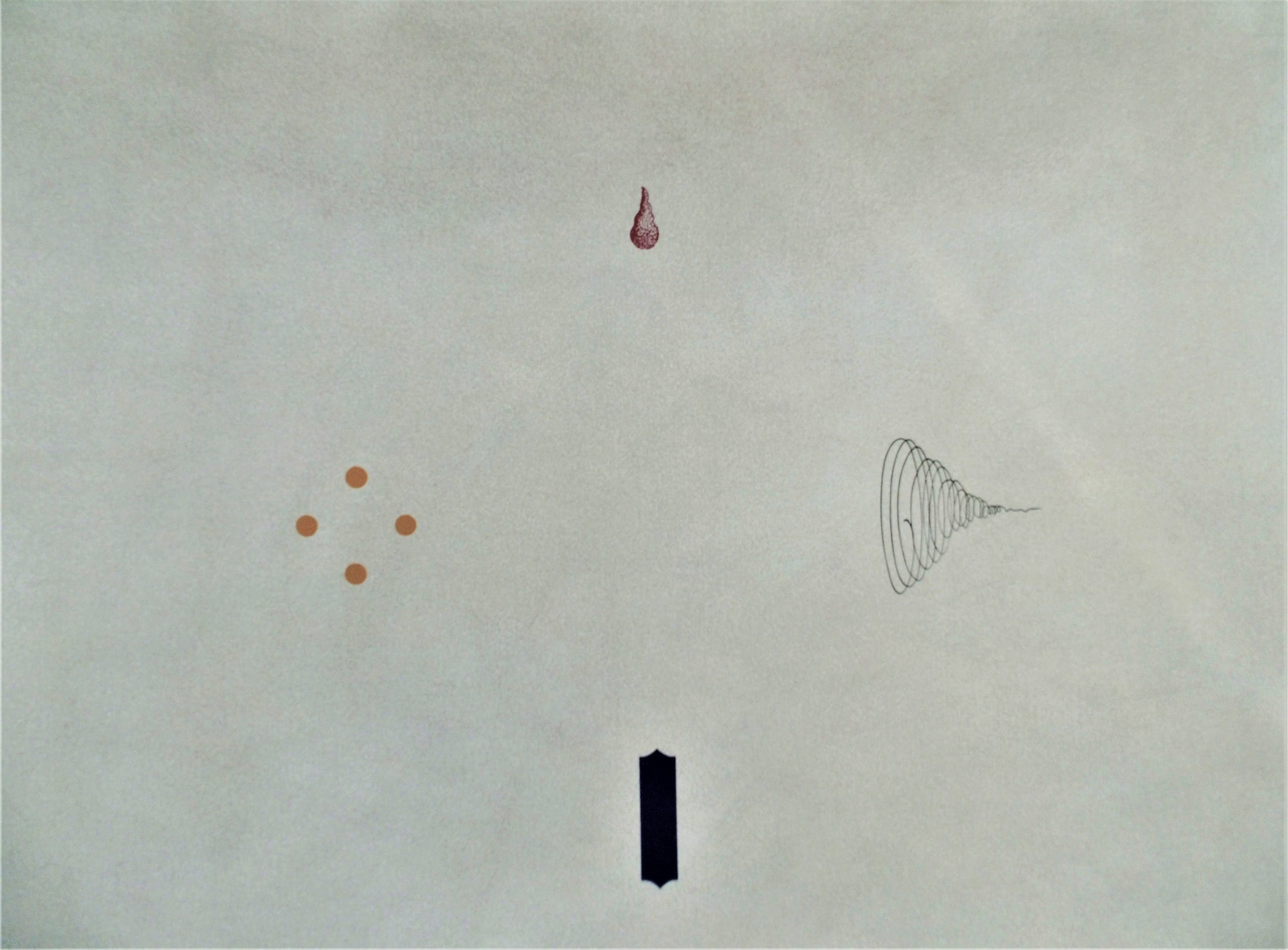 Zeefdruk van primaire tekens op donkerbruin papier.