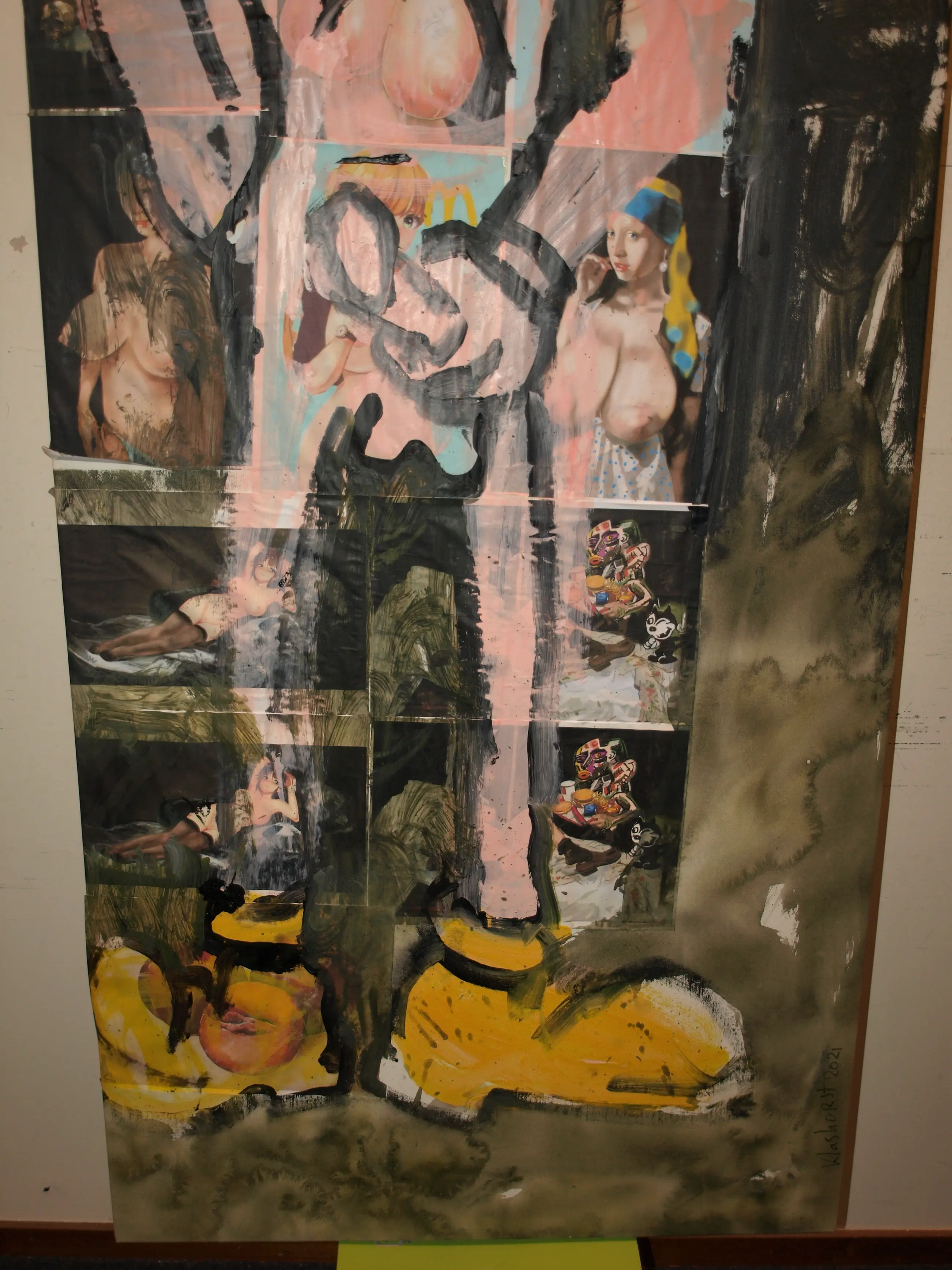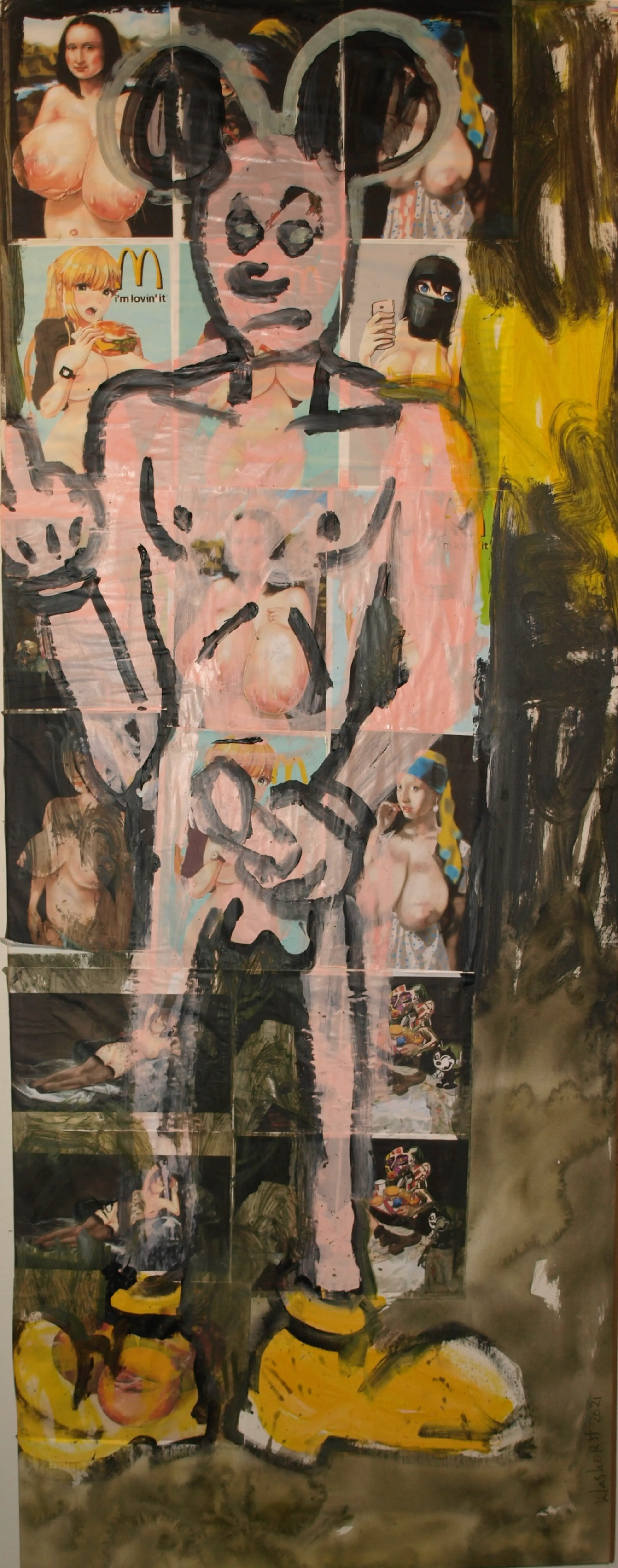 Een bijzonder en groot werk uit 2021 van de Nederlandse kunstenaar Peter Klashorst (1957). -Techniek: Een combinatie van collage en acrylverf op doek, opgespannen op een houten spieraam. -Gesigneerd en gedateerd rechtsonder in het werk. Ook gesigneerd op de achterkant van het doek. -Afmetingen: 195 x 75 x 2 cm. -Herkomst: Uit een collectie werken die de kunstenaar in 2021 maakte. -Conditie: In goede staat met slijtplekjes. Zie ook de foto’s.