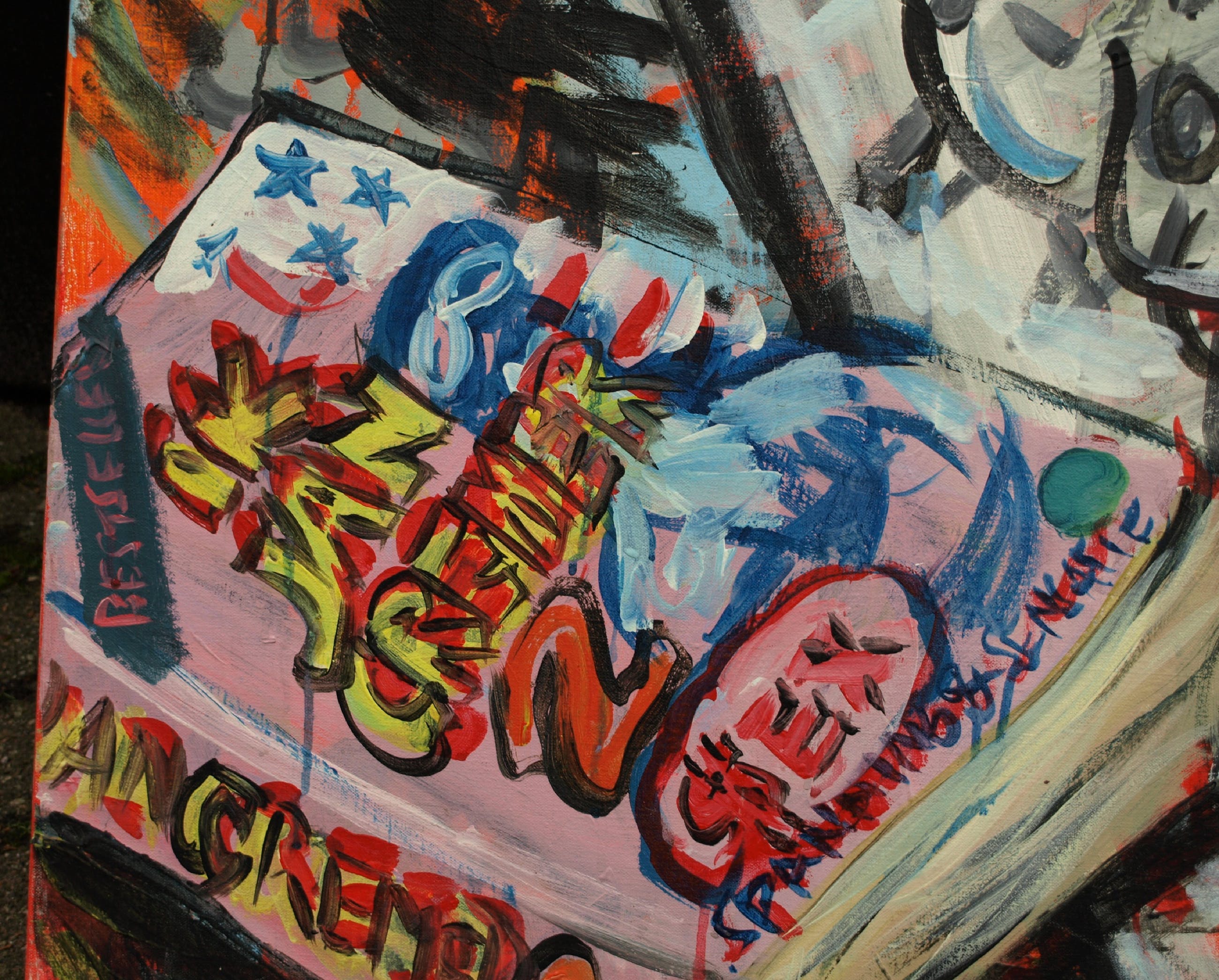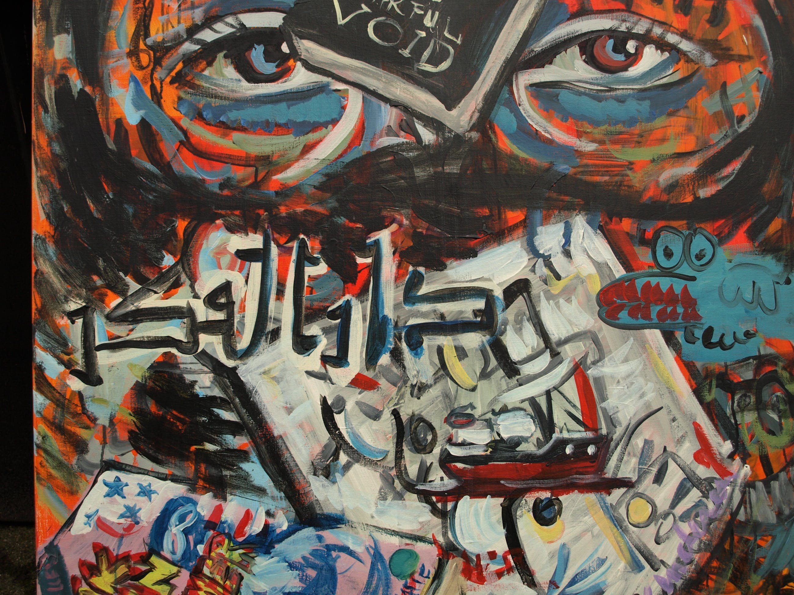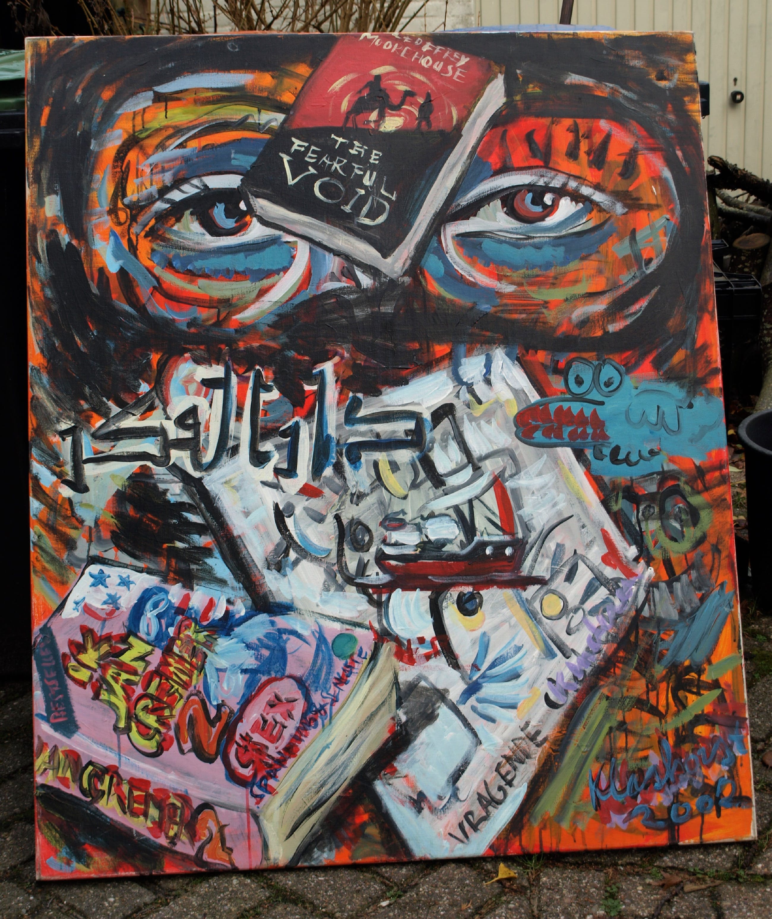 Een groot topwerk uit 2002 van de Nederlandse kunstenaar Peter Klashorst (1957), met een voorstelling waarbij de kunstenaar geïnspireerd lijkt door 2 boeken: