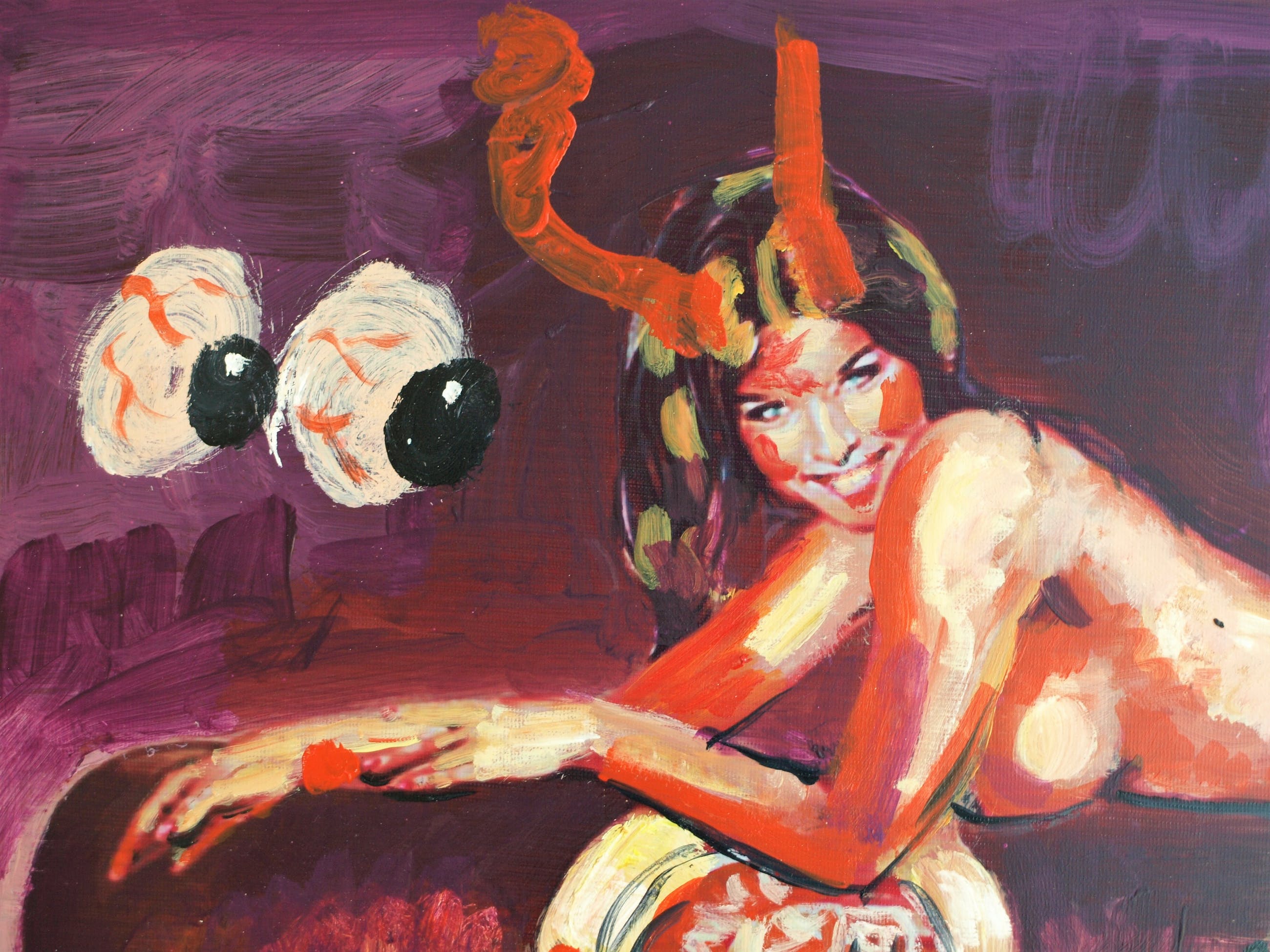 Een groot werk van de Nederlandse kunstenaar Peter Klashorst (1957), met een voorstelling van Monica Lewinsky, in de stijl van de Amerikaanse kunstenaar Mel Ramos (1935-2018)