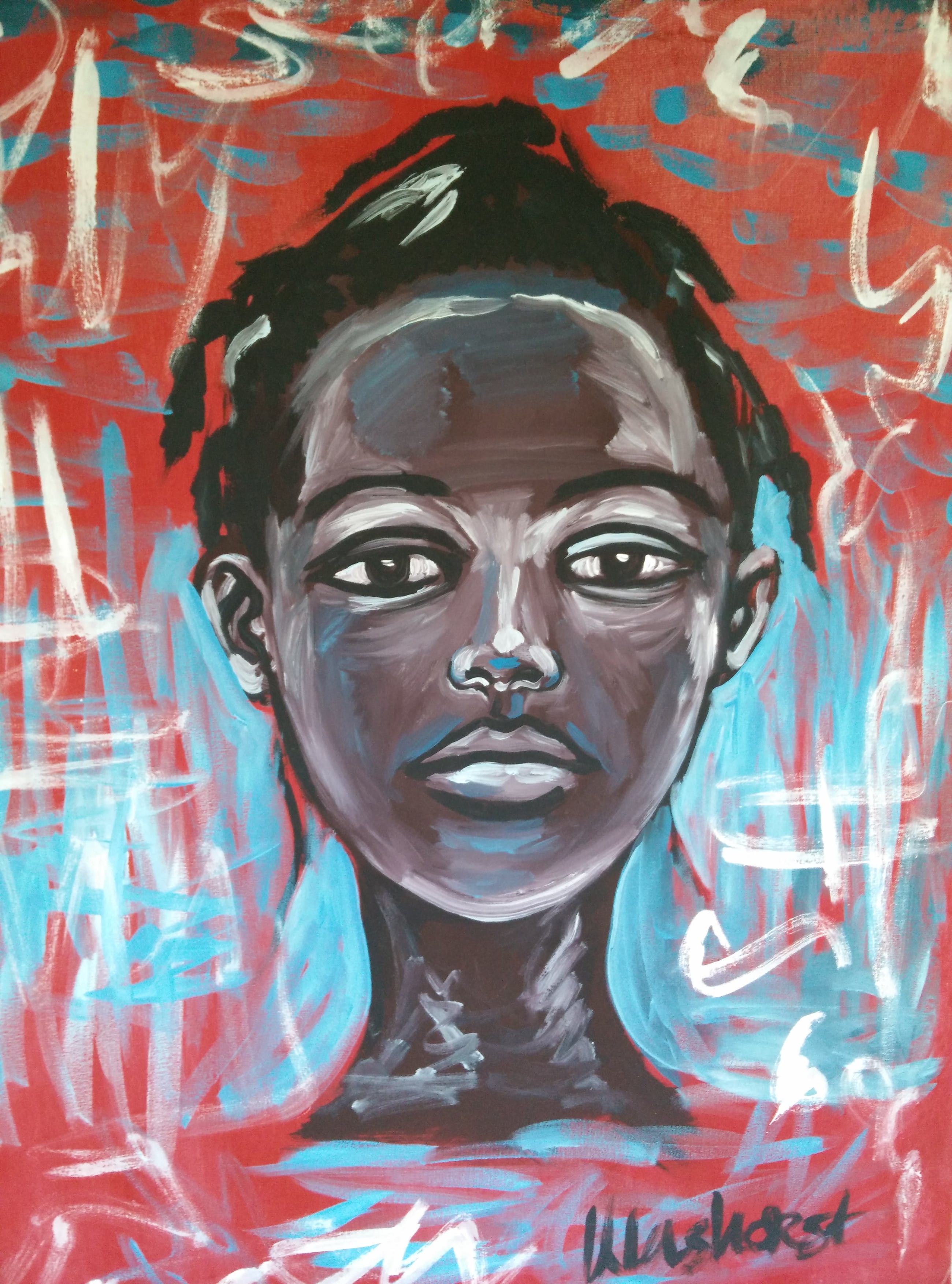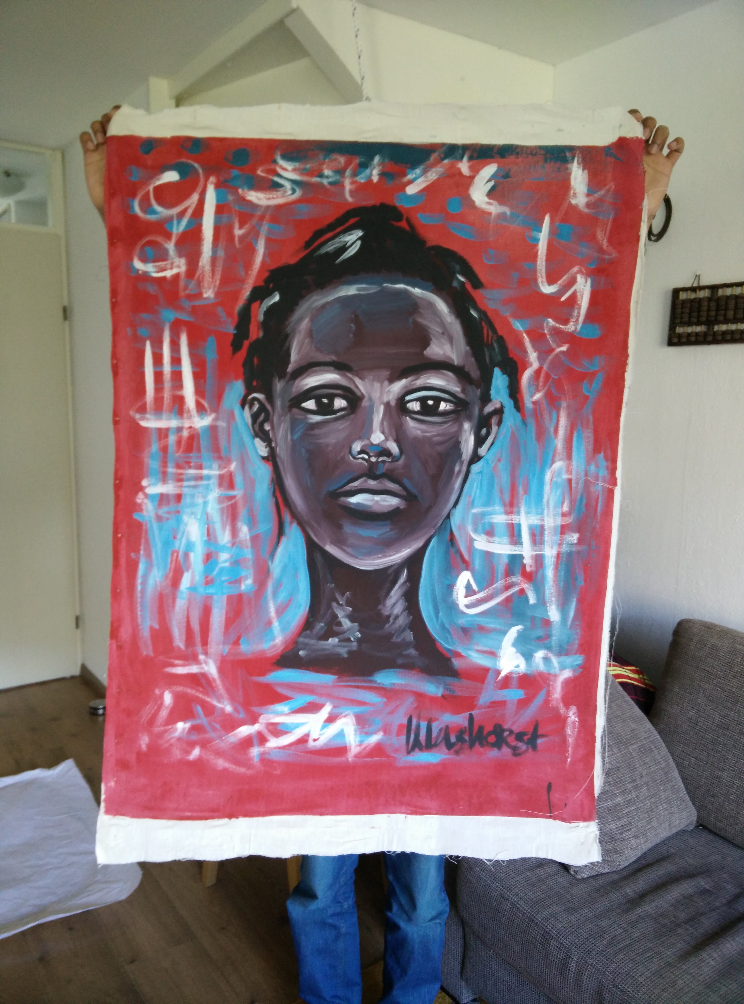 Schilderij van Peter Klashorst uit zijn Afrika periode. Het schilderij is op doek en heeft een afmeting van ca 100 x 75 cm. De conditie is zeer goed (nooit aan de muur geweest etc.)..