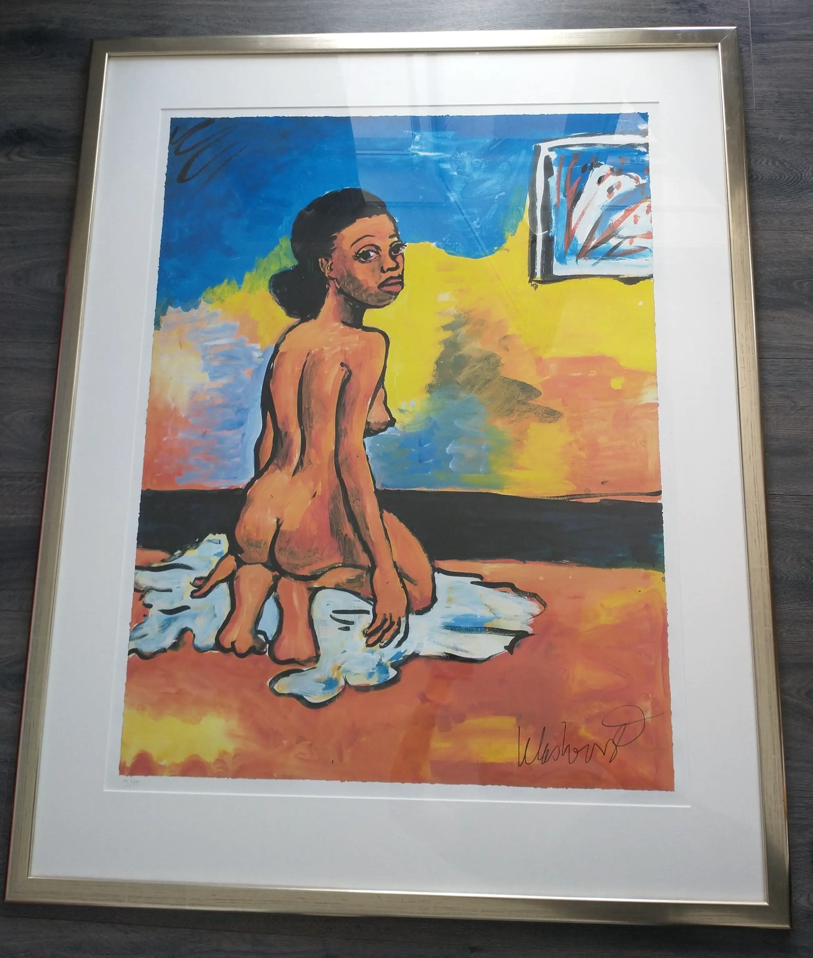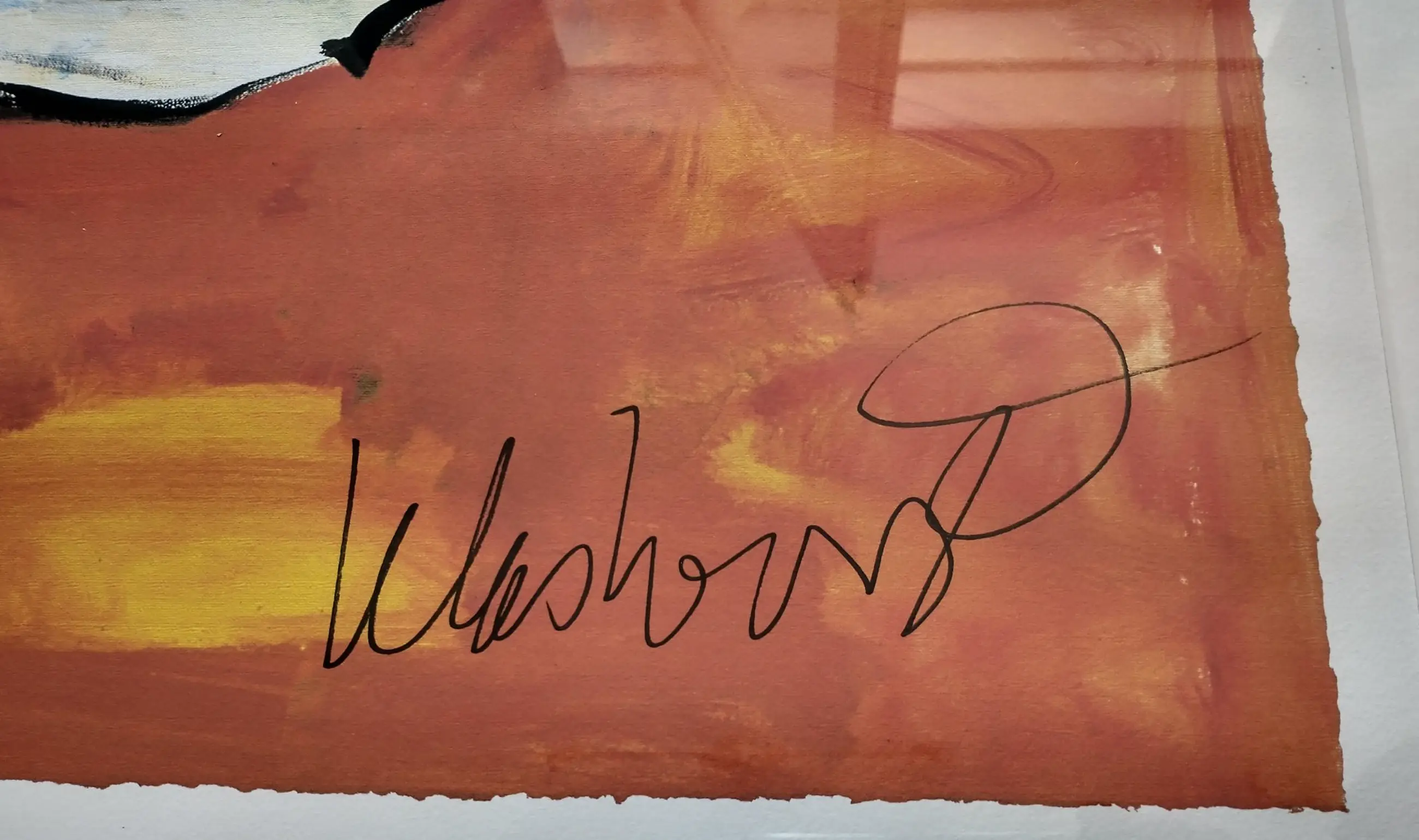 Zéér kleine oplage van slechts 75 ex. en fraai ingelijst in zilveren houten lijst met passe partout, het totale formaat is maar liefst 124 x 100 cm. Genummerd en uiteraard met de hand gesigneerd.