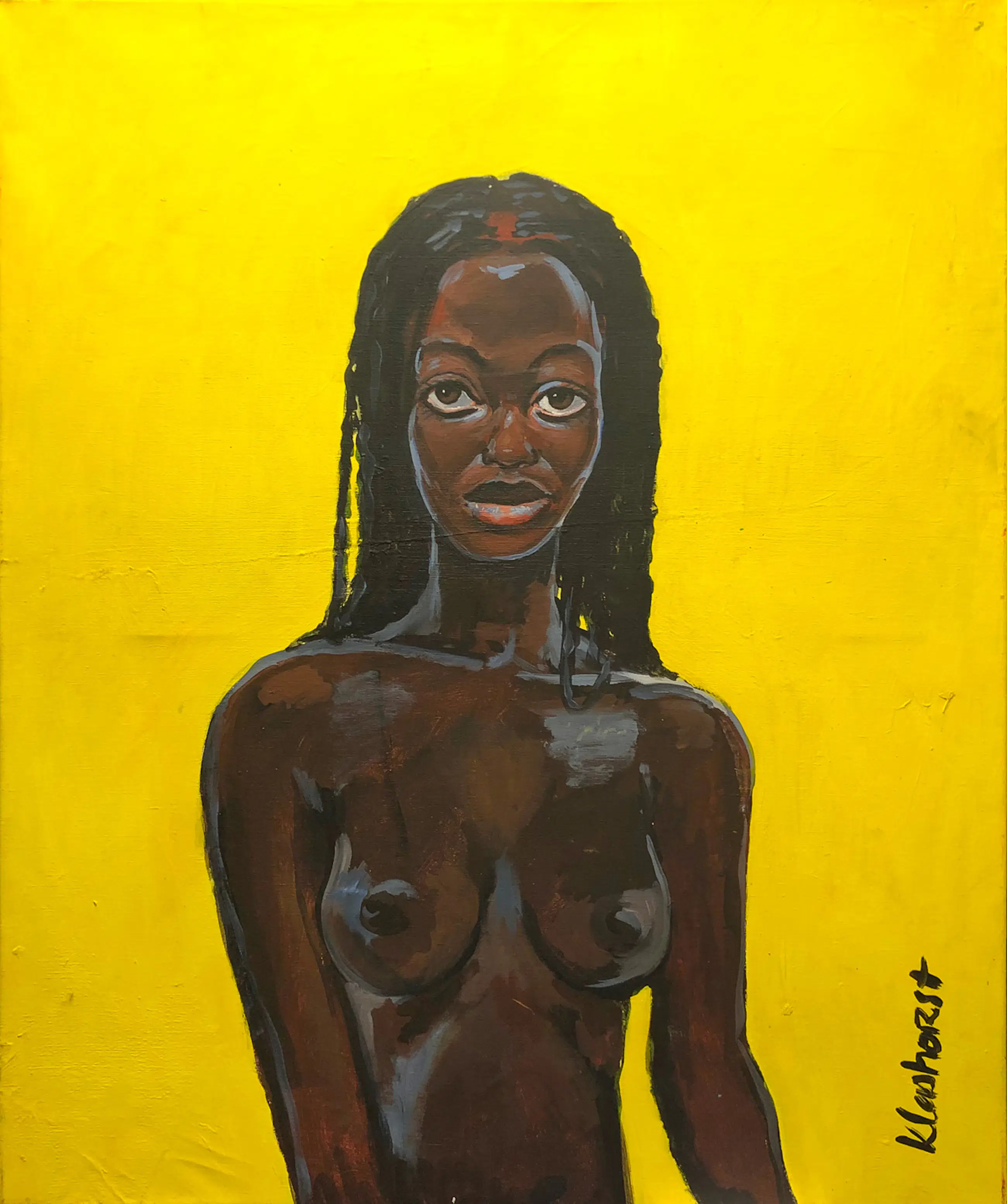PETER KLASHORST African Woman (Yellow) Acryl op doek 100 x 120 cm Expressief portret uit Klashorsts Afrikaanse periode. Levendige New Wild Ones-stijl, geïnspireerd op reizen en confrontatie. Perfecte conditie, uit privécollectie.