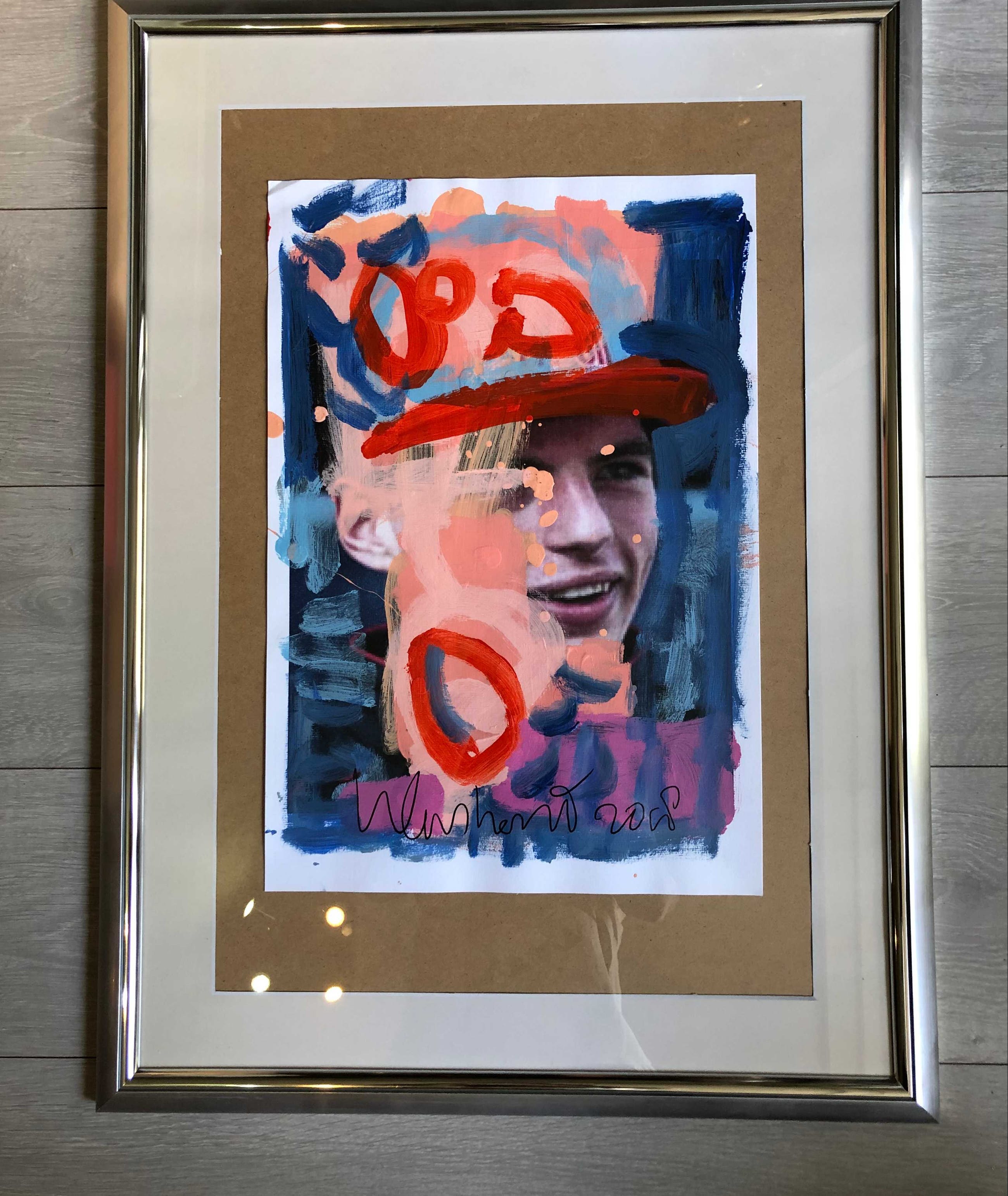 Originele zeefdruk van Peter Klashorst die ook door hem beschilderd is. Met als onderwerp: Max Verstappen. Rechtstreeks van de kunstenaar ontvangen, met certificaat van echtheid. Het werk is ingelijst.