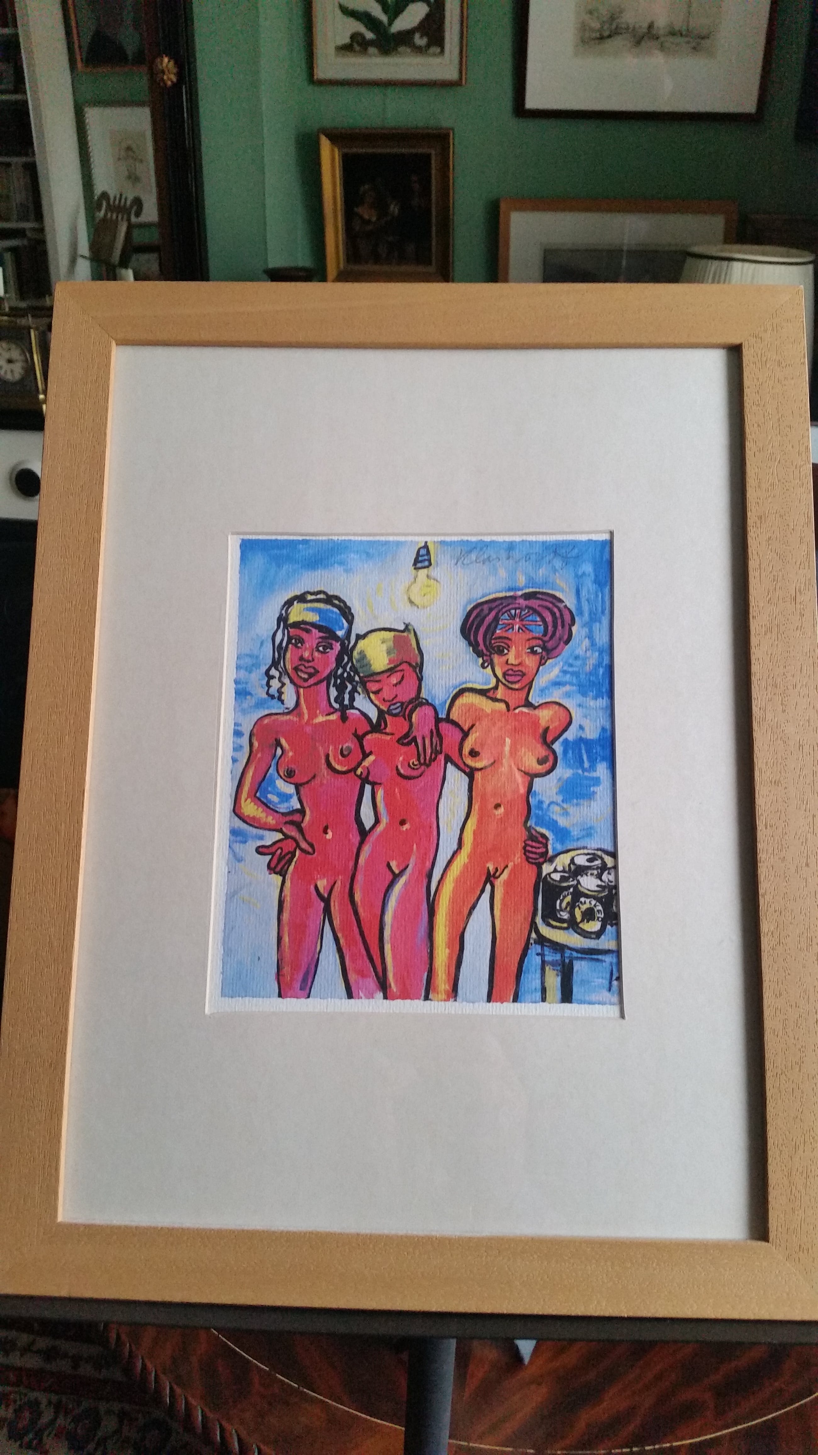 In rechter bovenhoek met potlood gesigneerd.Drie jonge naakte vrouwen z (afrikaans)