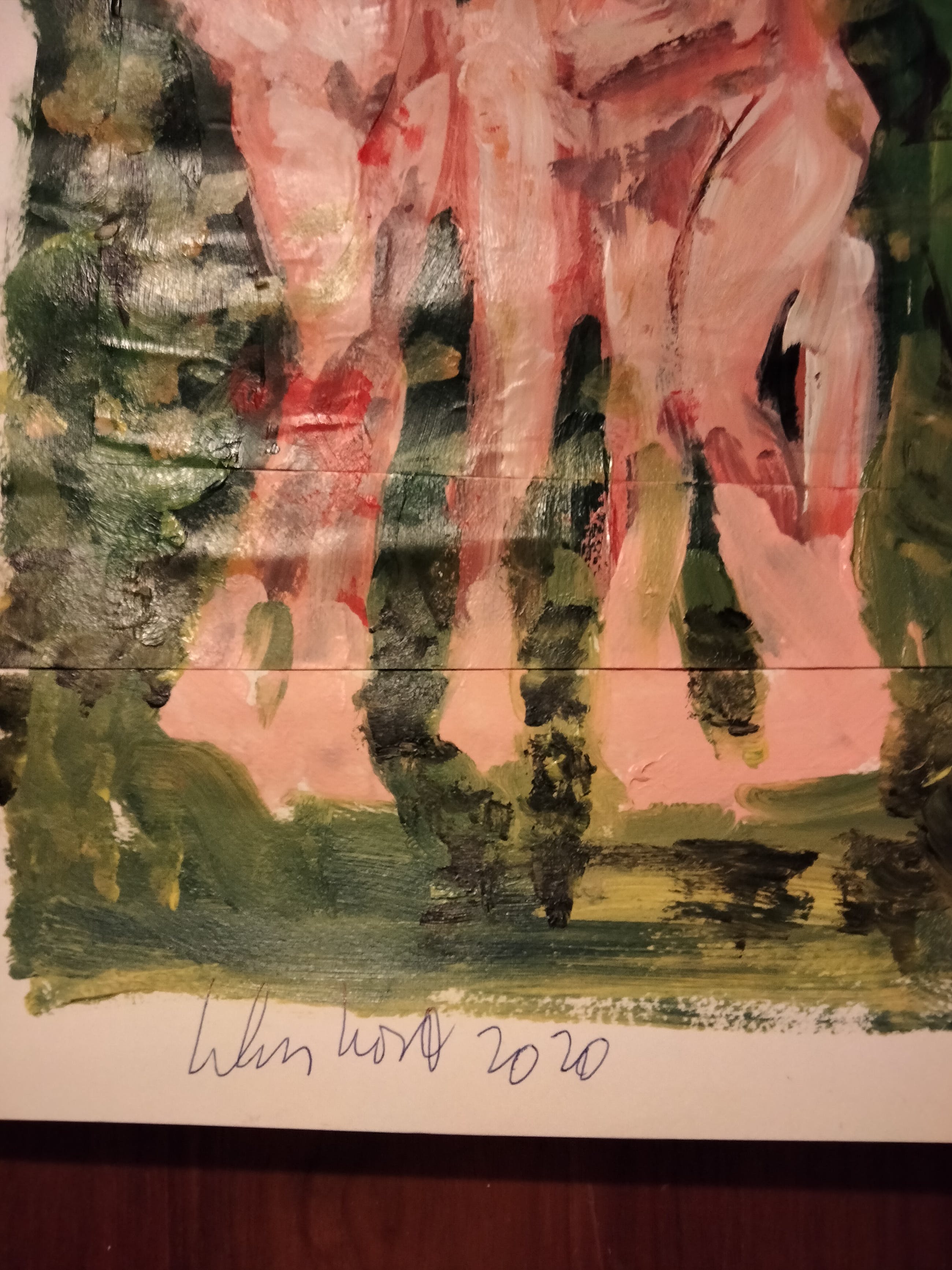 Dat Peter Klashorst een kunstenaar is met veel gezichten mogen duidelijk zijn met dit schilder werk. Gedurfd of gewaagd?..het is peter zoals hij is. Dit prachtige originele schilderwerk bestaat uit 3 vellen papier welke op elkaar geplakt zijn.Daarover heen is dit werk geschilderd Uiteraard handgesigneerd en gedateerd door Klashorst. Uniek zeldzaam item. Het werk is nog nooit ingelijst Dit item kan verzonden worden.Verzenden gebeurt altijd aangetekend. Het schilderij wordt plat verpakt tussen 2 platen mdf om beschadiging uit te sluiten.