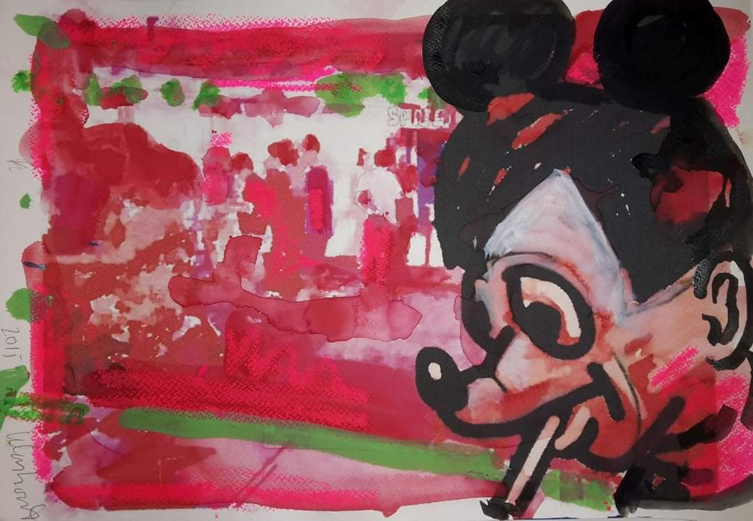 Peter Klashorst. Titel : " A Disillusioned sex tourist Mickey. M in Soi Cowboy Bangkok". Techniek : Gemengde techniek op papier. Formaat : 42 x 30 cm. Ingelijst : Nee. Handgesigneerd voor en achterzijde en ook betiteld Verso : Peter Klashorst.