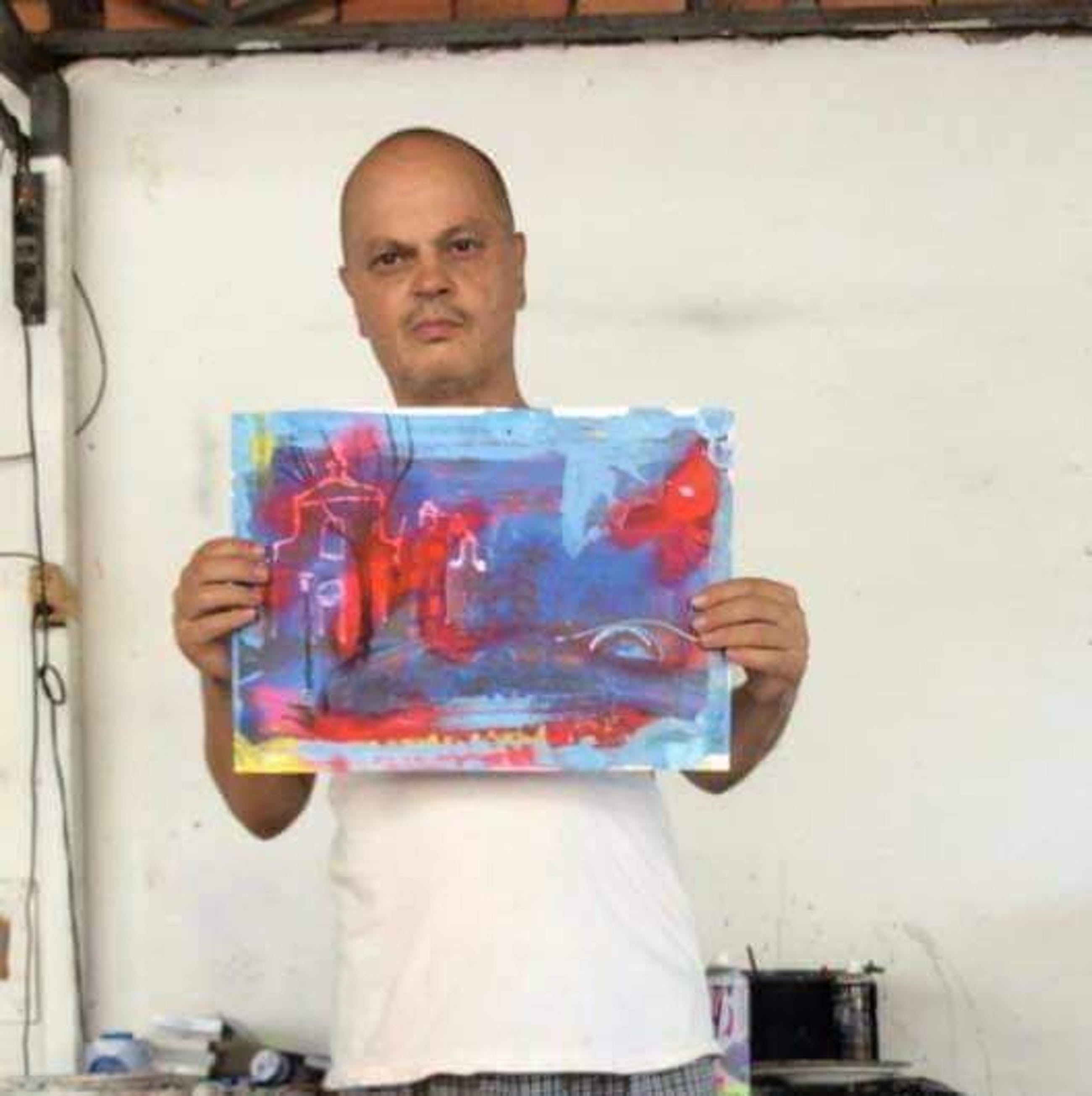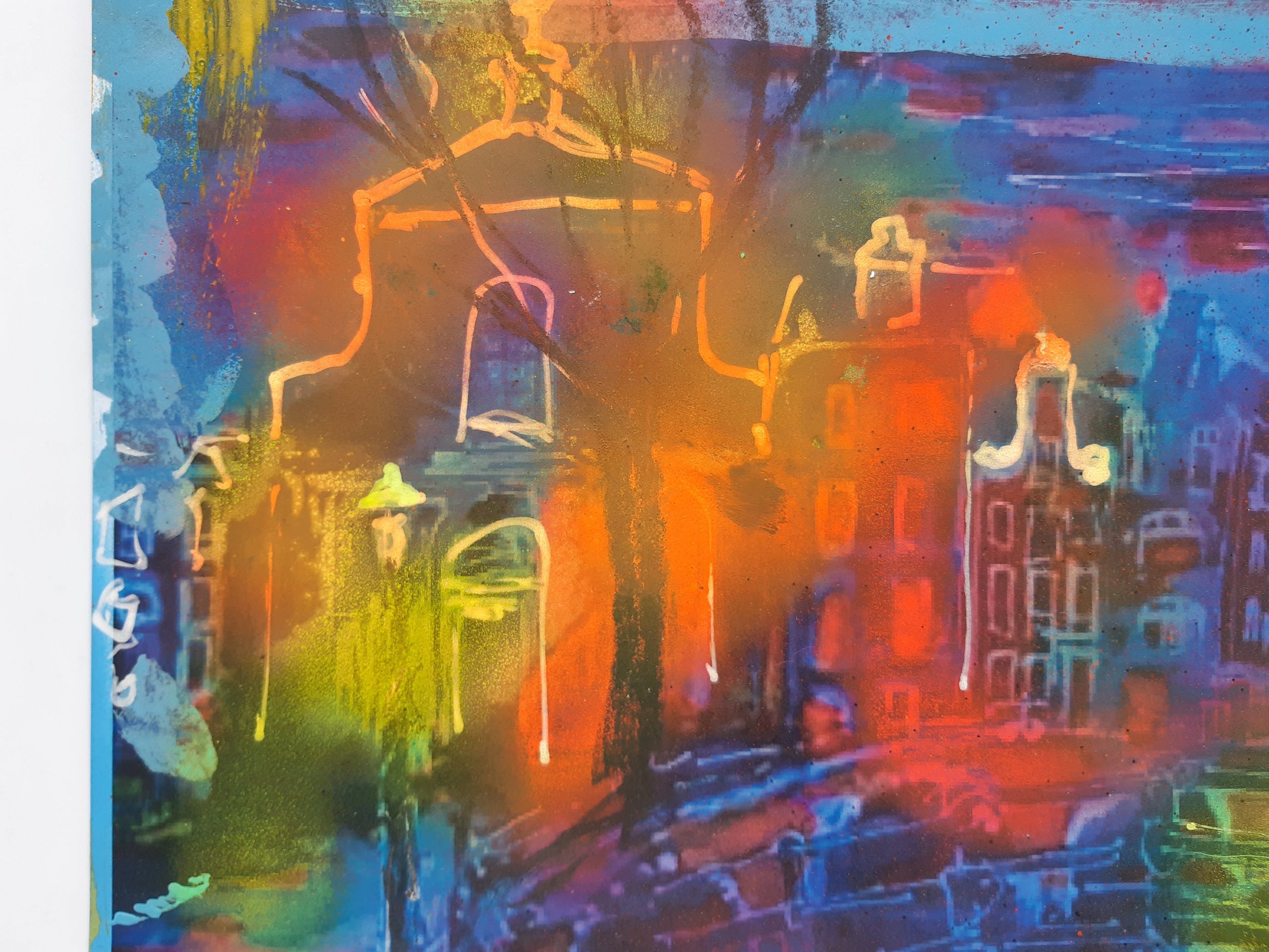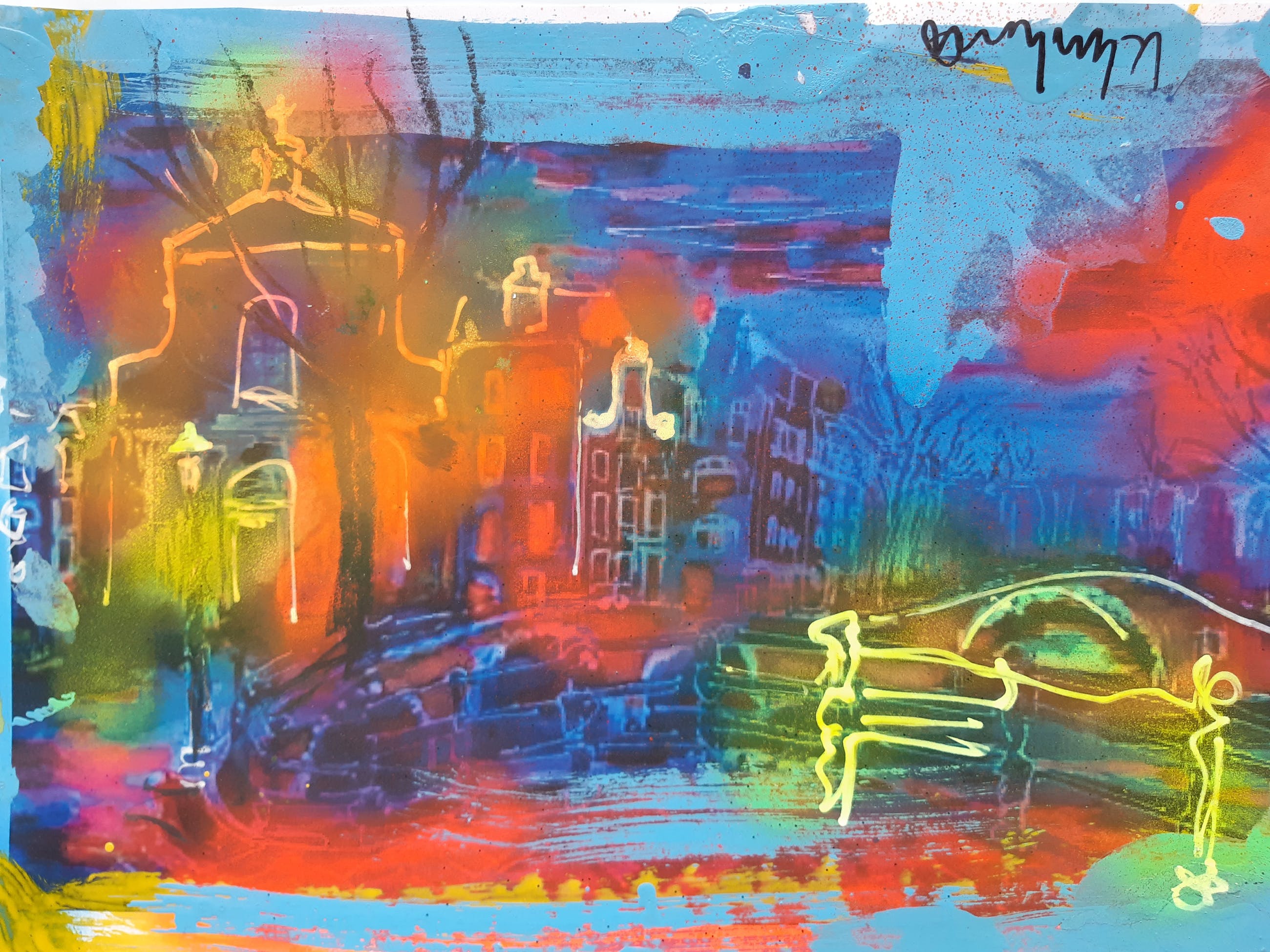 Peter Klashorst. Titel : " Amsterdam Mokum Gracht ". Techniek : Gemengde techniek op papier. Formaat : 42 x 30 cm. Ingelijst : Nee. Verso betiteld door Peter. Handgesigneerd : Peter Klashorst.
