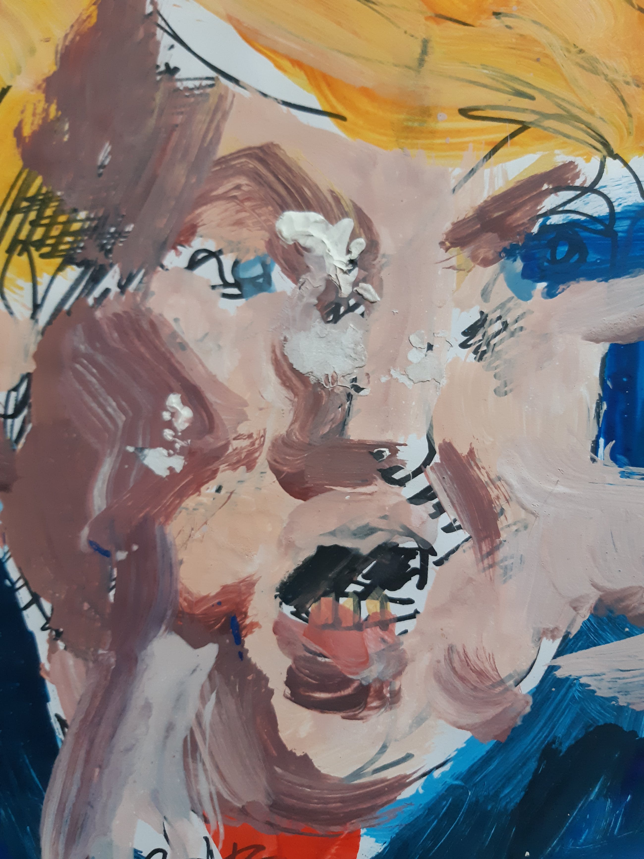 Peter Klashorst. Titel : " Trump ". Techniek : Gemengde techniek op papier. Formaat : 42 x 30 cm. Handgesigneerd en betiteld en gedateerd : Peter Klashorst.