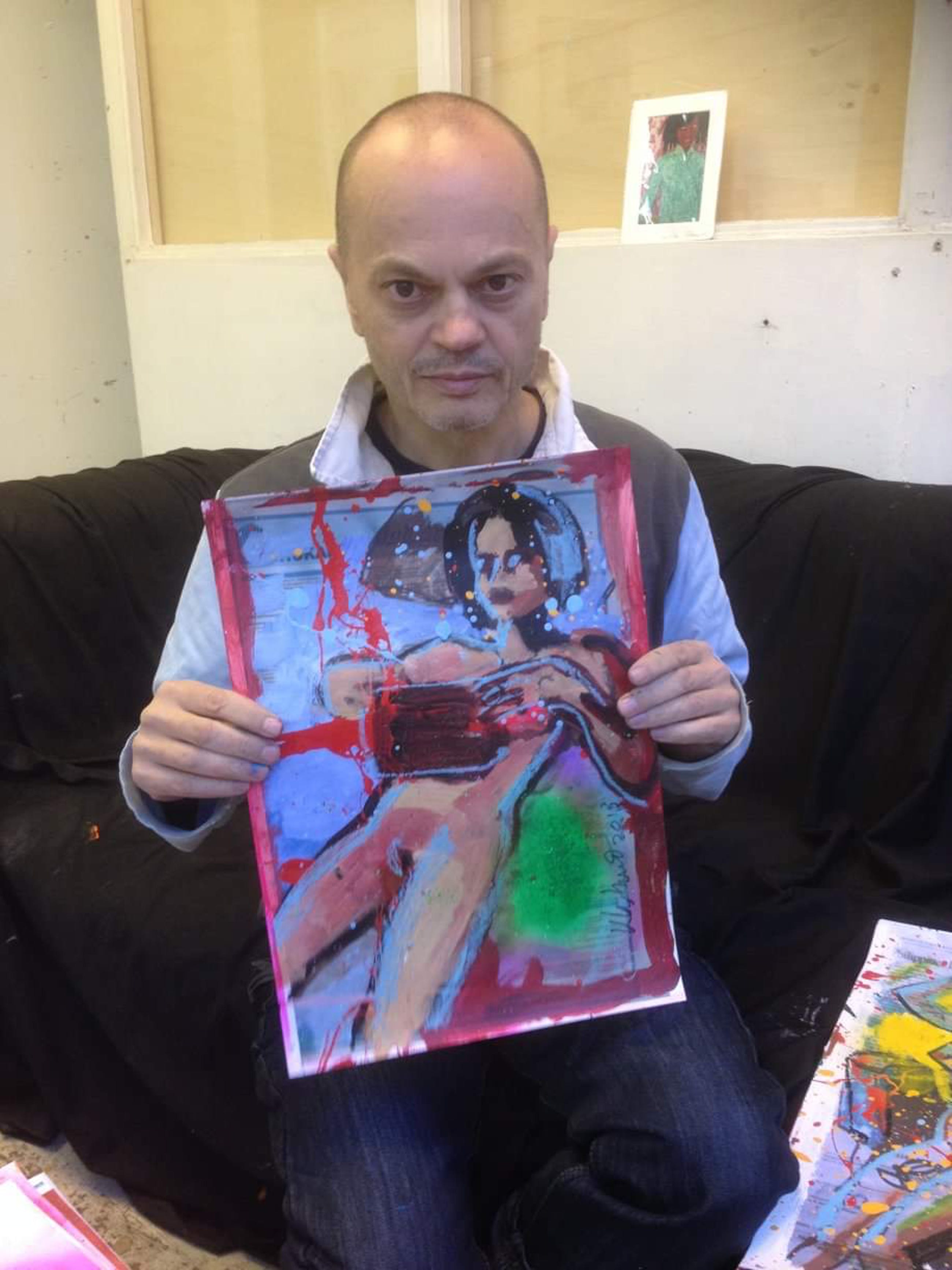Peter Klashorst. Titel : " IPad Model ". Techniek : Gemengde techniek op papier. Formaat : 42 x 30 cm. Handgesigneerd : Peter Klashorst 2013.