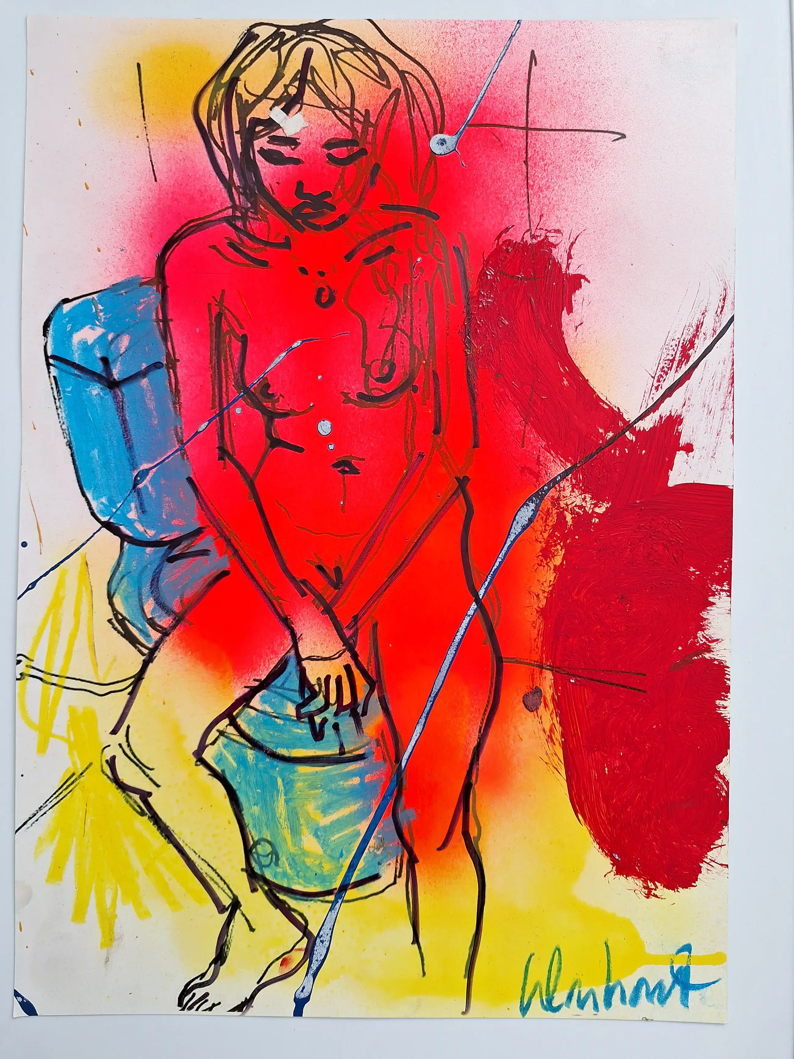 Peter Klashorst. Titel : " Model ". Techniek : Gemengde techniek op papier. Formaat : 42 x 30 cm. Handgesigneerd : Peter Klashorst.