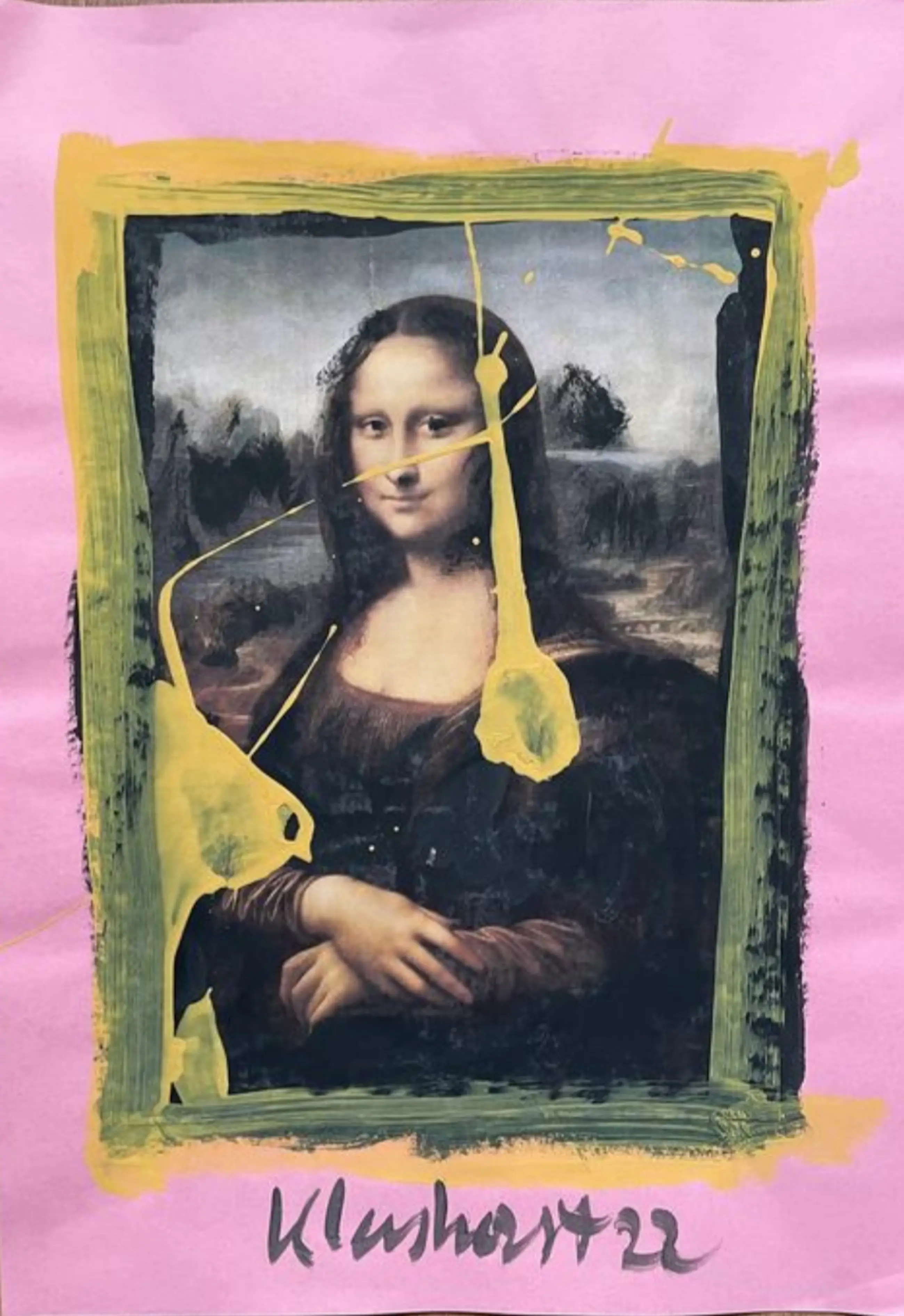 Peter Klashorst. Titel : " Mona Lisa ". Techniek : Collage / Gemengde techniek op papier. Formaat : 42 x 30 cm. Handgesigneerd : Peter Klashorst 2022.
