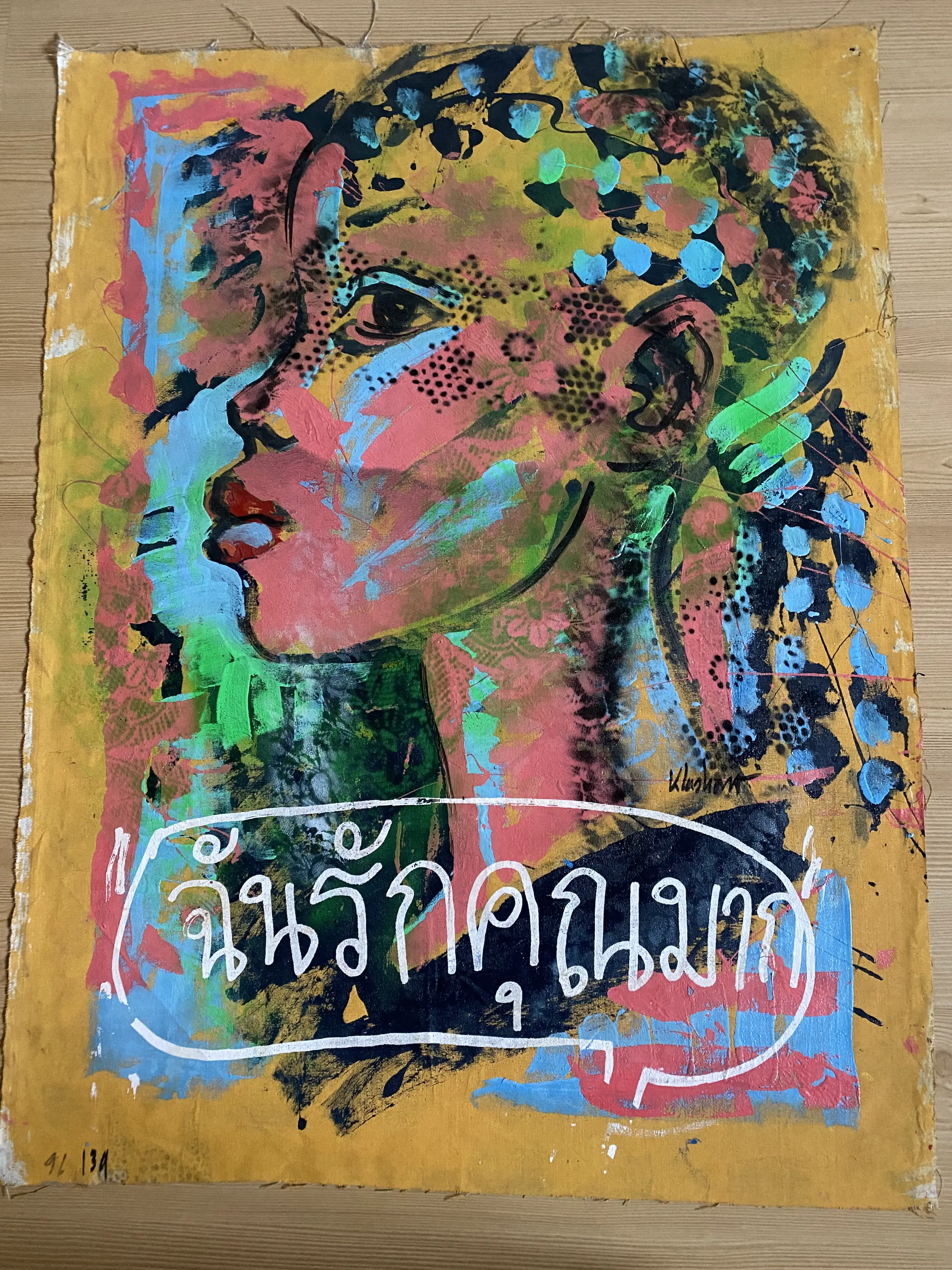 Origineel schilderij op doek van Peter Klashorst . Vroege Thaise periode. Niet opgespannen.conditie goed.