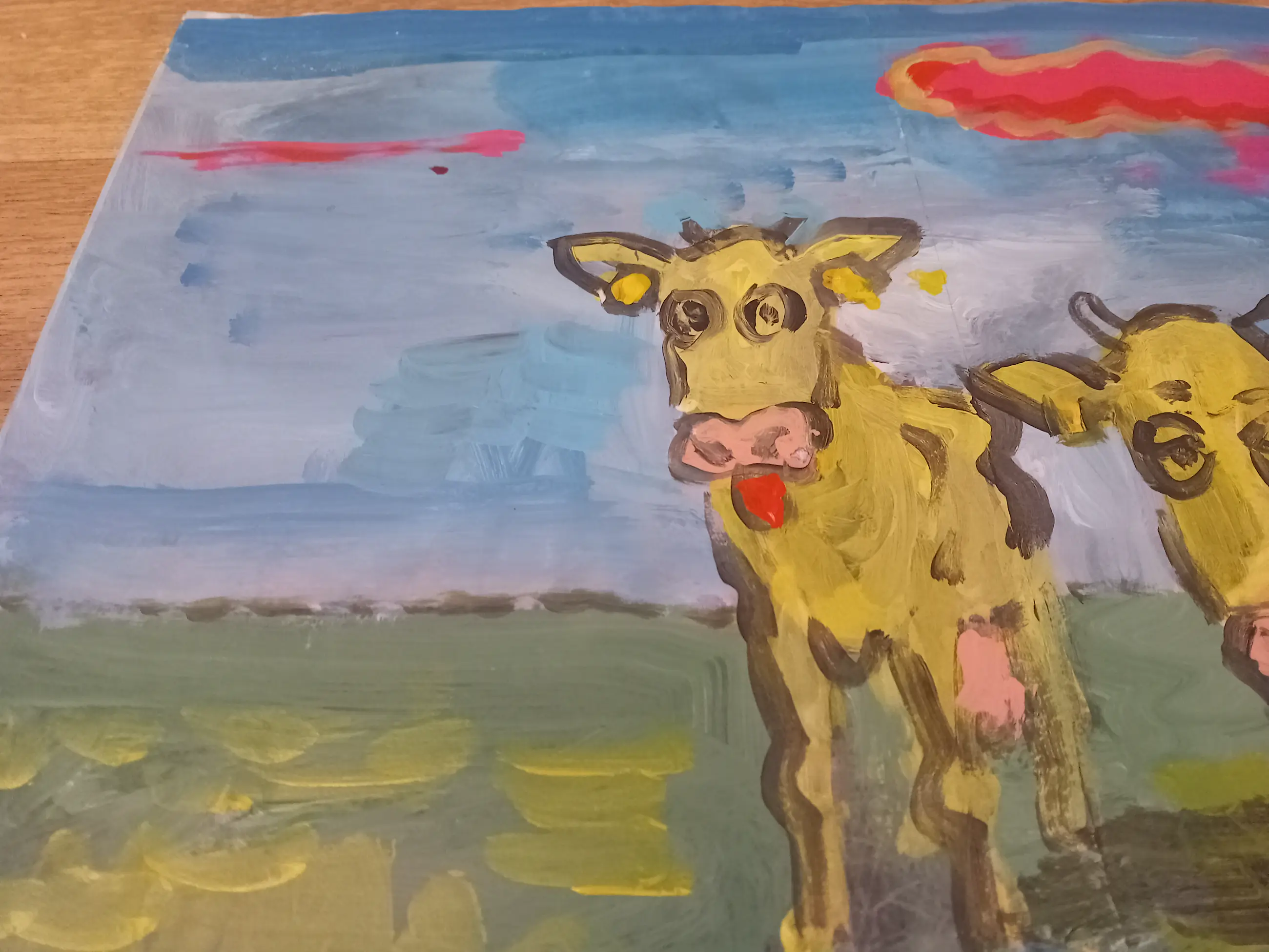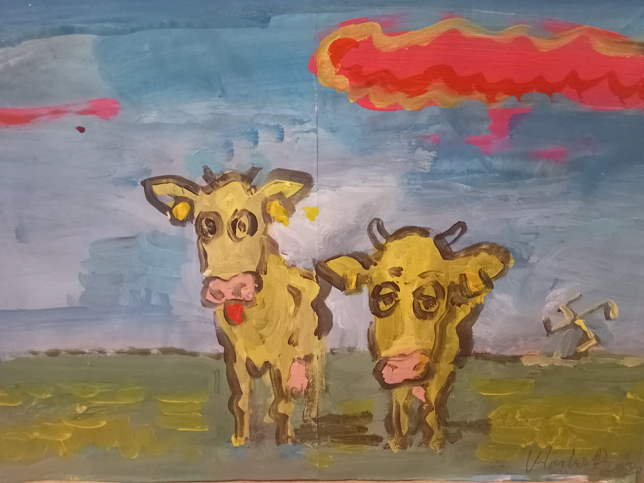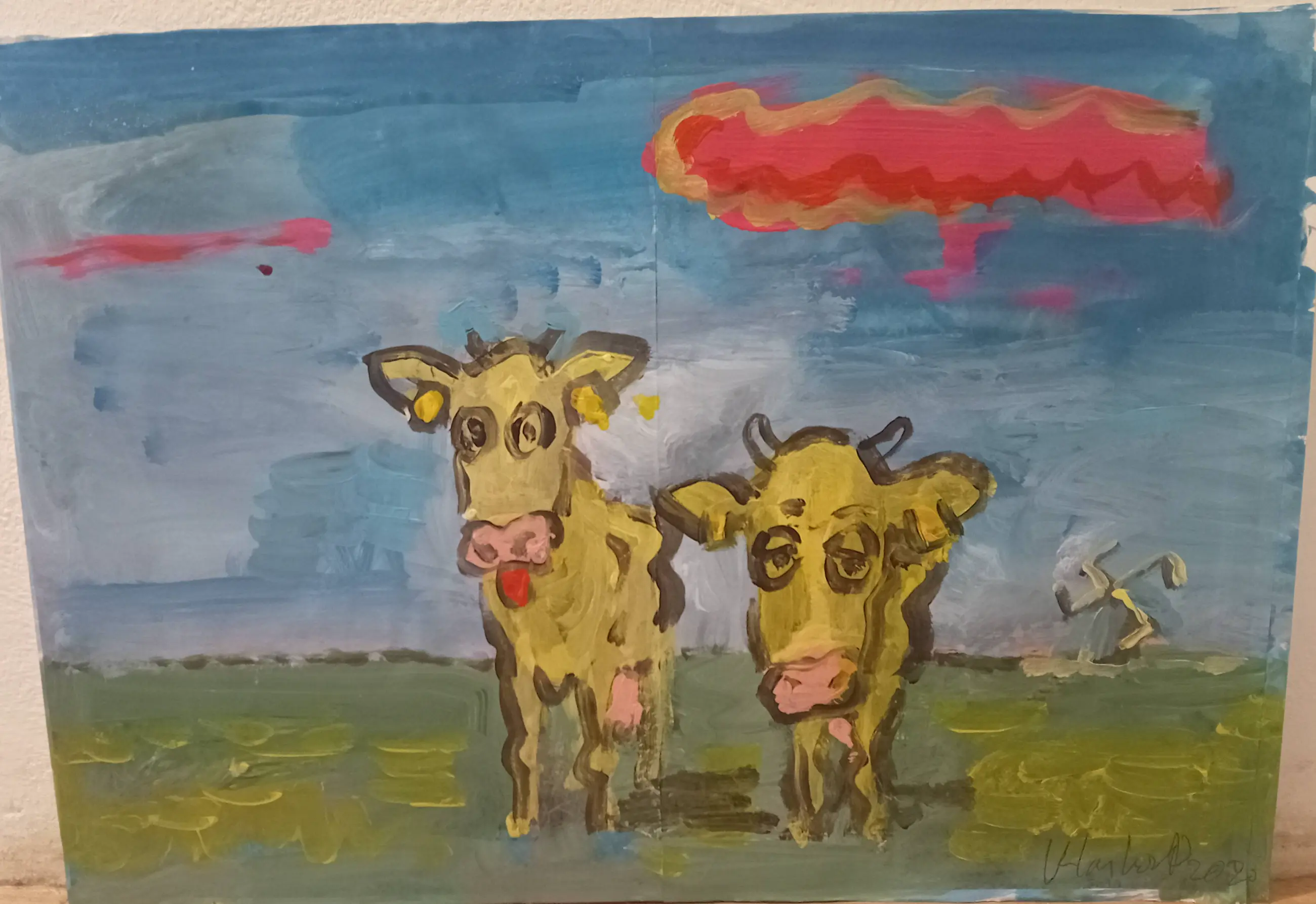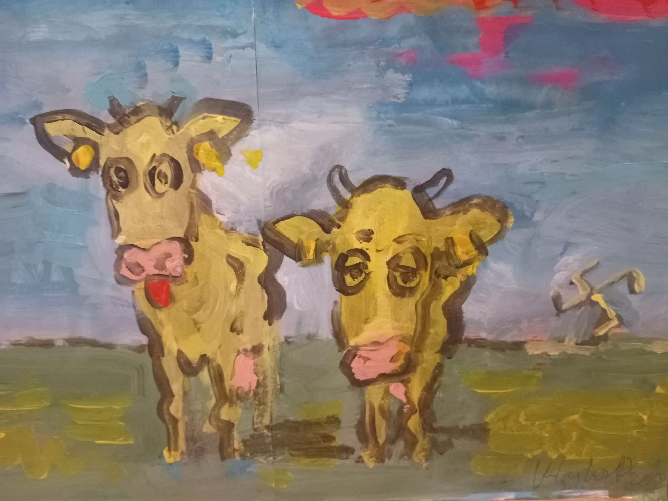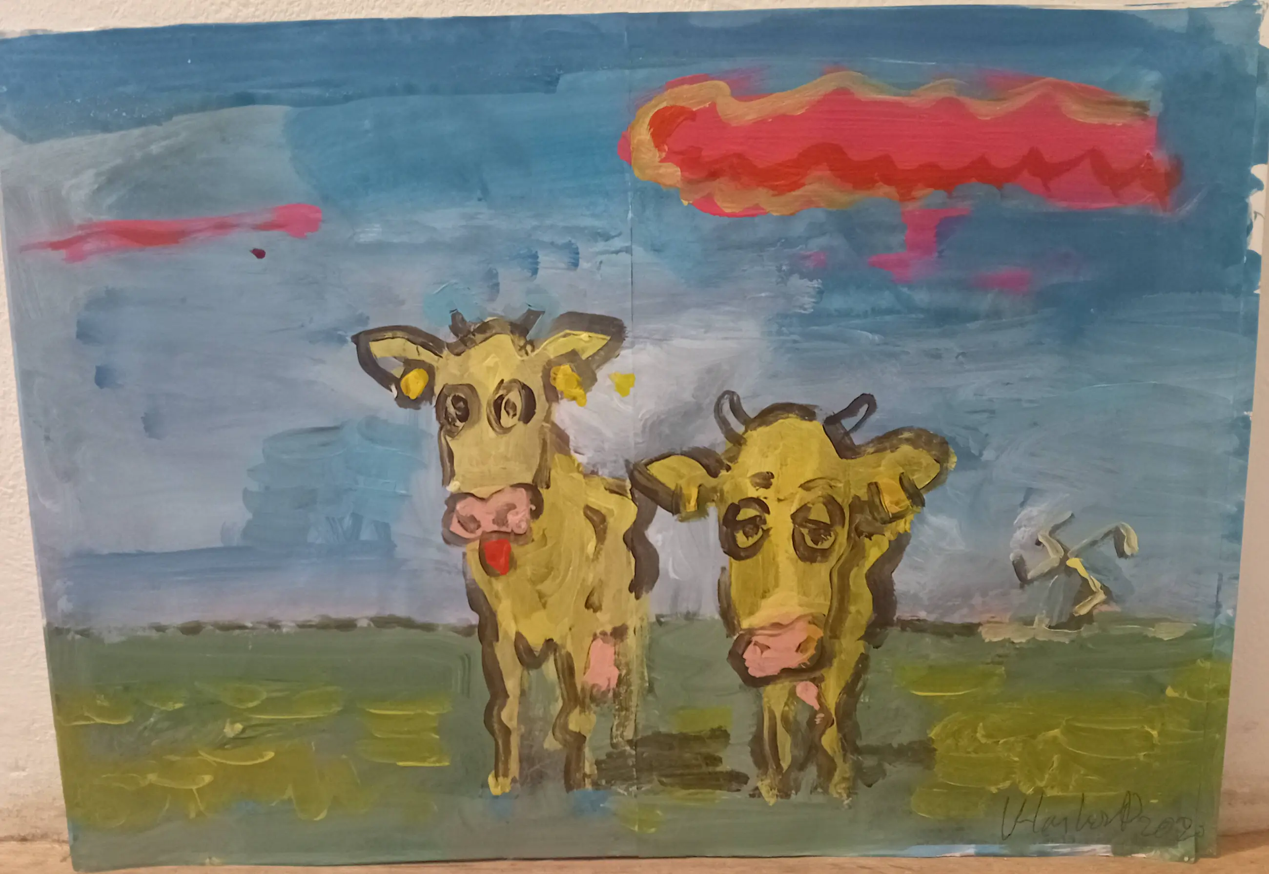 Het zijn 2 aparte vellen waar het schilderij op is gemaakt deze zijn vast geplakt op steviger papier. Hij is mooi van kleur en uniek werk van Klashorst uit 2020. Achter en voor is het werk gesigneerd. Hij is ontzettend gaaf.