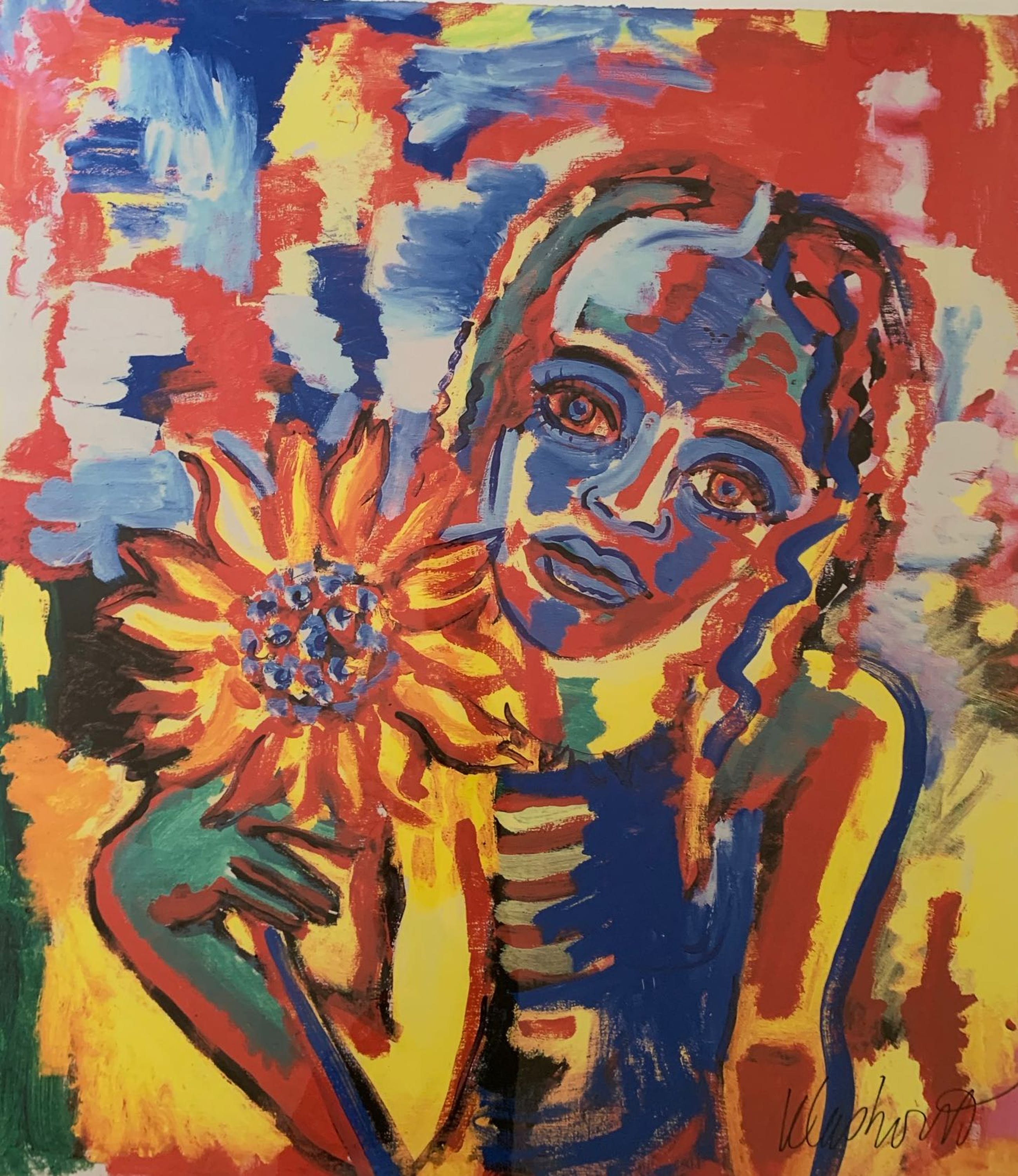 Peter Klashorst is een veelzijdig kunstenaar, fotograaf en muzikant. Hij bezocht de Rietveld Academie te Amsterdam. Peter wordt gerekend tot de Nieuwe Wilden. Zijn uitbundige werk werd in 1983 bekroond met de Koninklijke Subsidie voor de Schilderkunst. Het is erg groot en professioneel ingelijst. Een wand vullend kunstwerk!